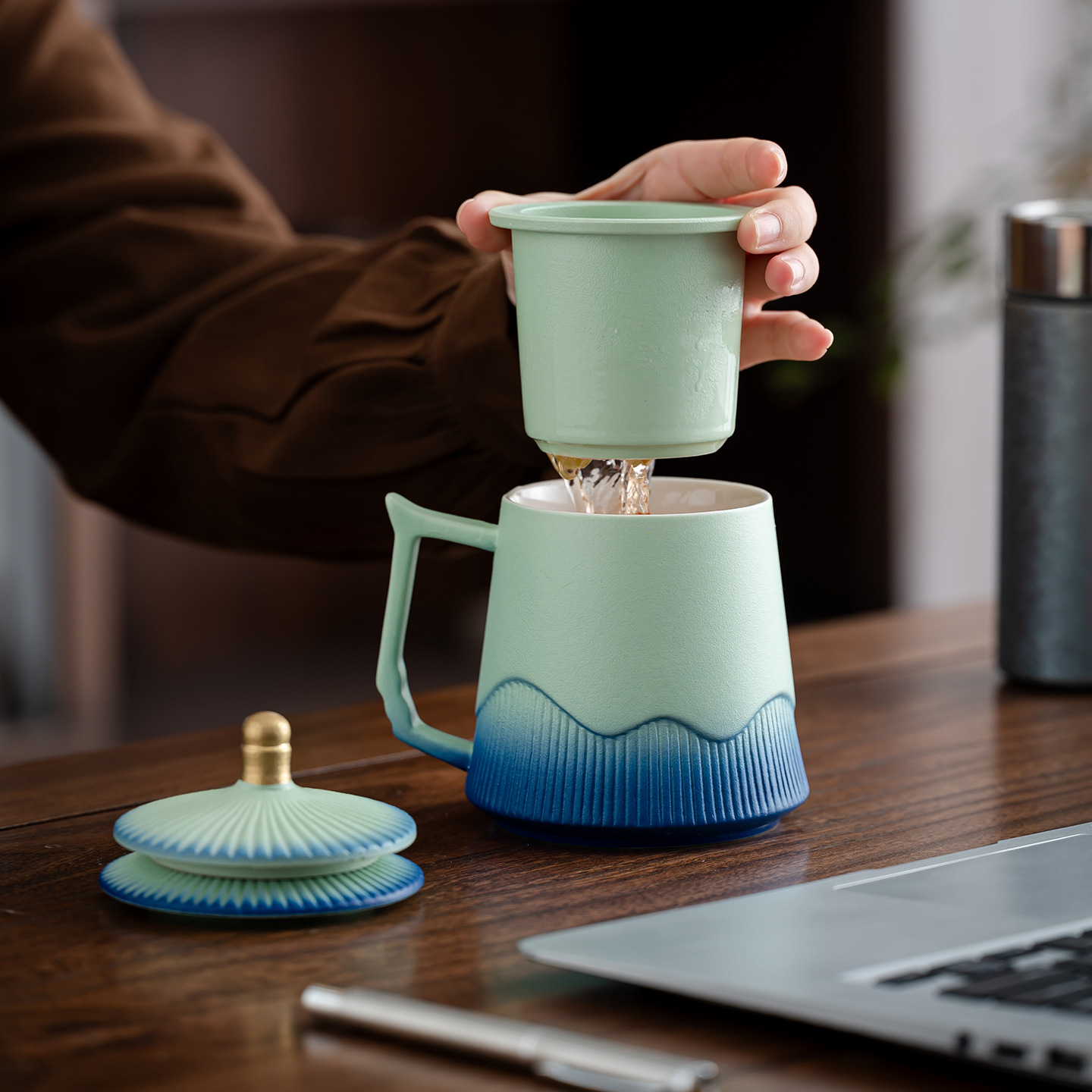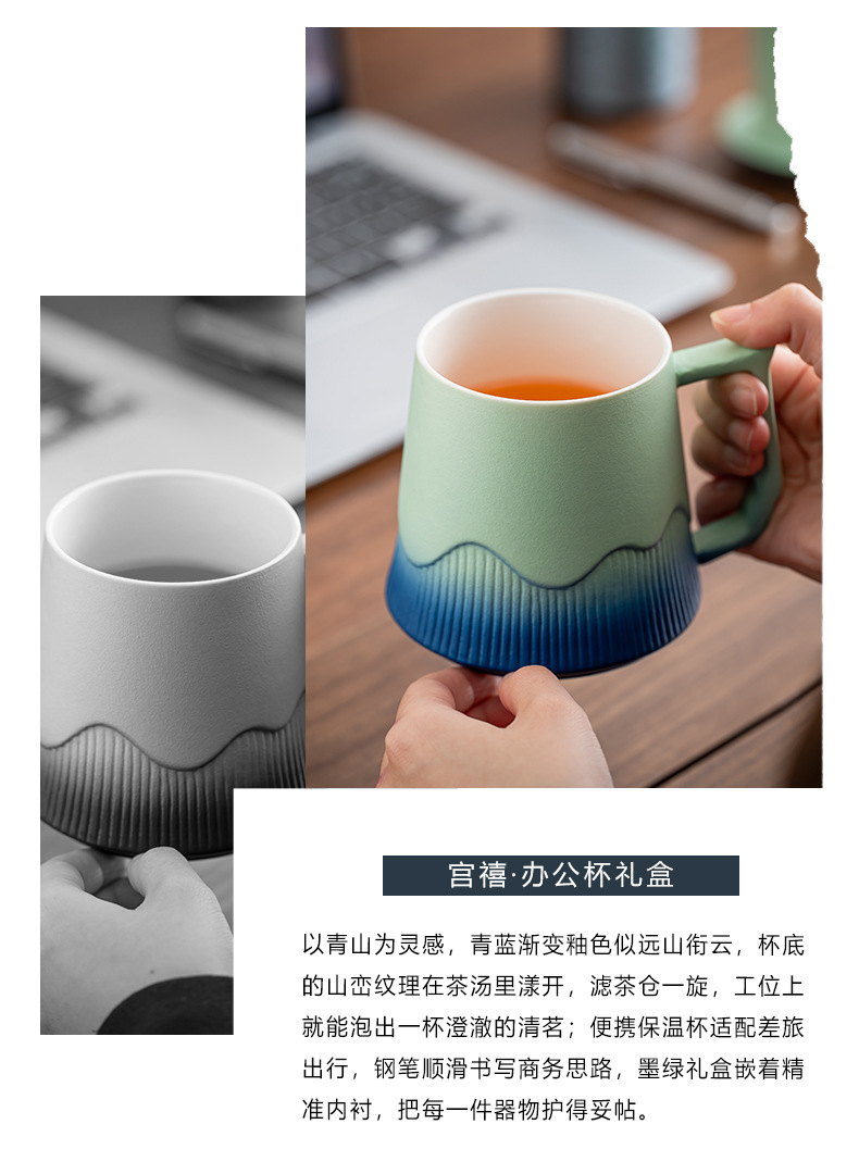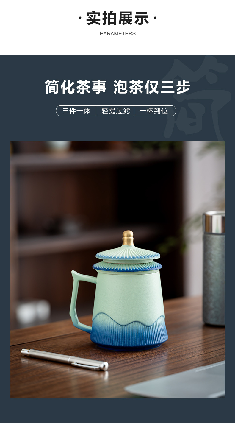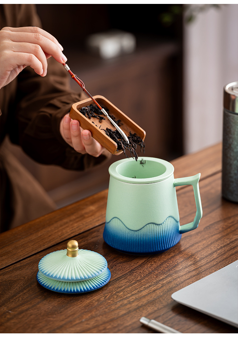 故宫文创茶水分离杯马克杯家用带盖过滤个人专用陶瓷办公泡茶杯子