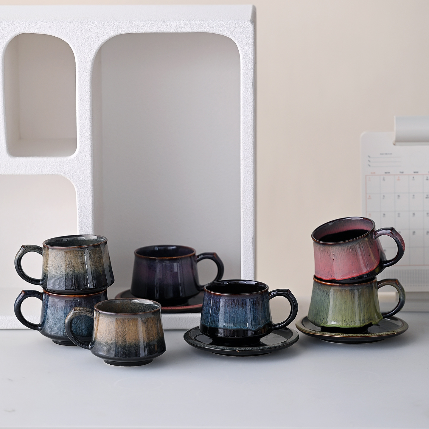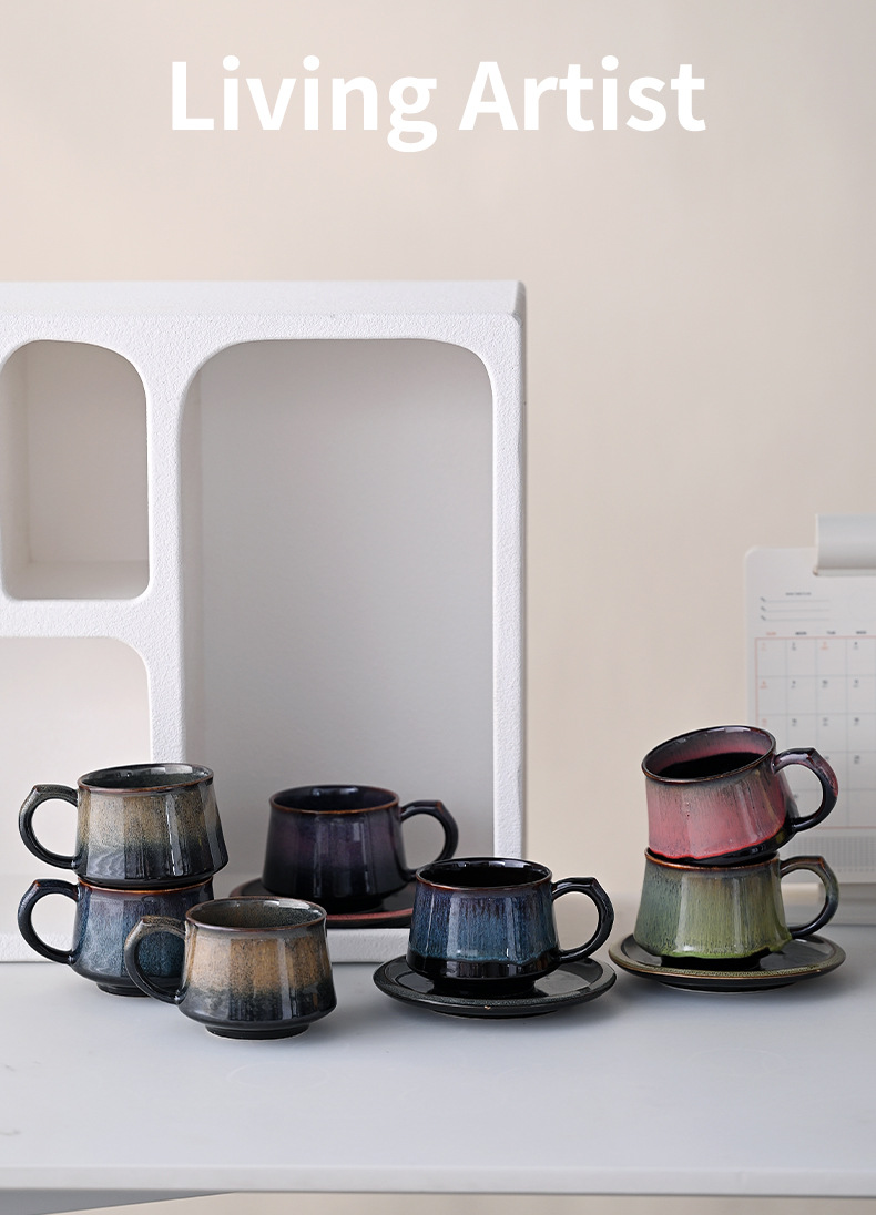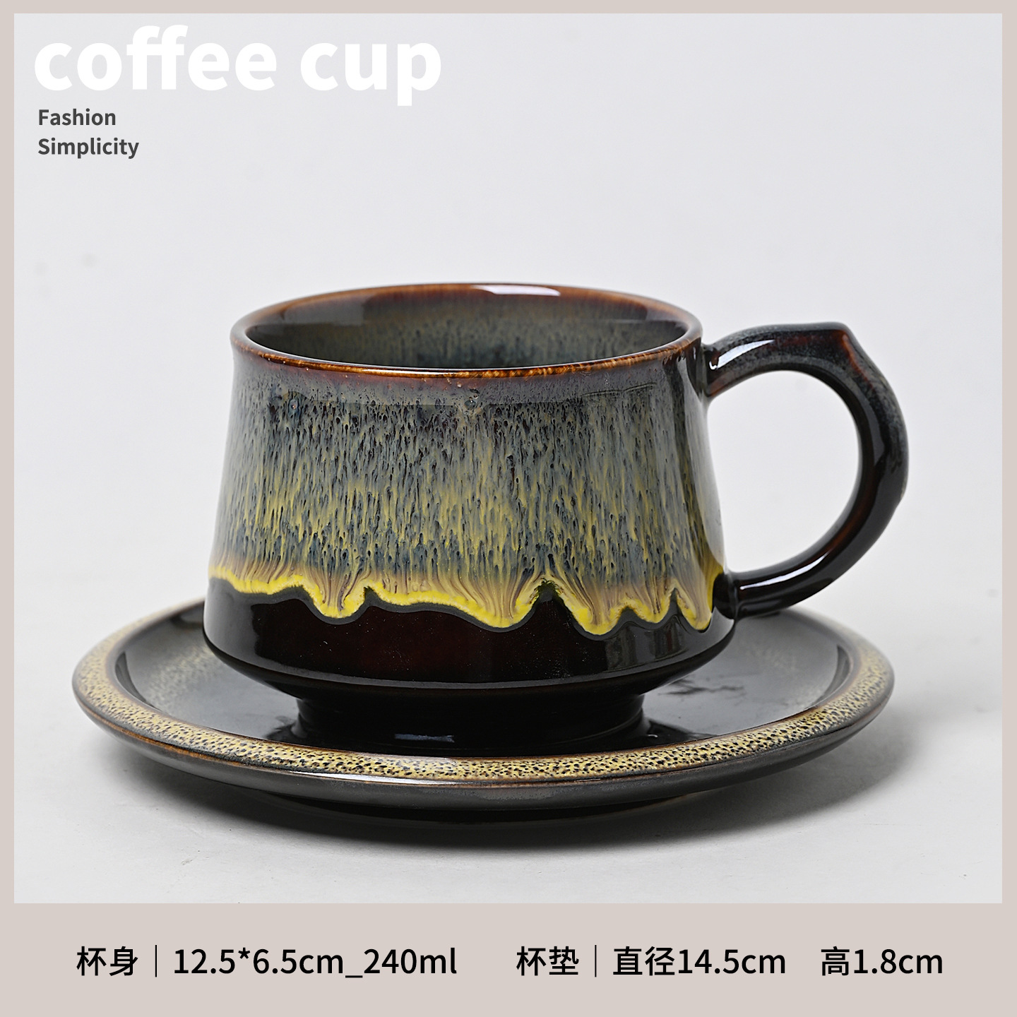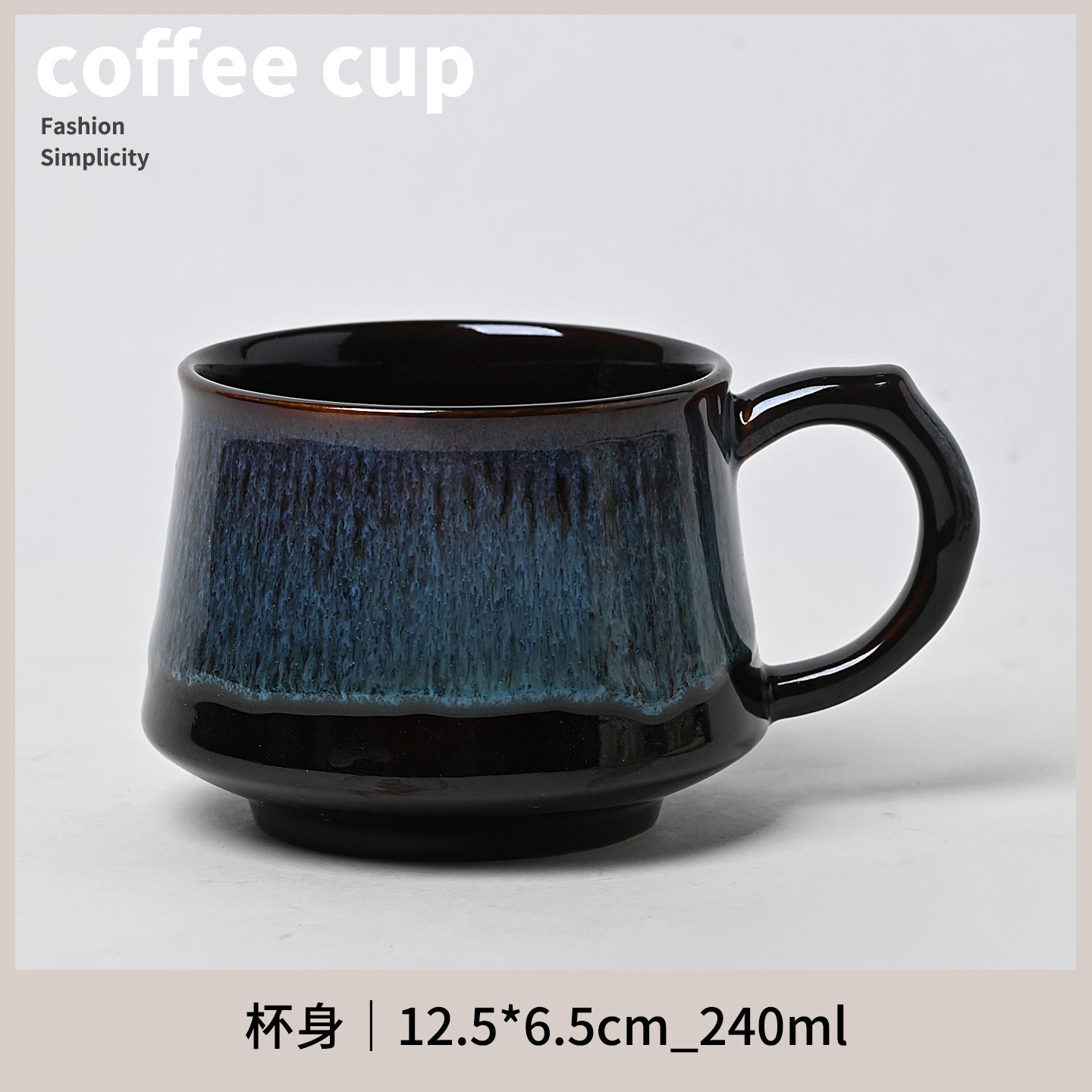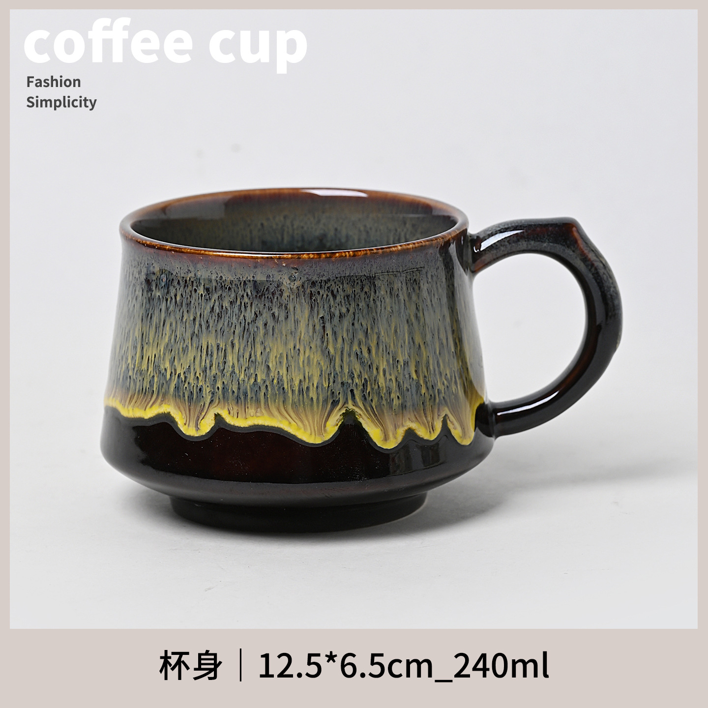 窑变马克杯复古陶瓷办公室咖啡杯家用大容量粗陶水杯啤酒杯子轻奢