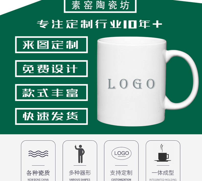 马克杯现货出口 11oz陶瓷咖啡杯 印制Logo作图热转印礼品水杯