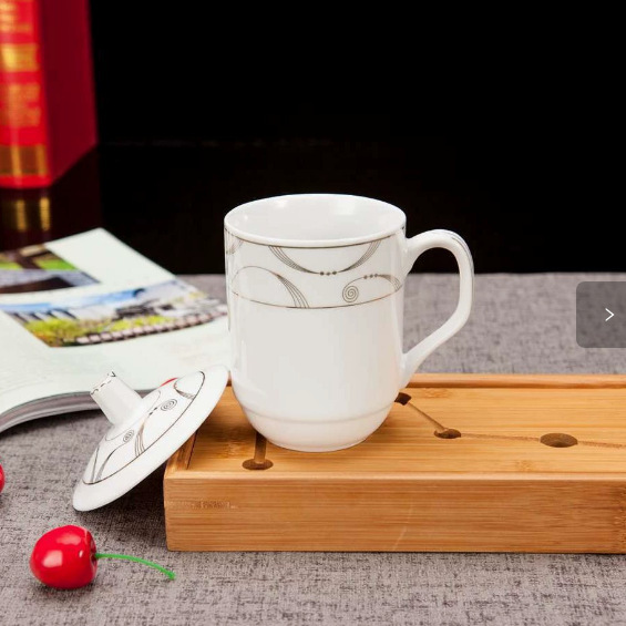 景德镇带盖茶杯陶瓷办公杯会议室泡茶杯子定 制酒店宾馆骨瓷水杯