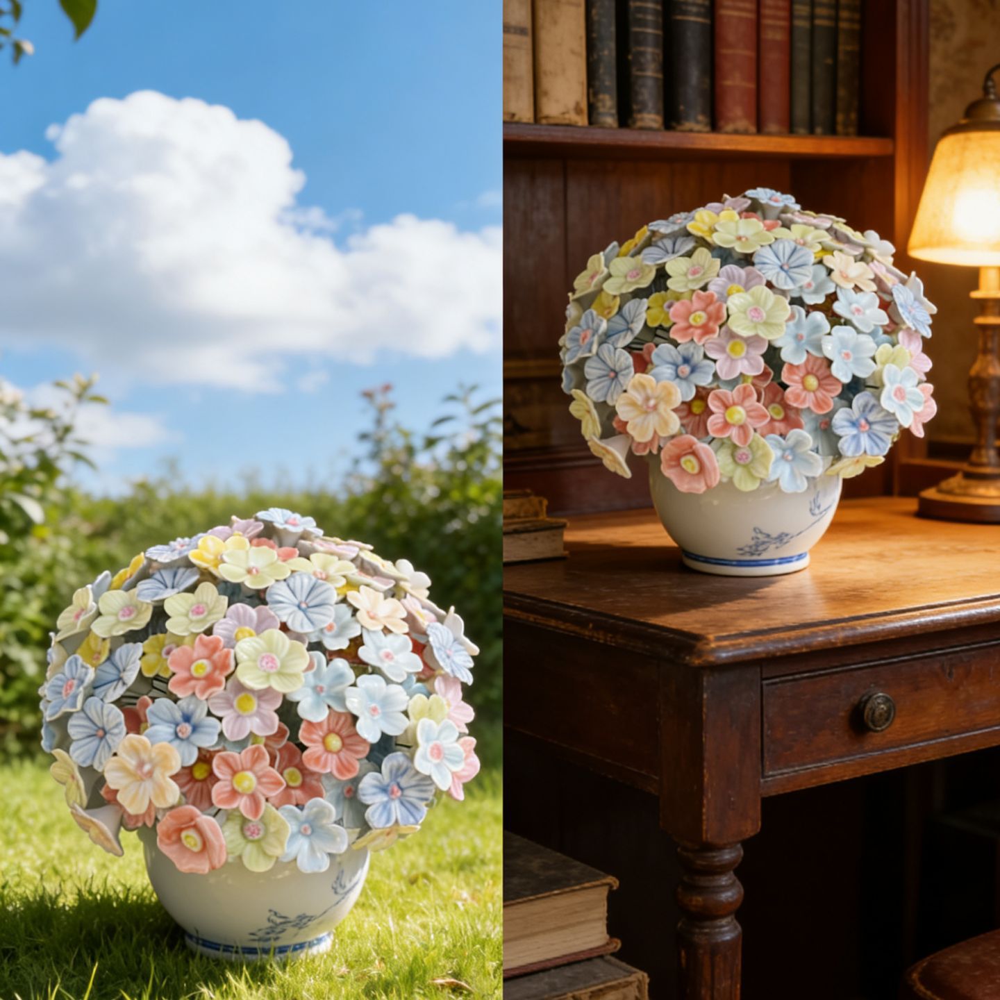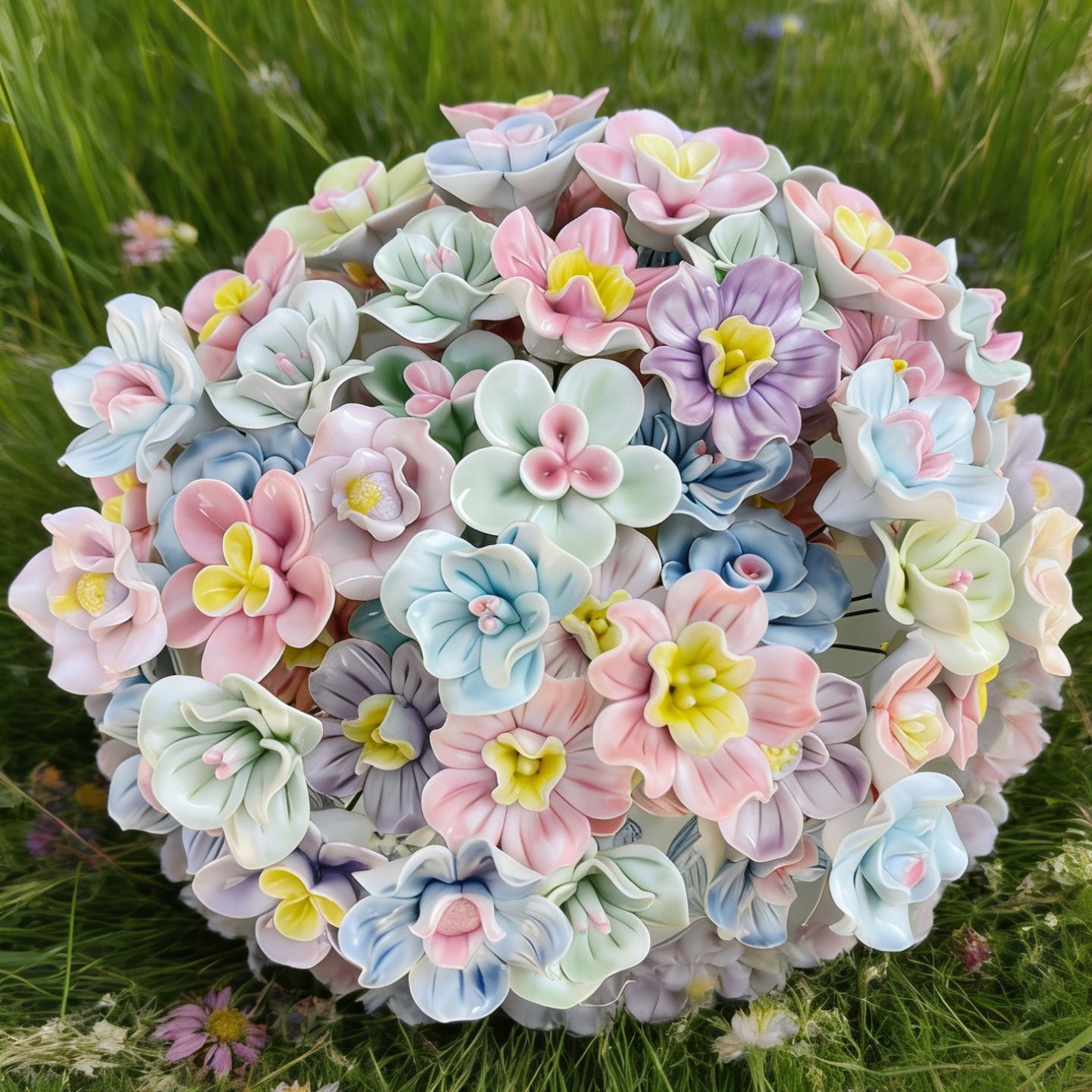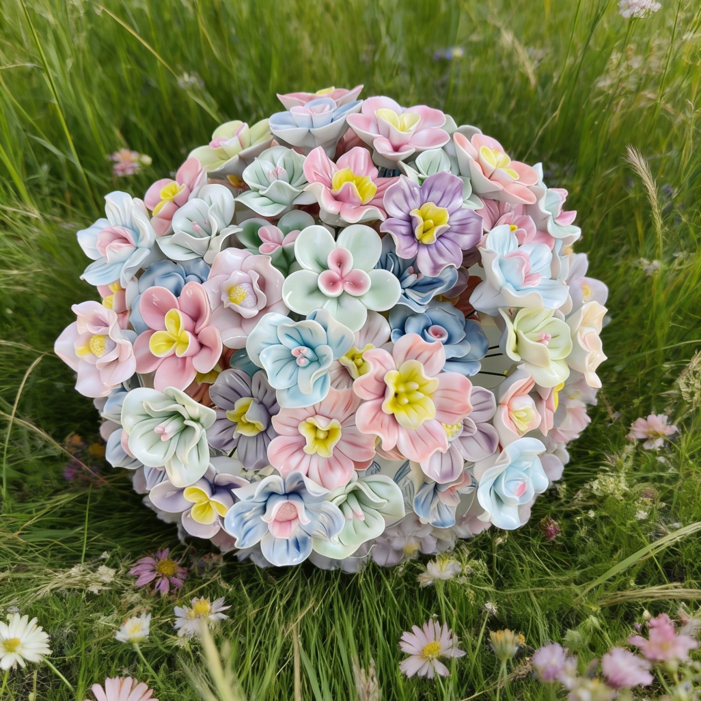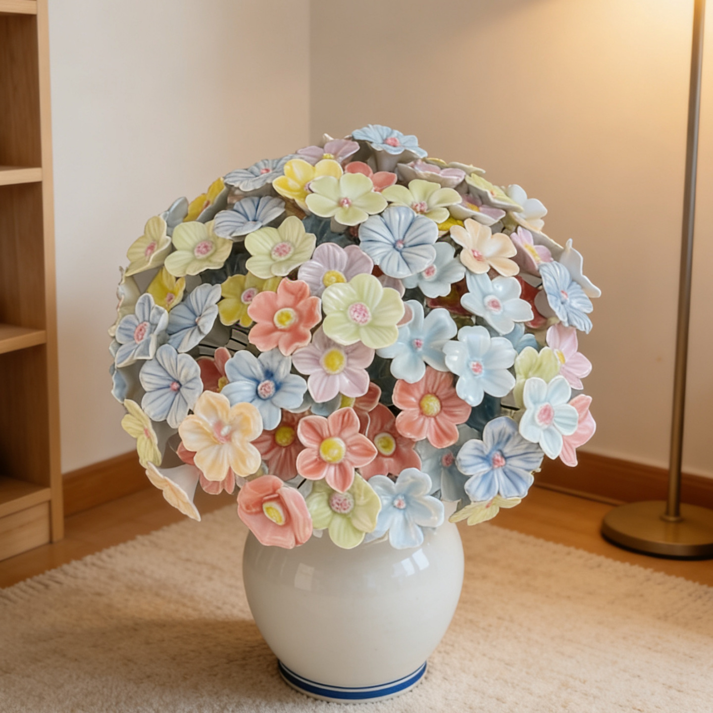 景德镇手捏陶瓷花束永生花仿真diy摆摊手捧花女神节礼物摆件装饰