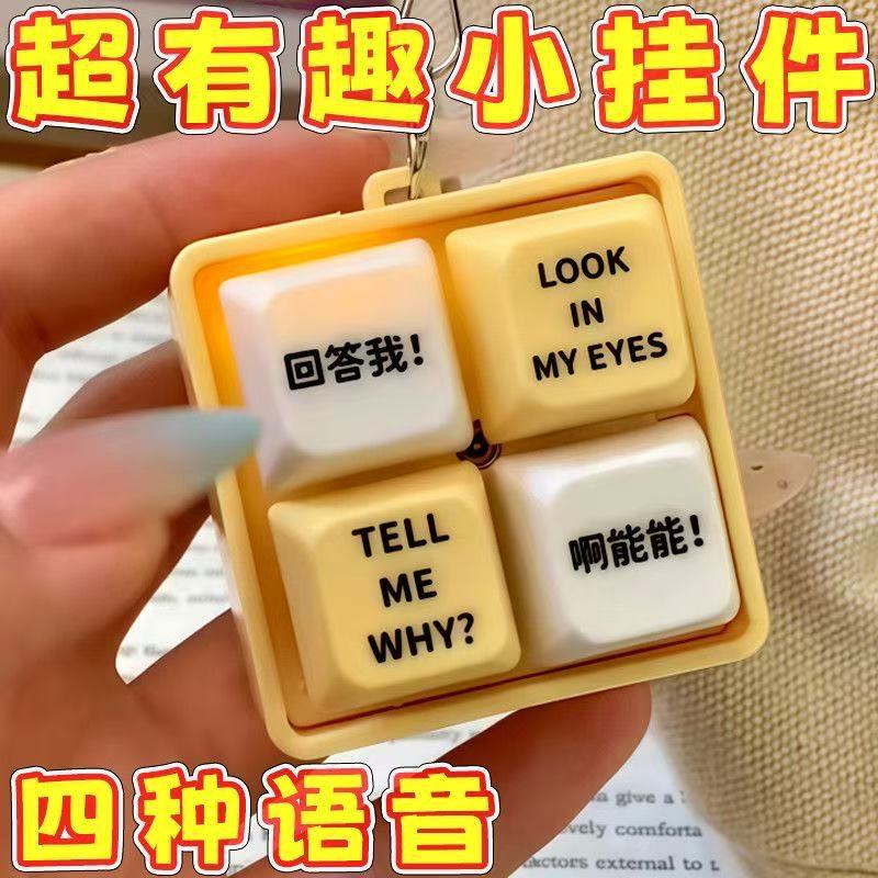 抖音爆款回答我按键钥匙扣语录发音发光挂件解压按键玩具书包挂件