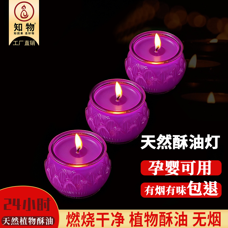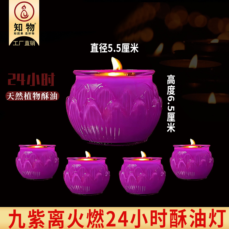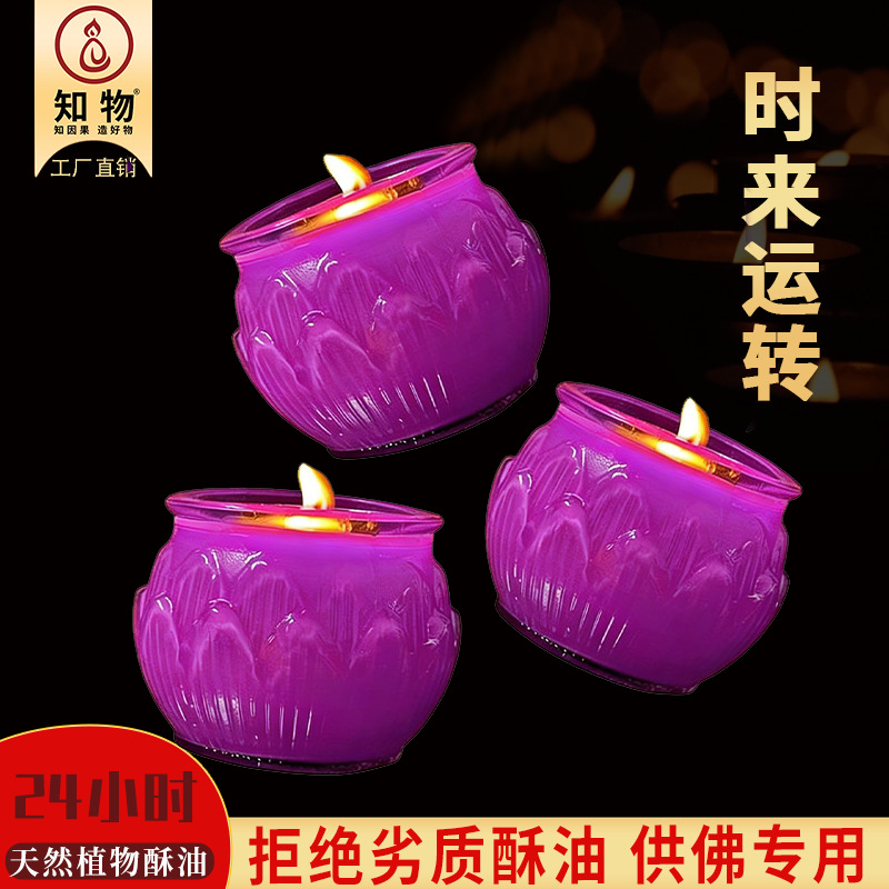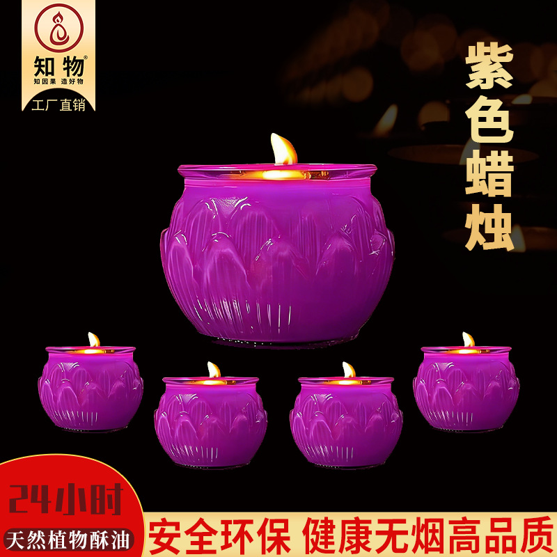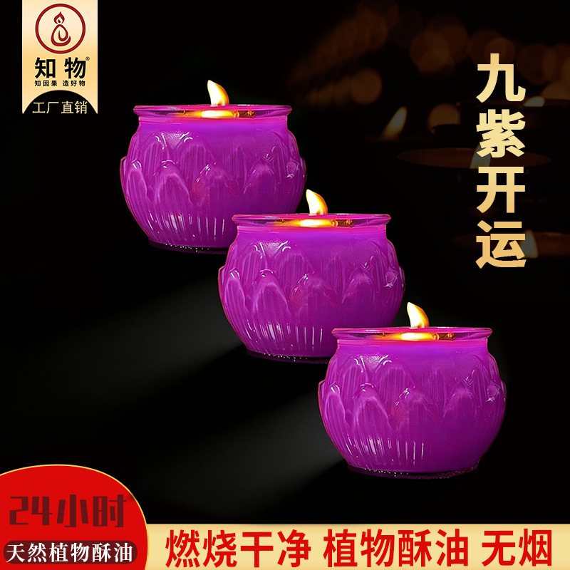26年九紫离火24小时平口莲花酥油灯紫色酥油蜡烛无烟供佛供神佛灯