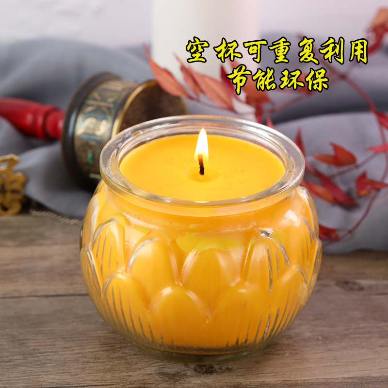 圣宝缘24小时平口莲花酥油灯家用植物酥油足时玻璃蜡烛供佛长明灯