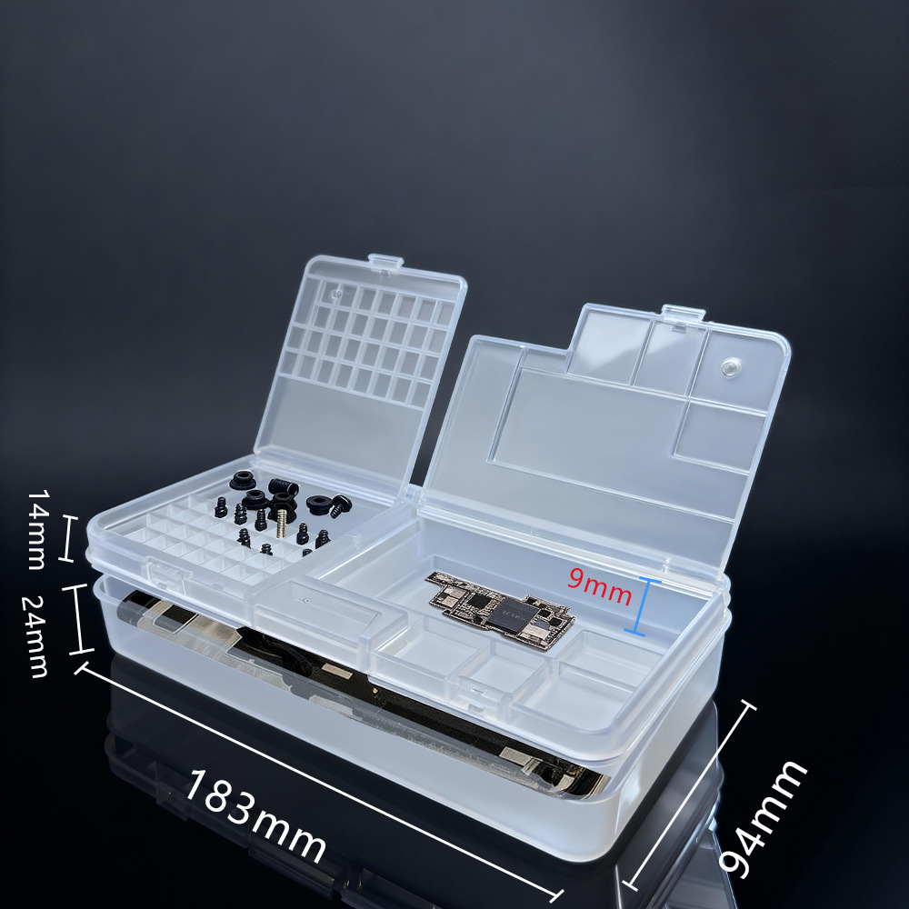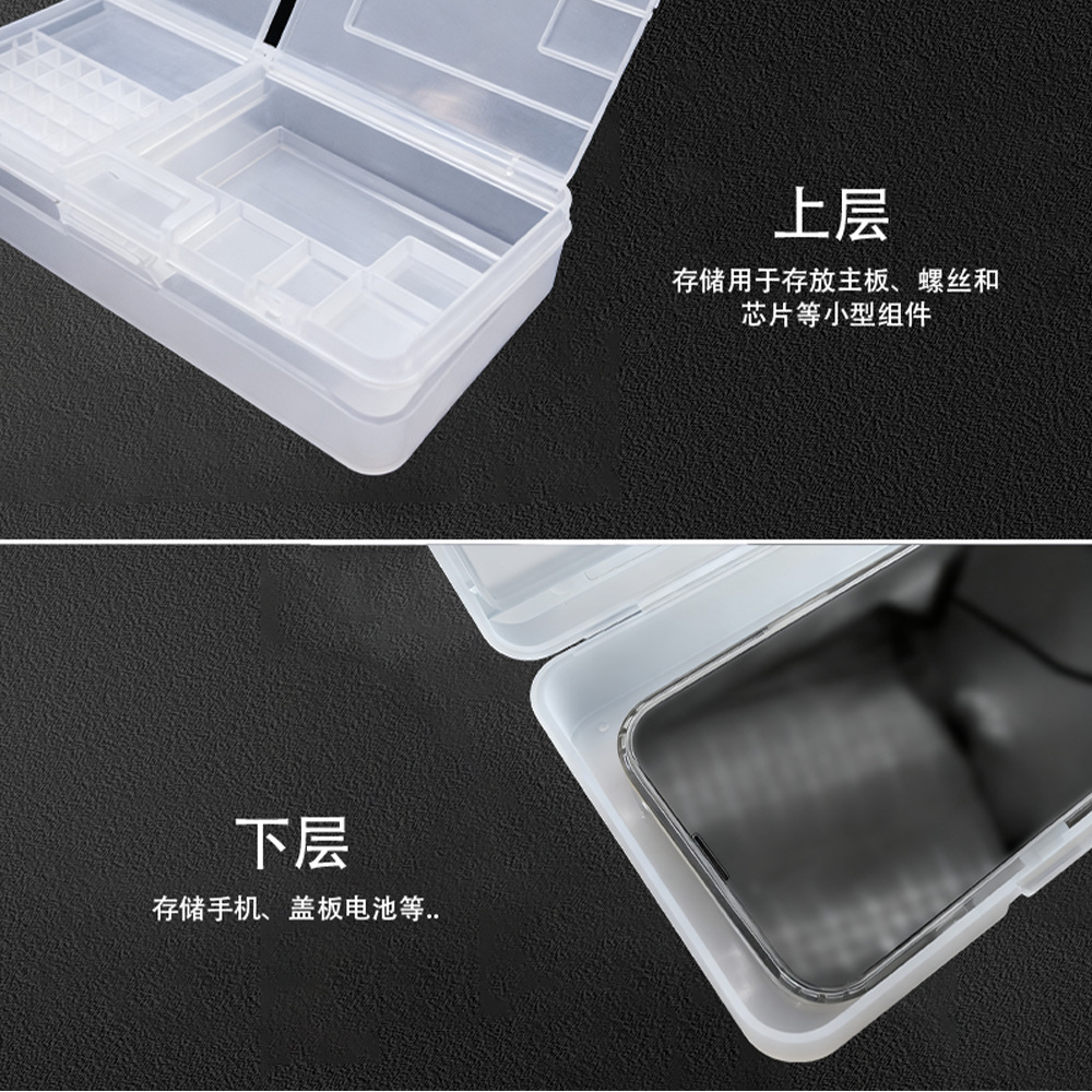 手机维修工具屏幕拆卸双层螺丝收纳原件盒透明盒塑料盒长方形PP盒
