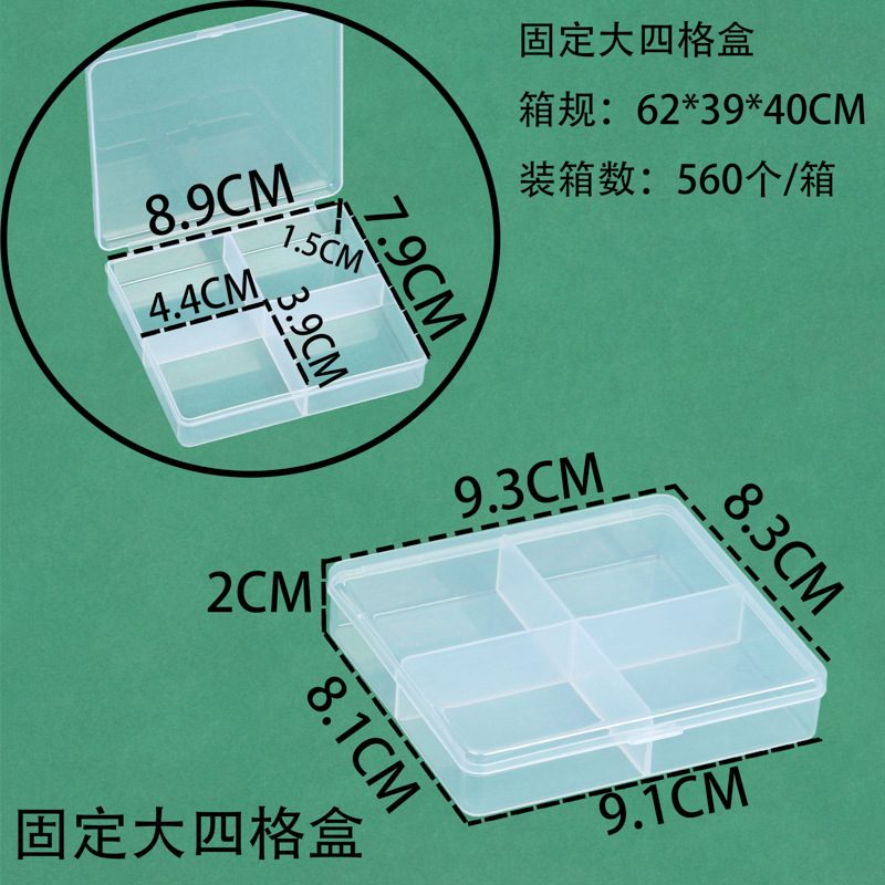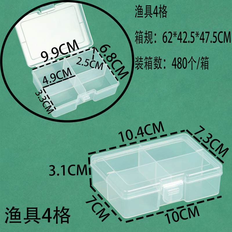 固定分类塑料桌面收纳盒2格4格透明纽扣渔具螺丝配件首饰皮筋包装