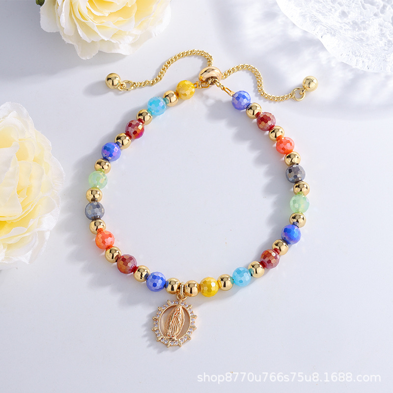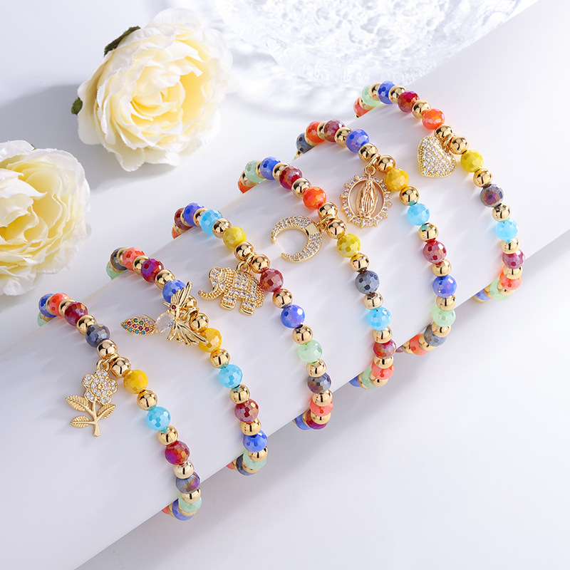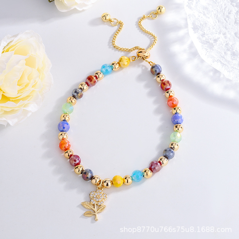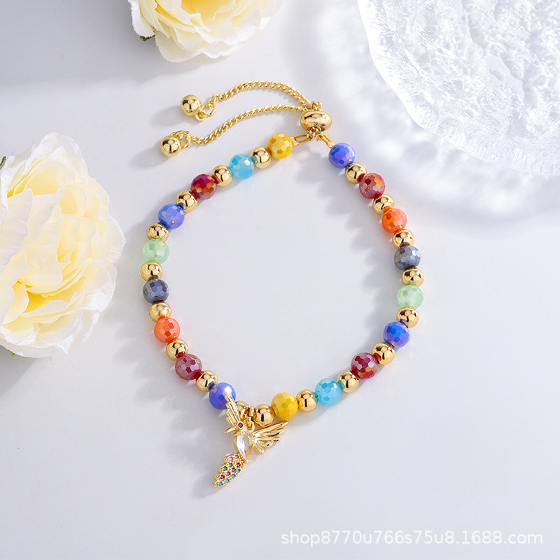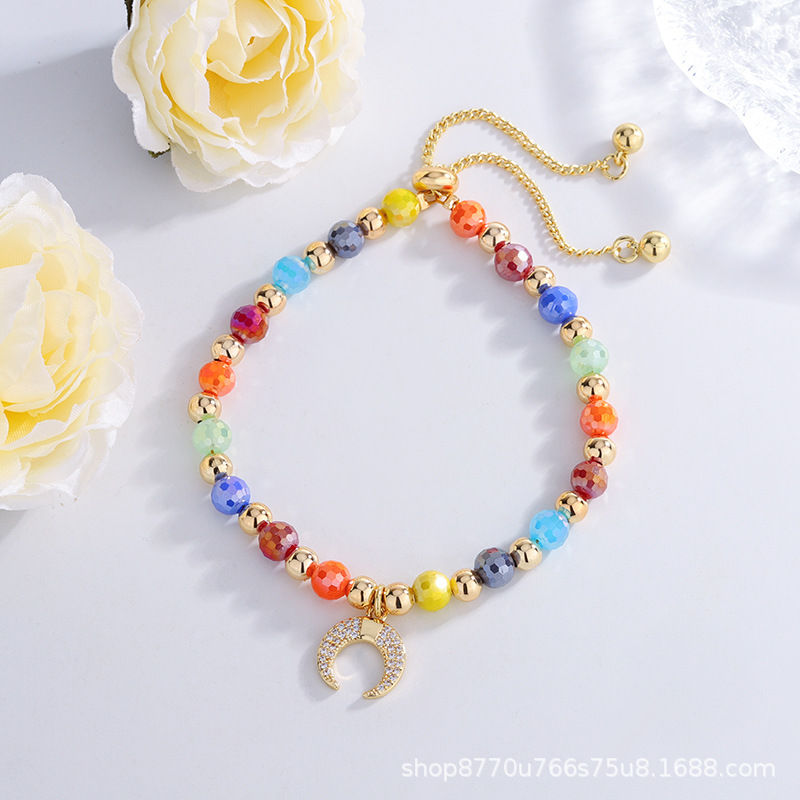 高级设计感彩色水晶串珠吊坠手链新潮欧美时尚个性小众手串手饰女