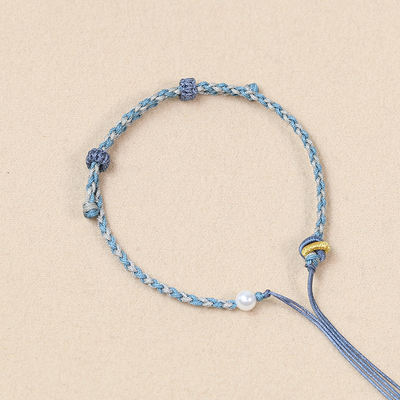 极细款编绳手链半成品手绳小红书ins风手工DIY编织手串绳蓝晶石
