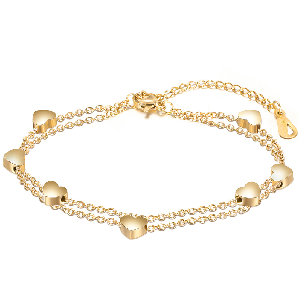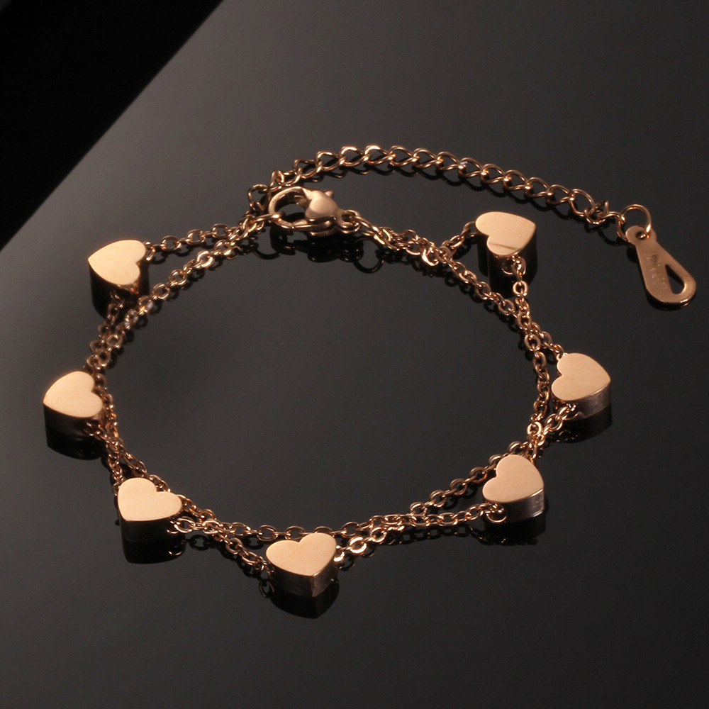跨境亚马逊热卖欧美时尚个性潮流爱心穿孔7MM不锈钢钛钢手链批发