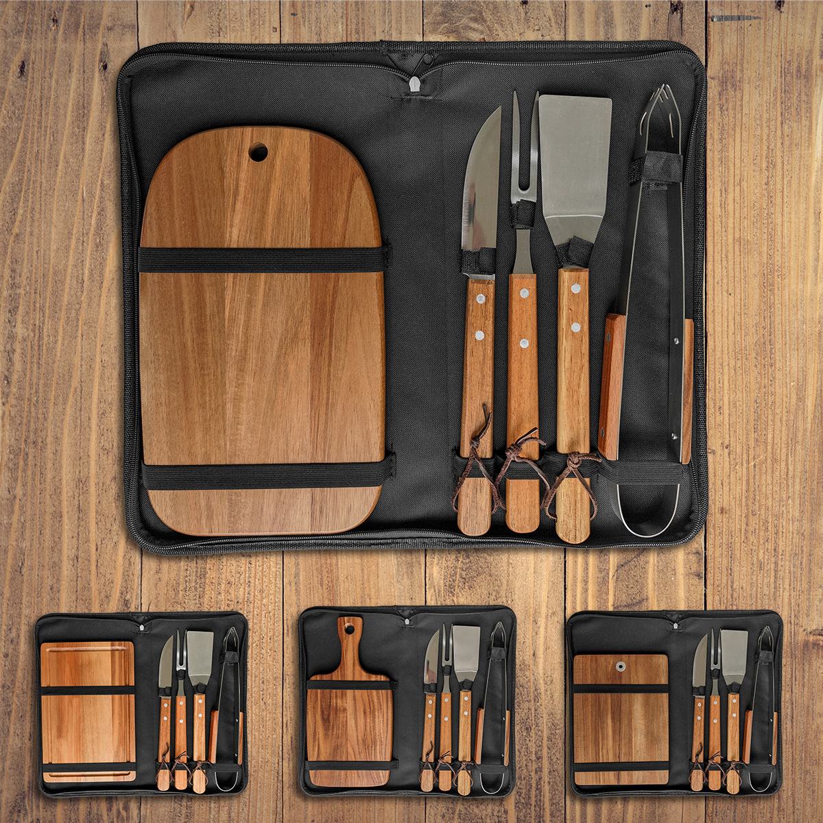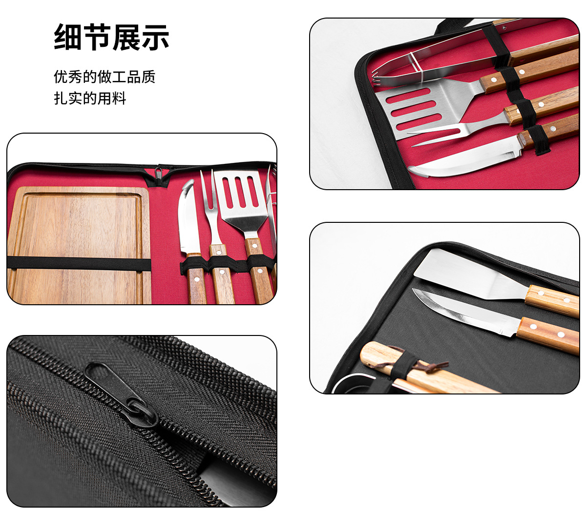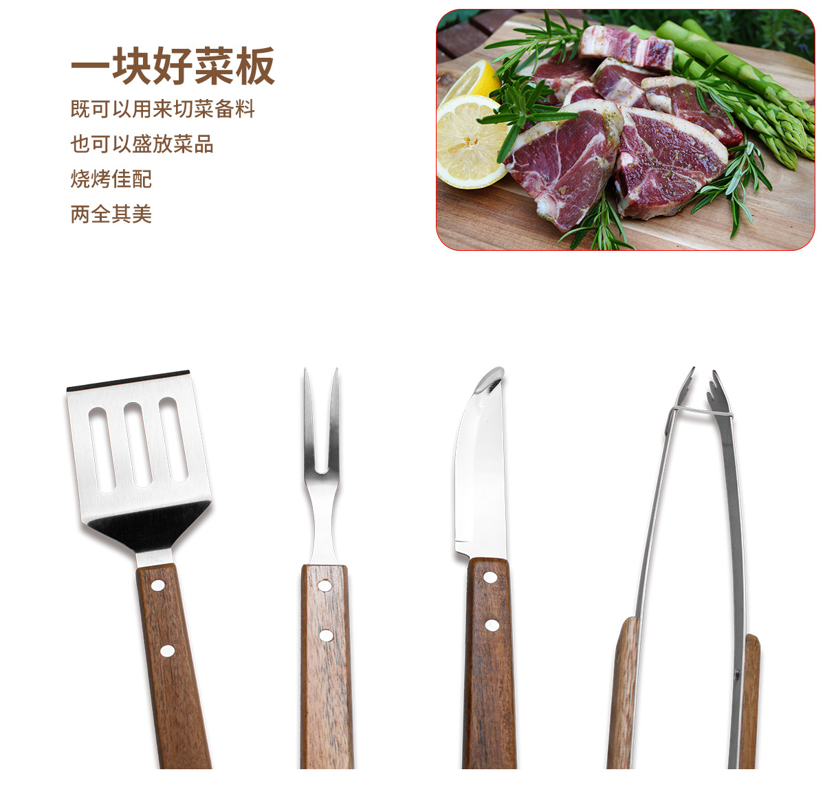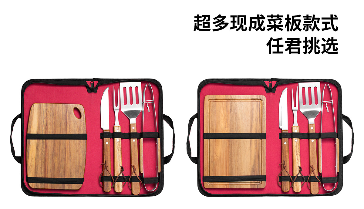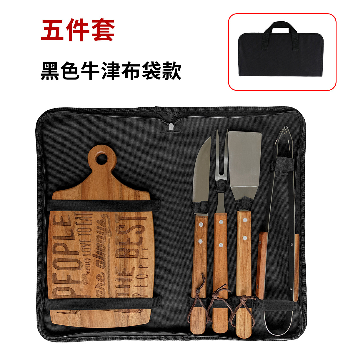 绿森相思木菜板实木手柄烧烤工具五件套装牛津布袋装户外烤具批发