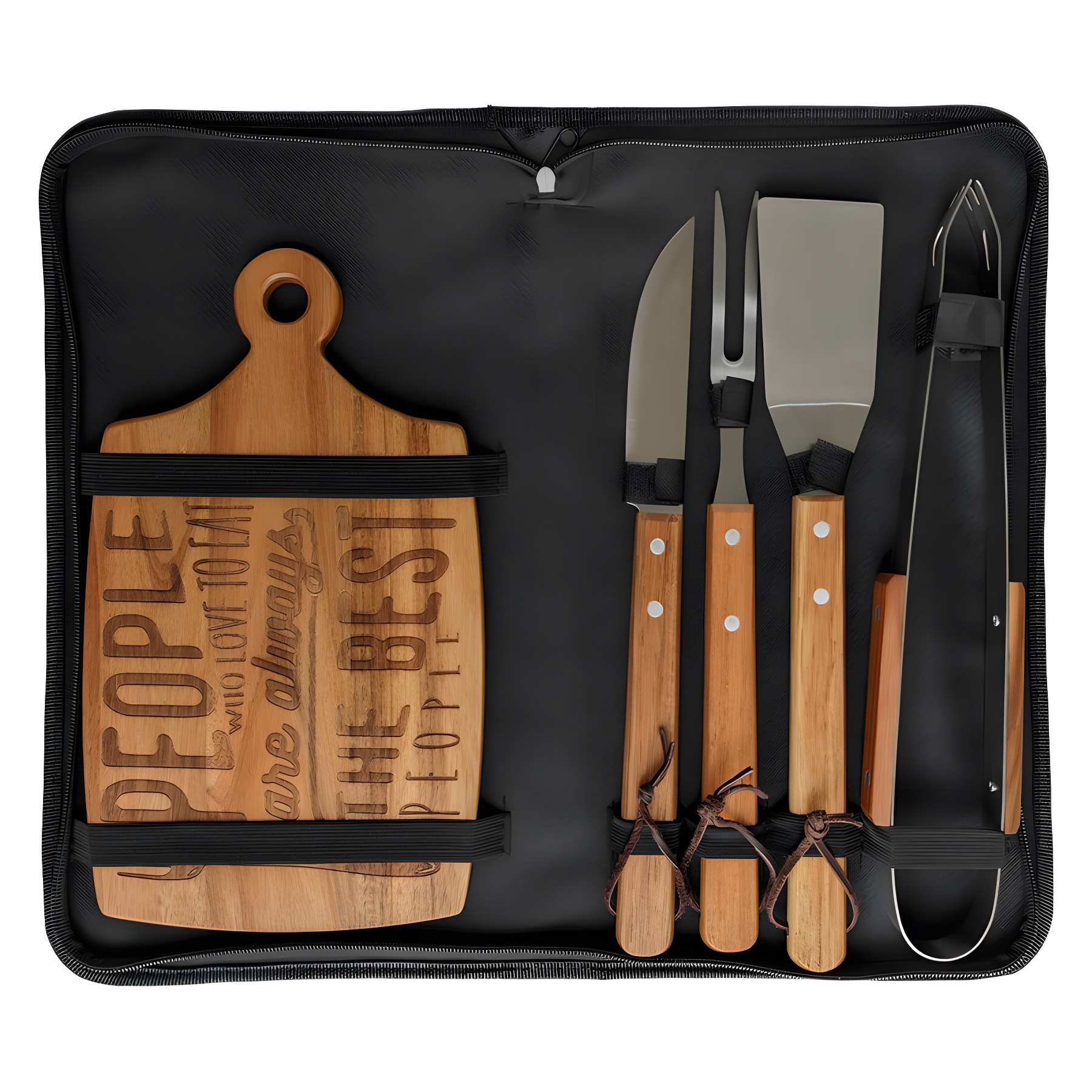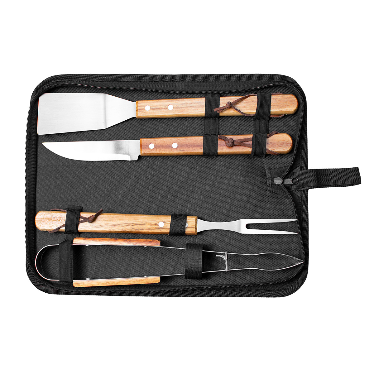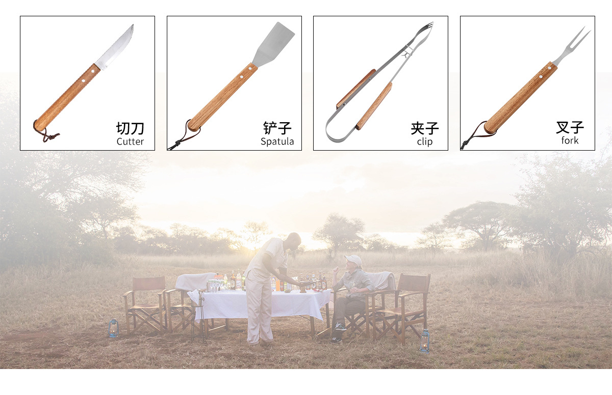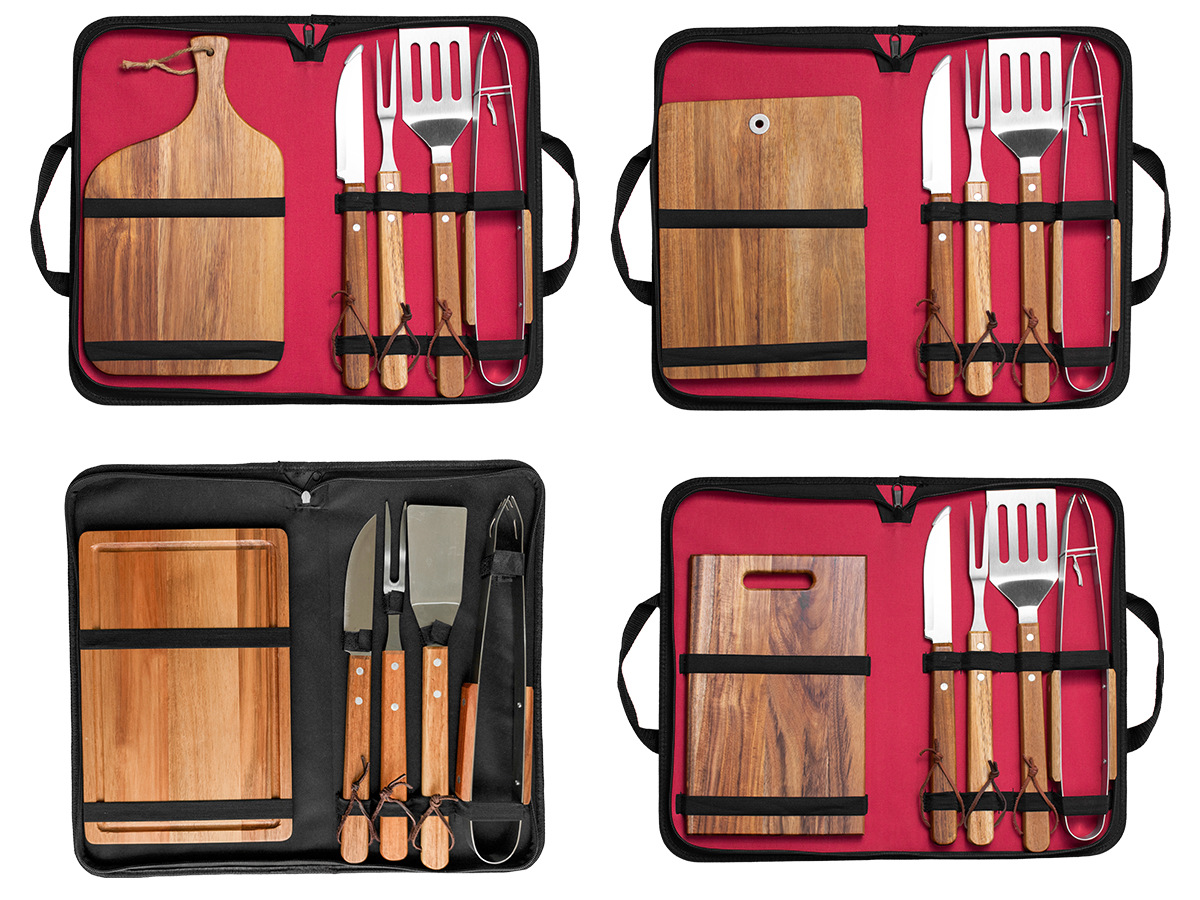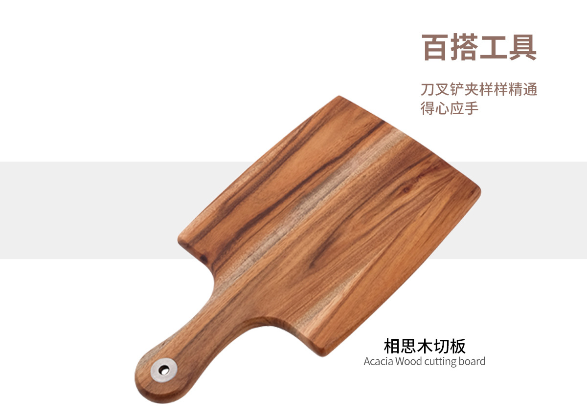 绿森相思木菜板实木手柄烧烤工具五件套装牛津布袋装户外烤具批发
