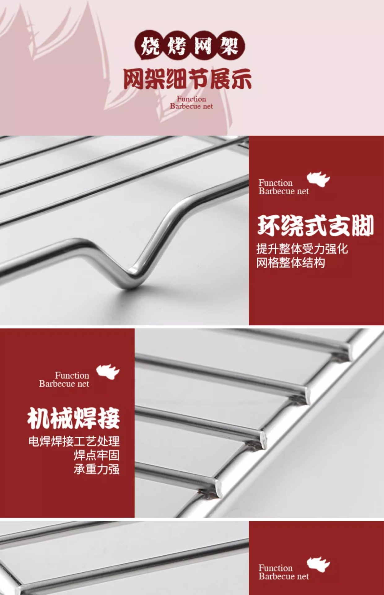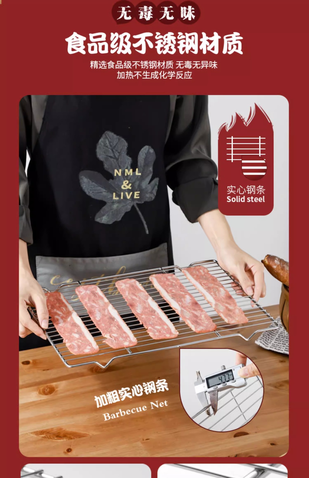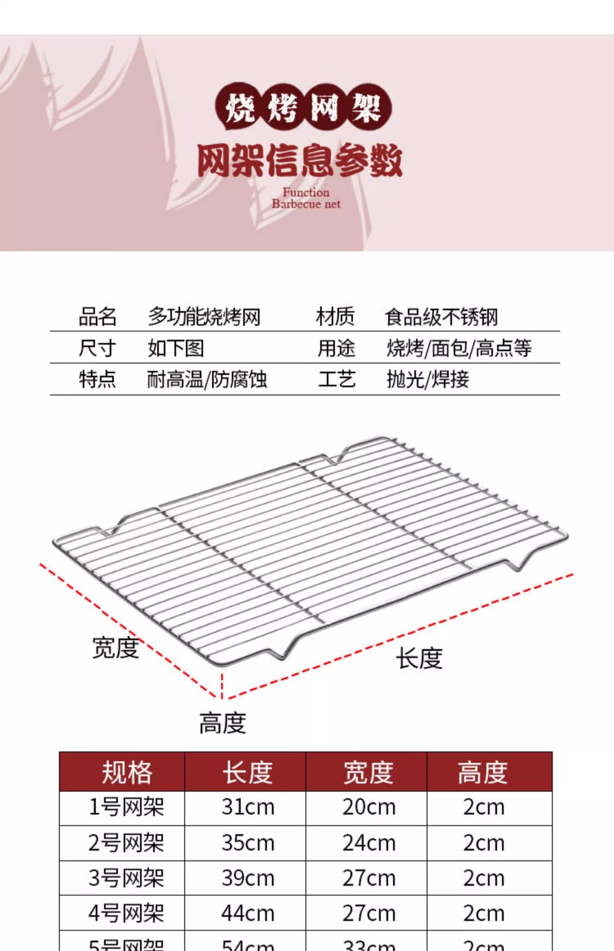 烧烤网不锈钢烧烤用具网格长方形晾蛋糕晾网油炸直火明火沥油架子