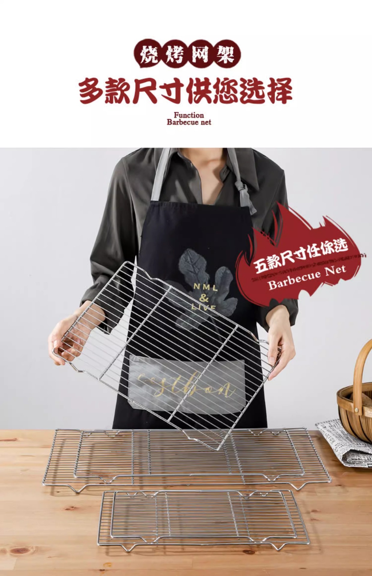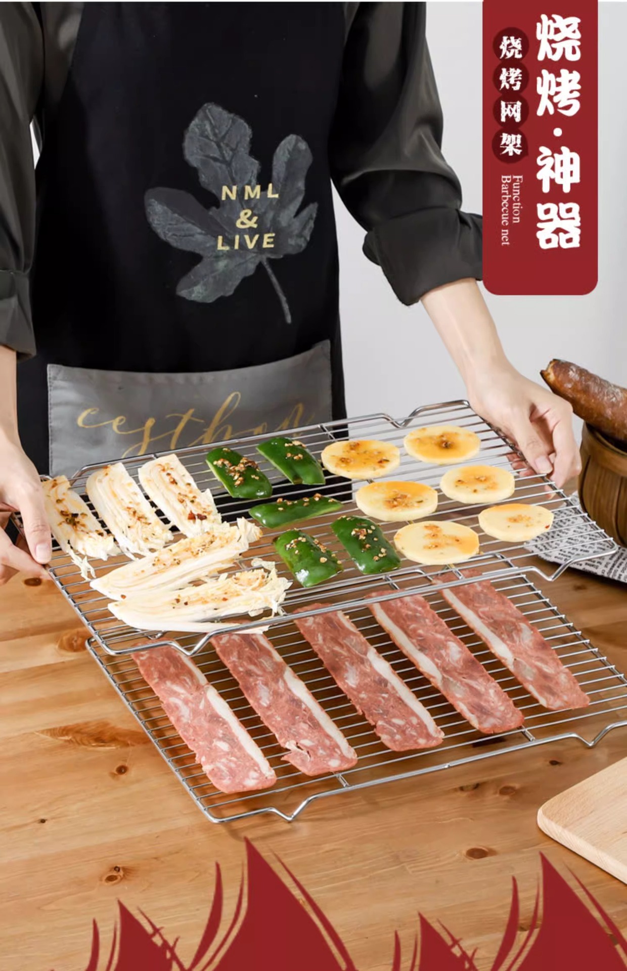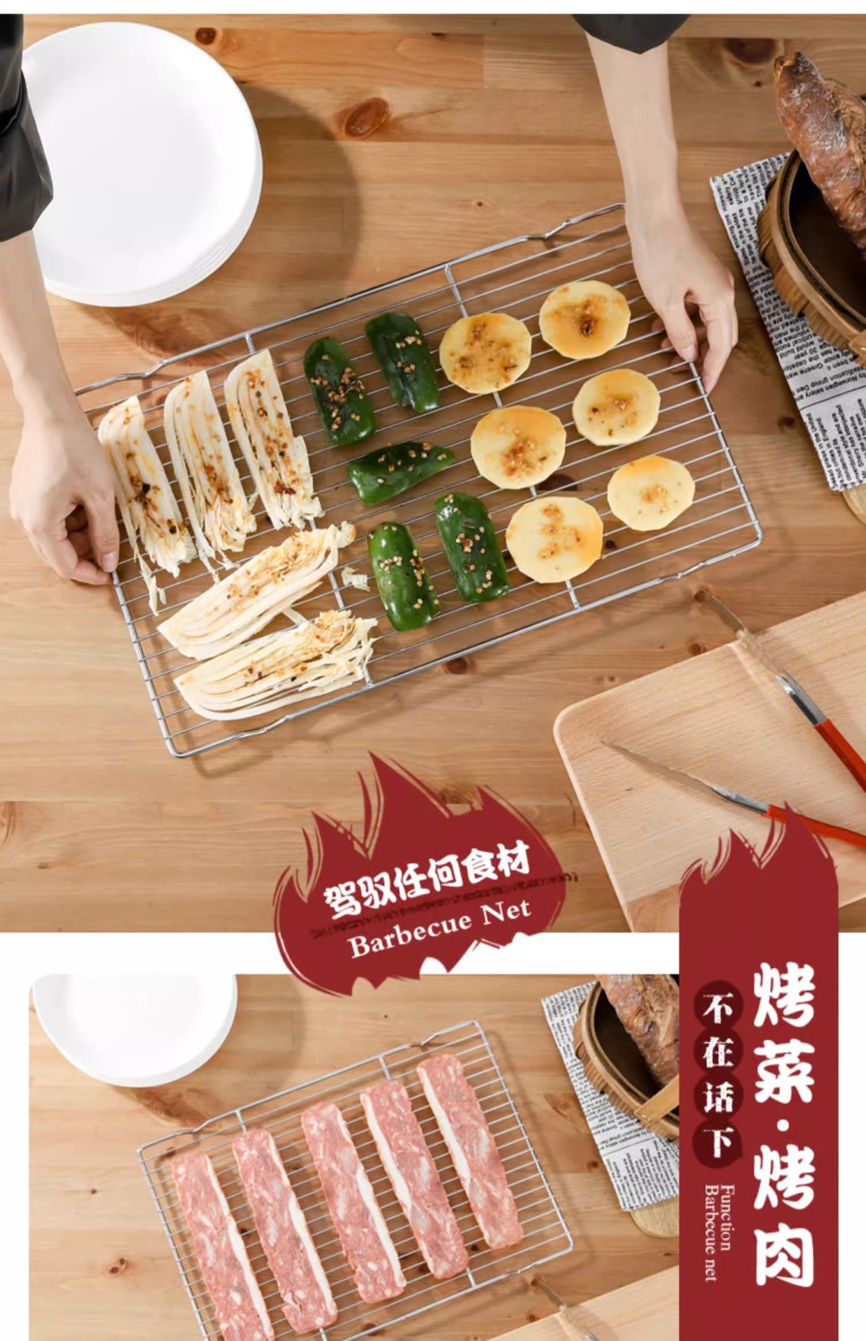 烧烤网不锈钢烧烤用具网格长方形晾蛋糕晾网油炸直火明火沥油架子