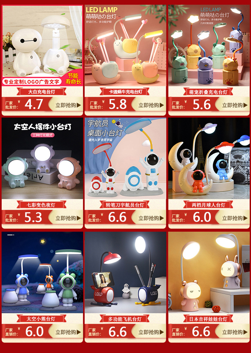 印字logousb小夜灯儿童学生学习折叠充电护眼台灯床头氛围宇航