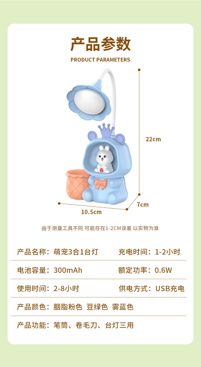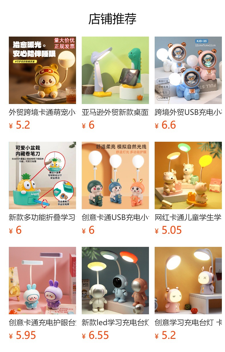 亚马逊外贸卡通充电台灯 USB折叠阅读护眼台灯桌面卧室床头灯夜灯