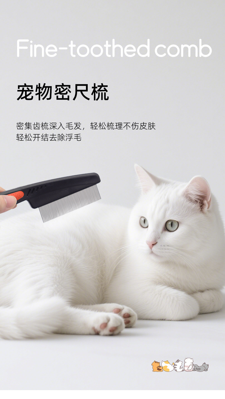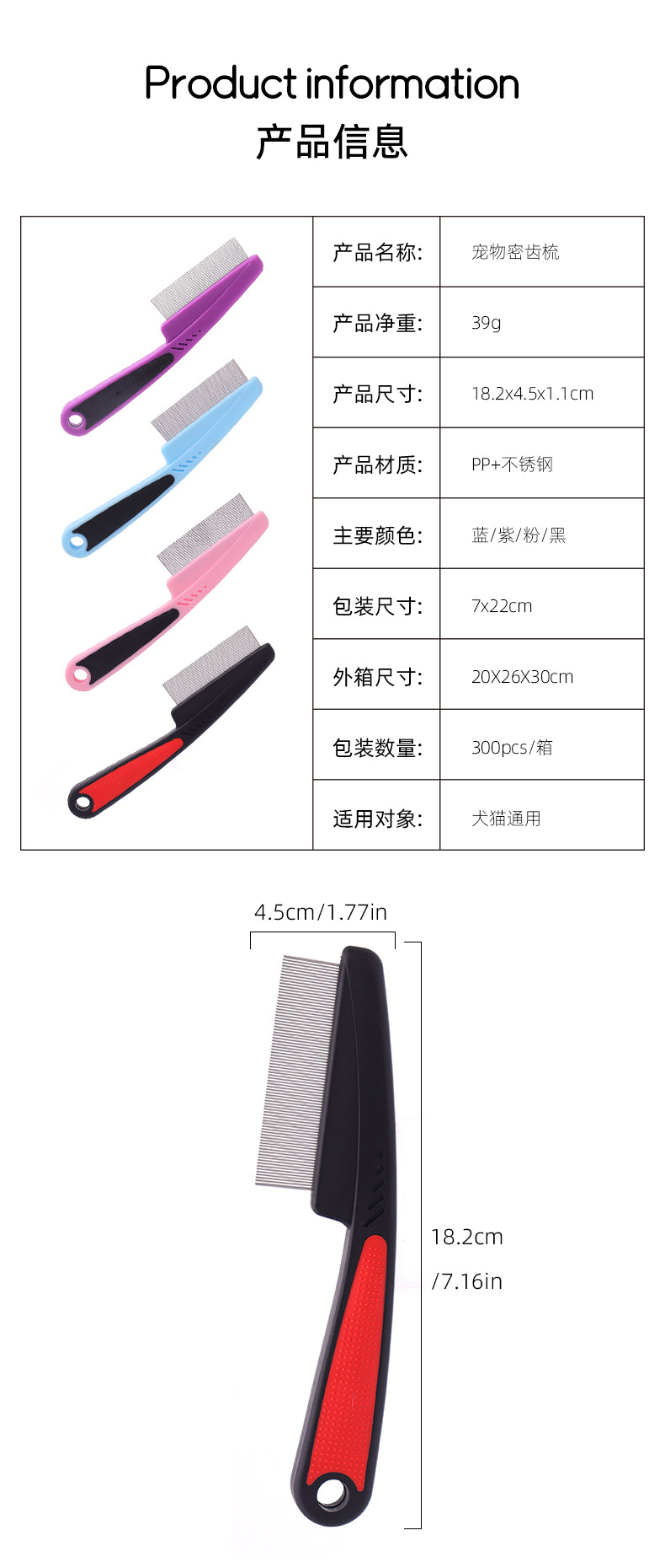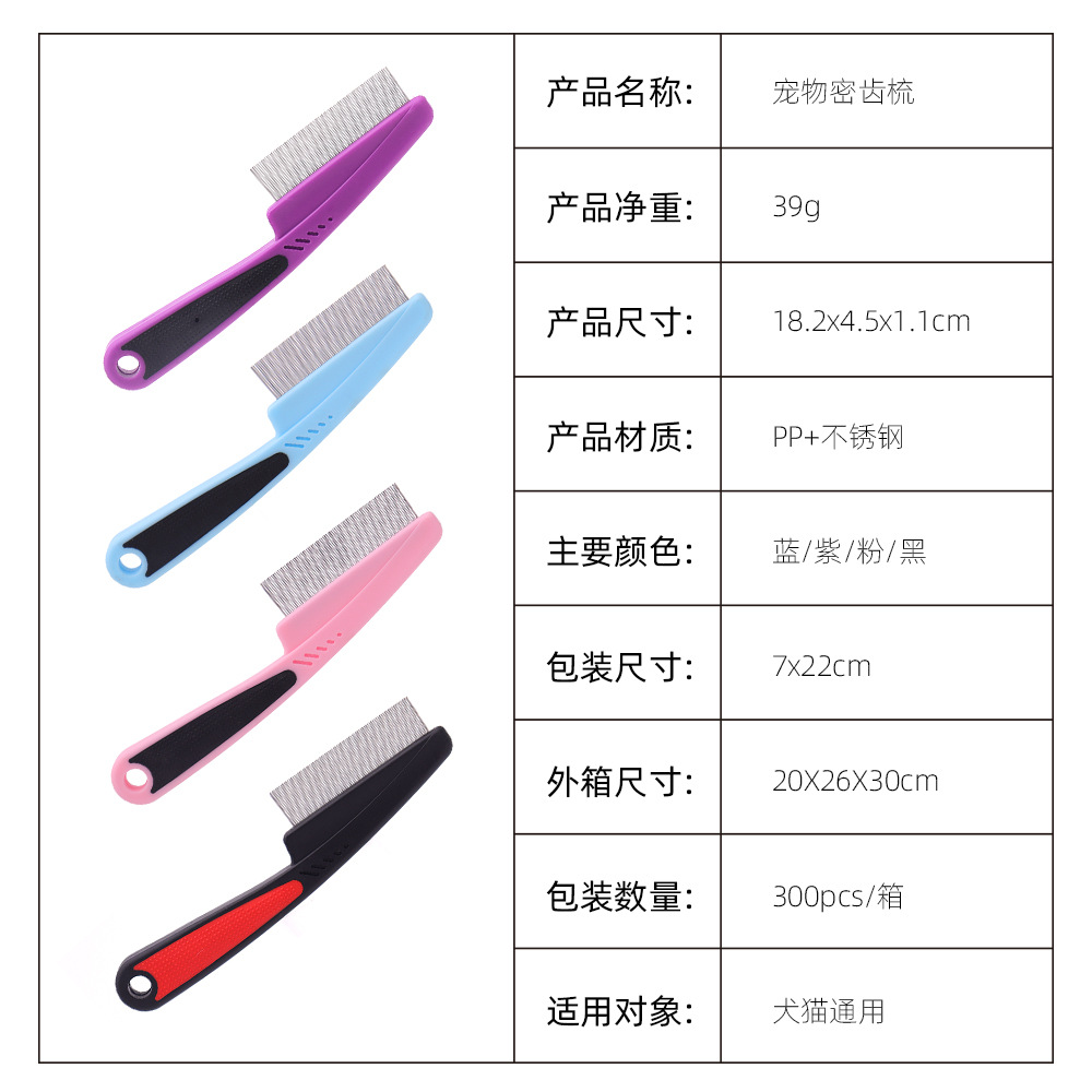猫咪狗狗梳子不锈钢密齿跳蚤梳宠物清洁除蚤去浮毛排梳猫狗用品