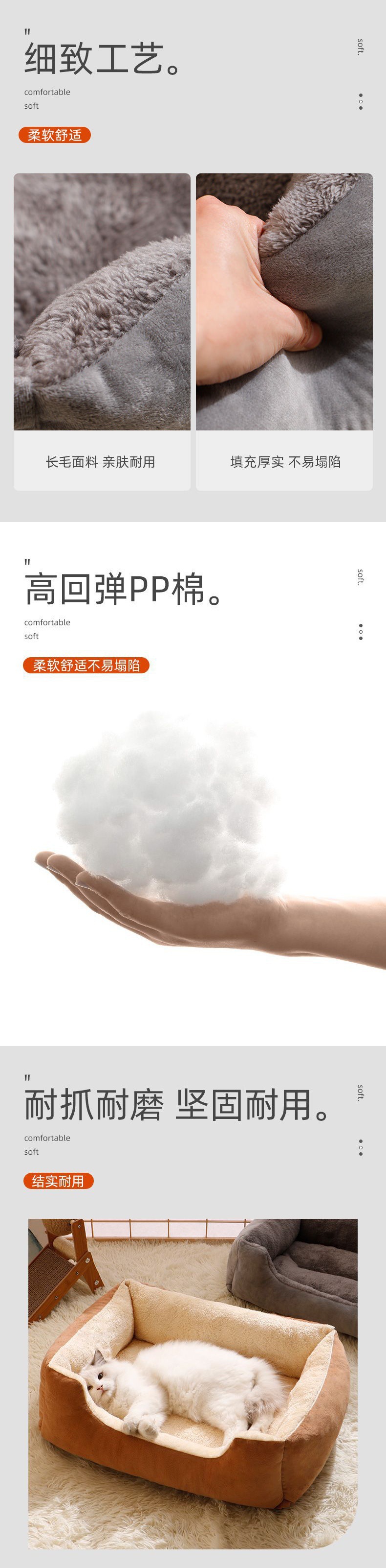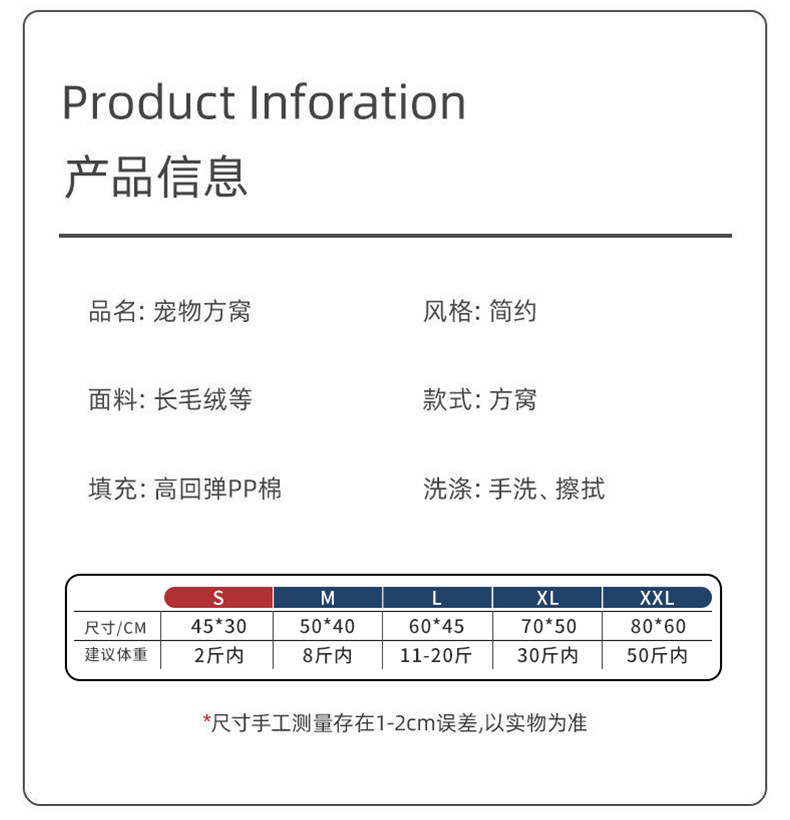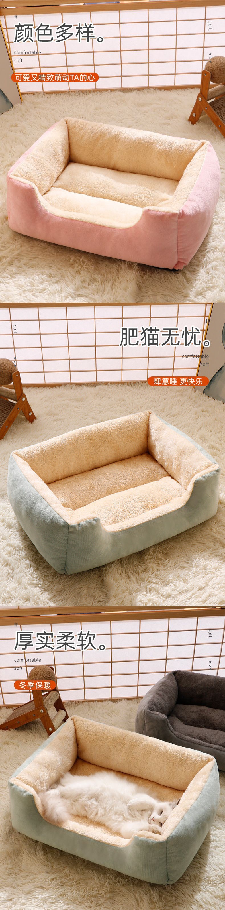 猫窝狗窝垫四季通用宠物用品高颜值中小型犬沙发床冬季保暖方形窝