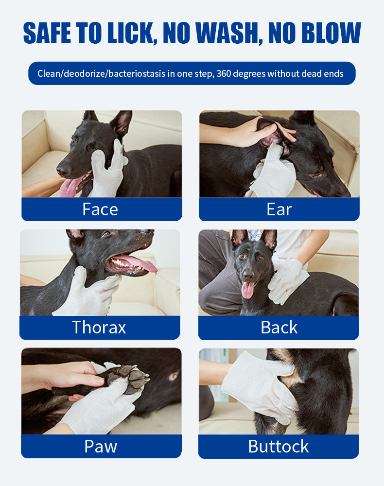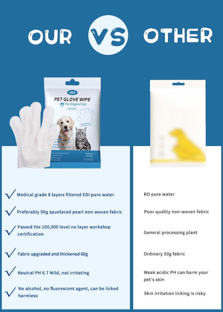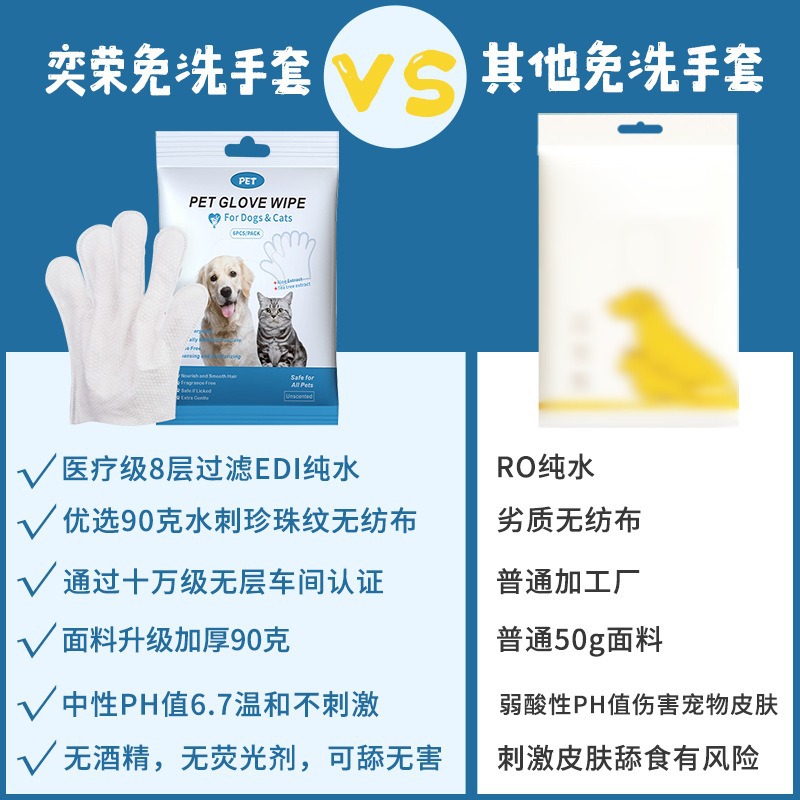 奕荣外贸跨境宠物免洗手套一次性免洗澡清洁手套湿巾猫咪狗狗用品
