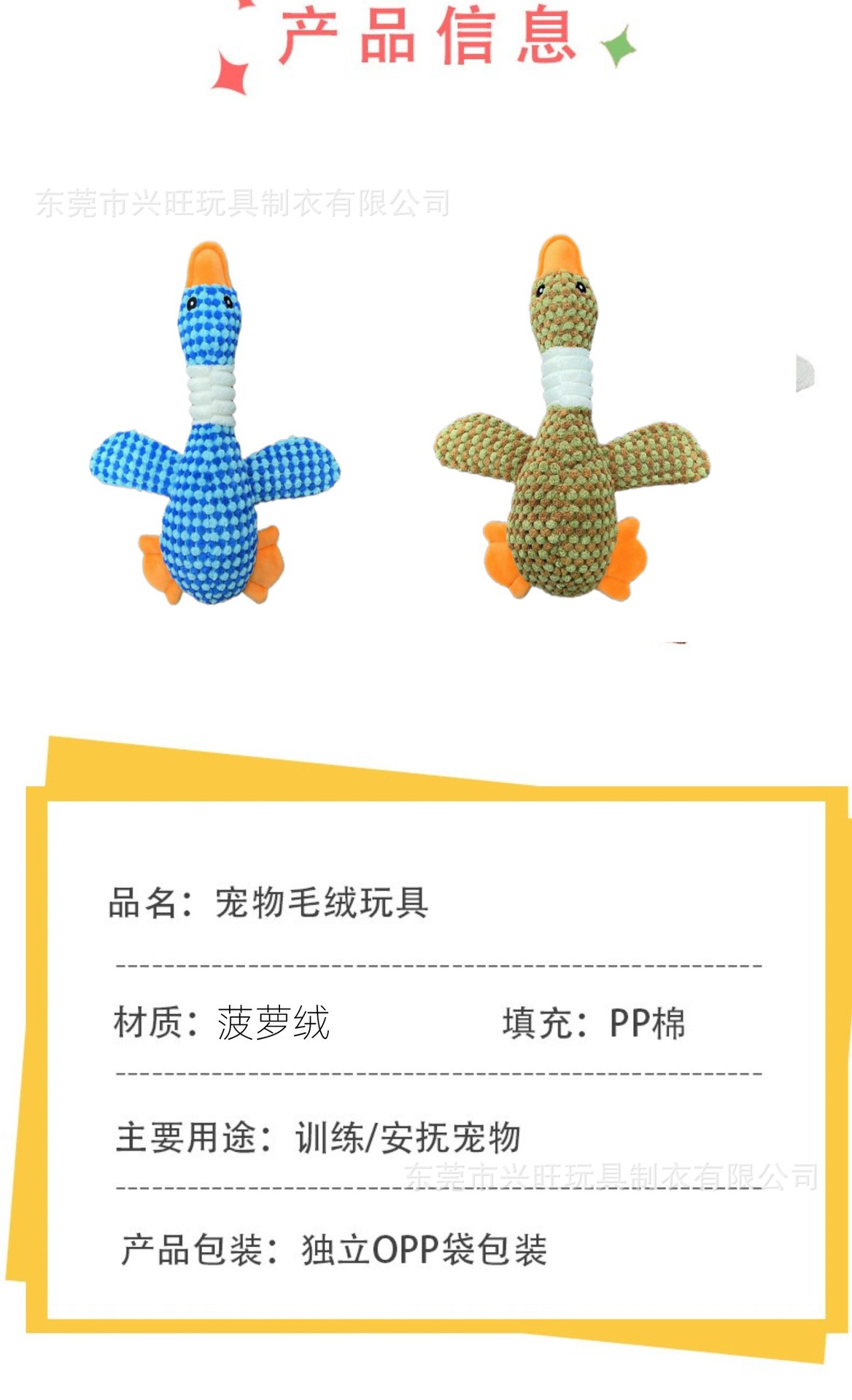 跨境新款宠物玩具菠萝绒大雁猫狗狗毛绒发声玩具耐咬益智宠物用品
