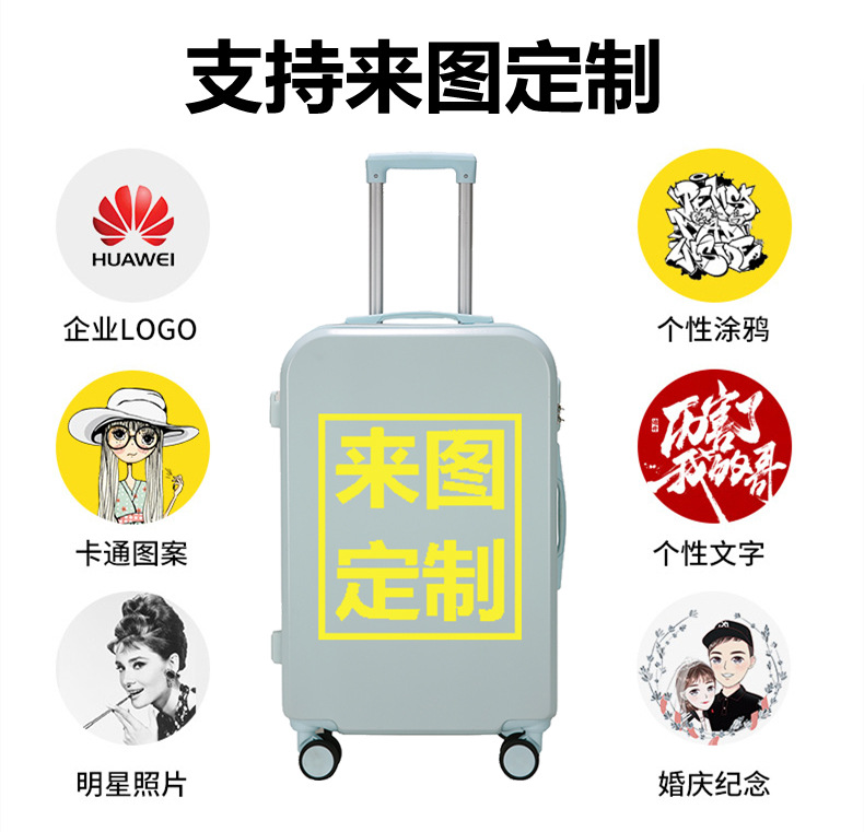 可来图印制行李箱纯色多彩旅行箱拉杆登机箱男女学生小清新密码箱
