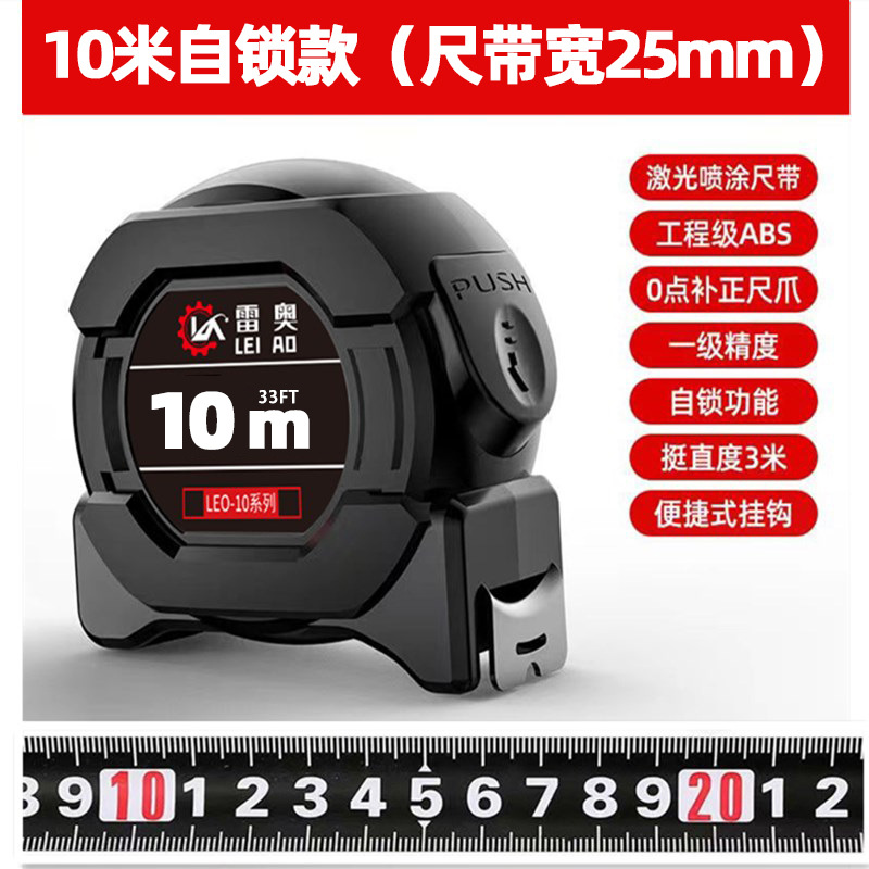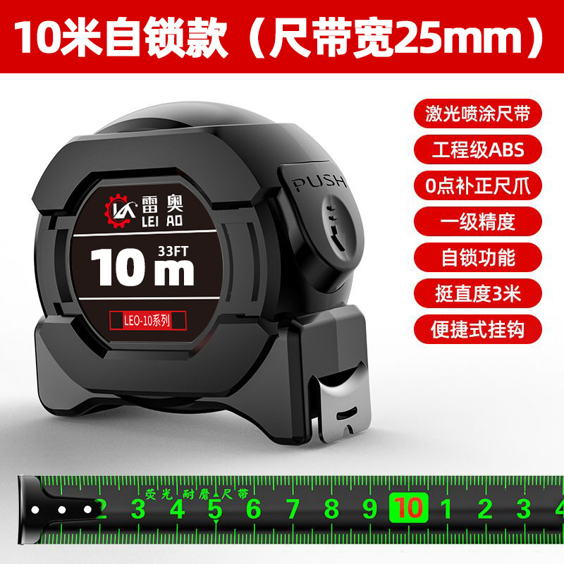 黑科技荧光自锁卷尺 黑金钢5米加宽加厚米尺高精度耐磨防摔钢卷尺