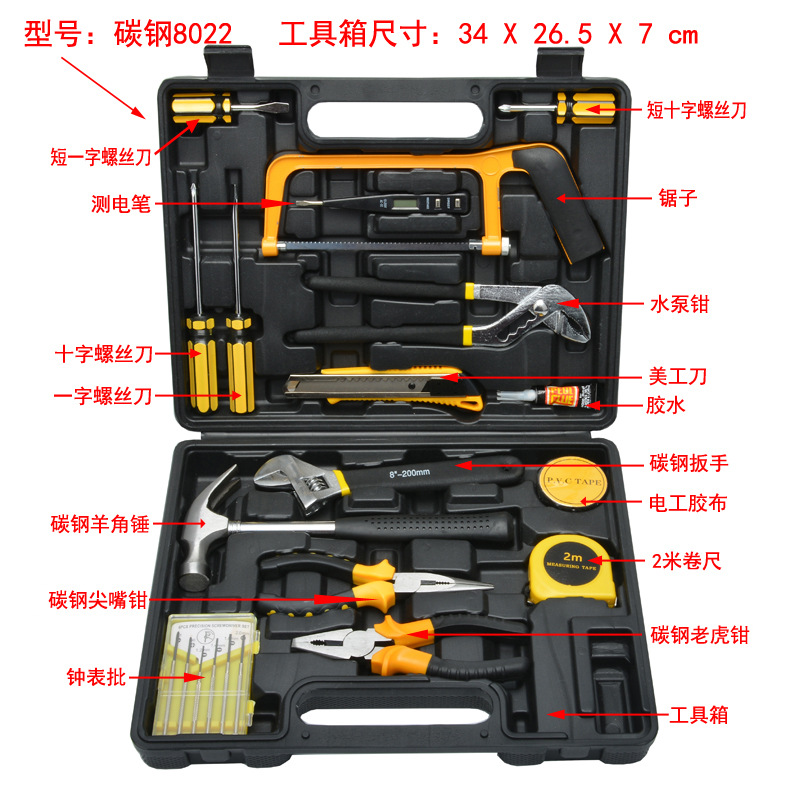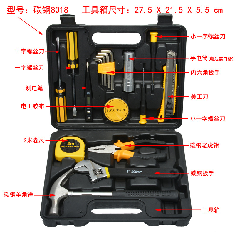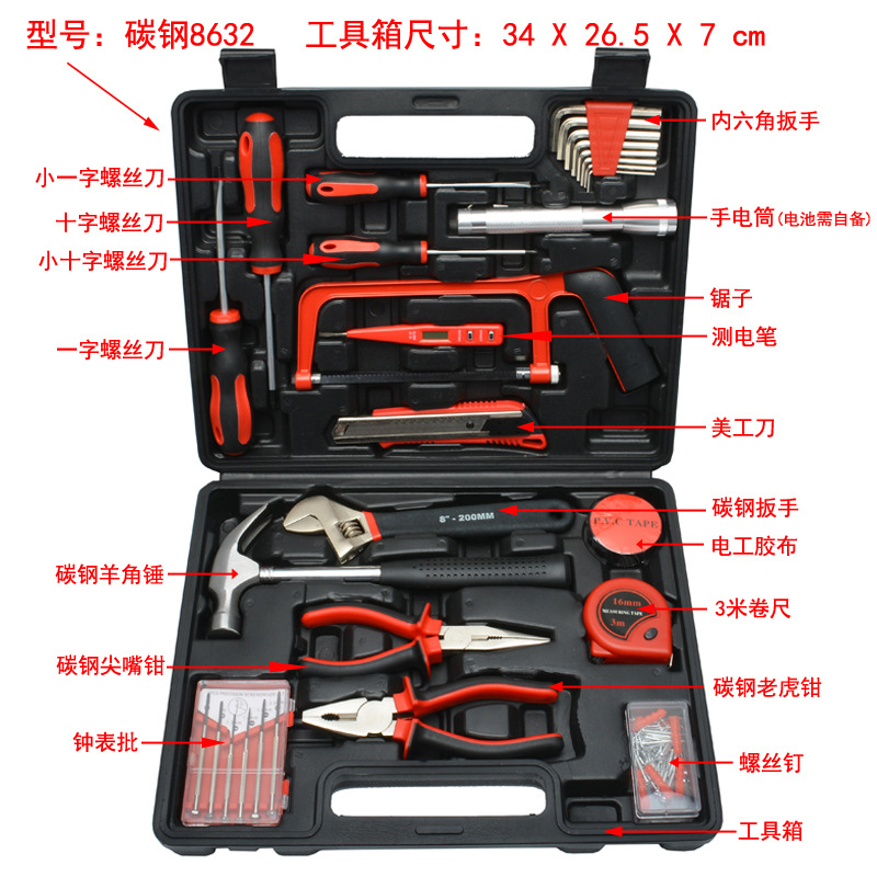 靖童维修工具箱家用工具组套五金工具应急多功能家用组合套装工具