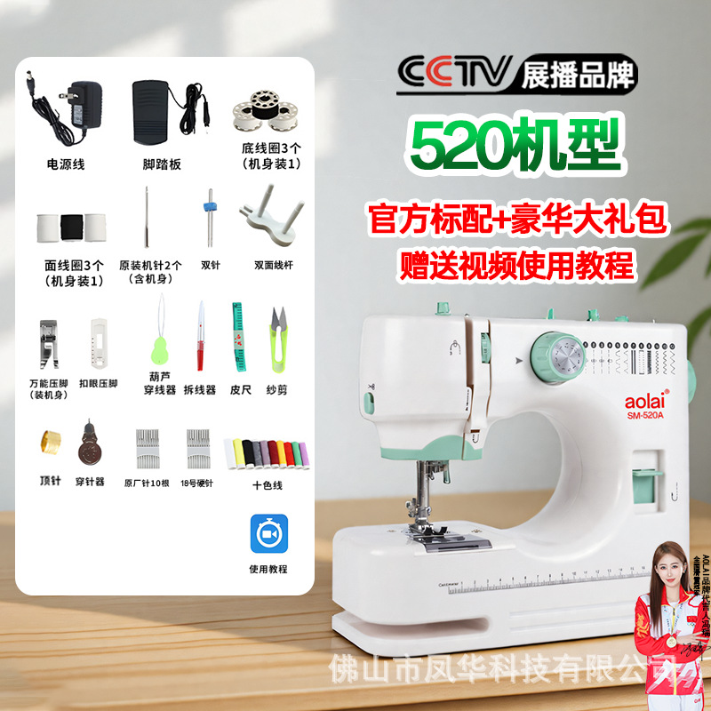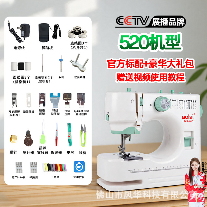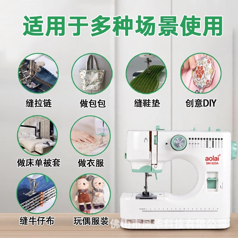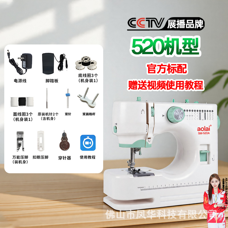 aolai520缝纫机家用小型电动全自动迷你带锁边衣车双针双线缝纫机