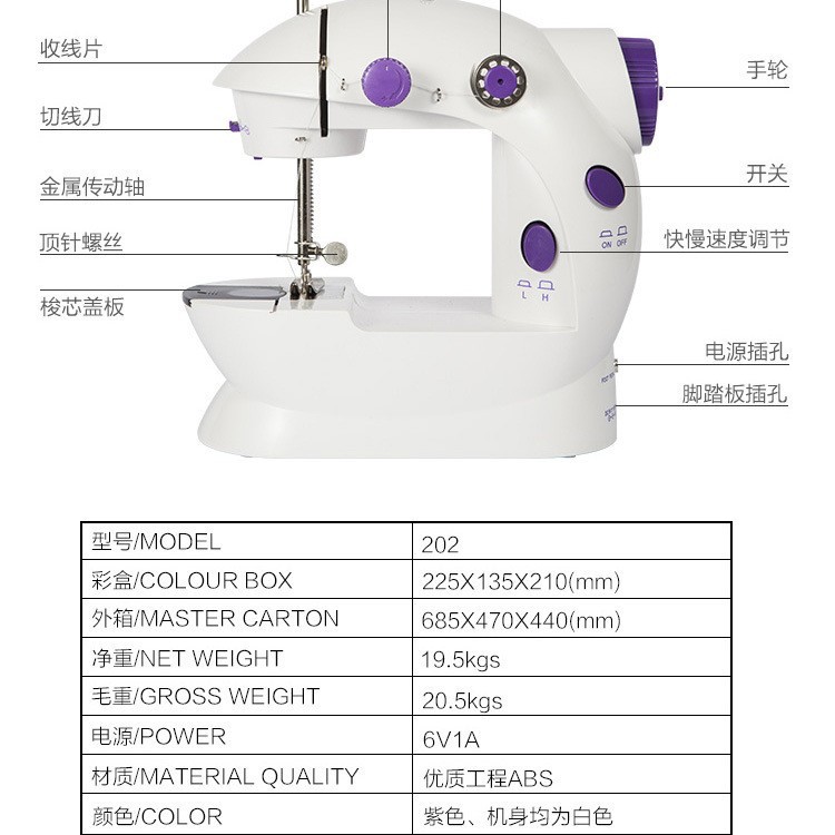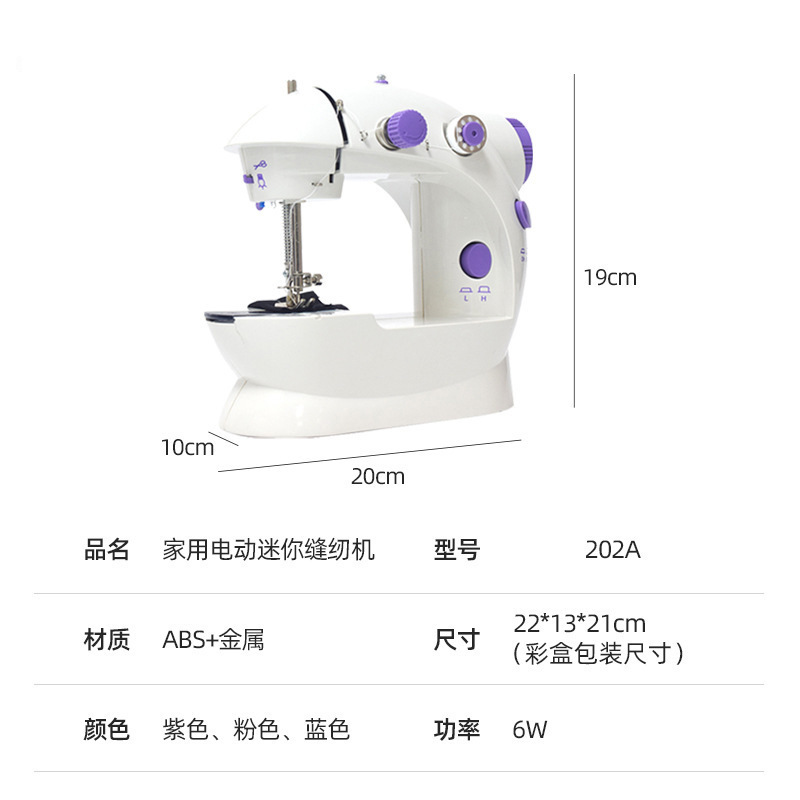 202A迷你缝纫机带灯带刀迷你小型手提便携式衣车跨境爆款厂家批发