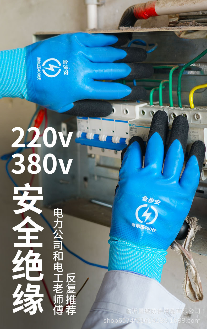 400v电工绝缘手套防电带电接线作业380V低压灵活接电高压橡胶220v