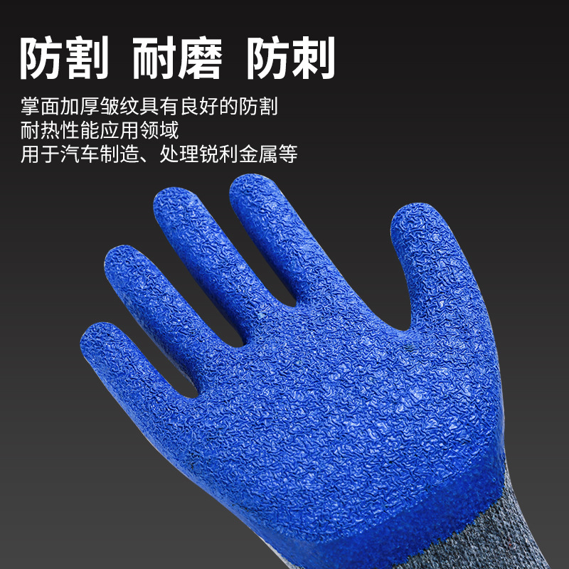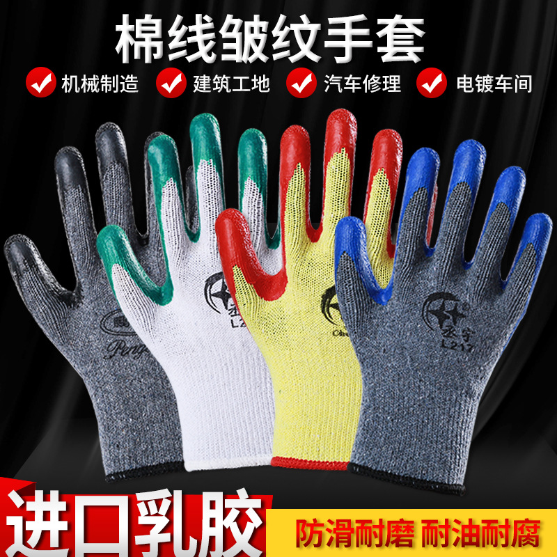 劳保手套浸胶耐磨工作橡胶防滑加厚棉线皱纹挂胶劳动防护胶皮手套