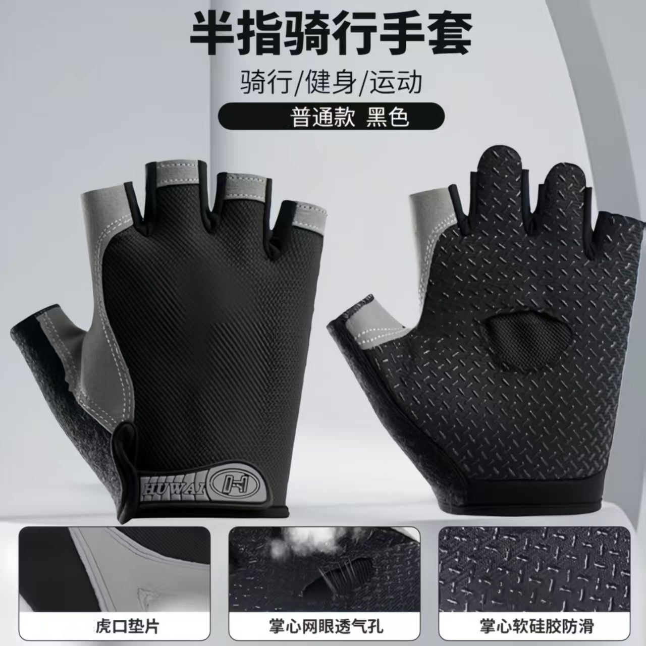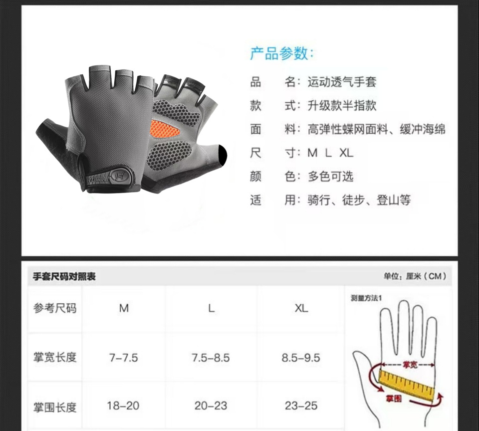 骑行半指手套户外运动防晒防滑男女健身网布夏季自行车护超薄透气