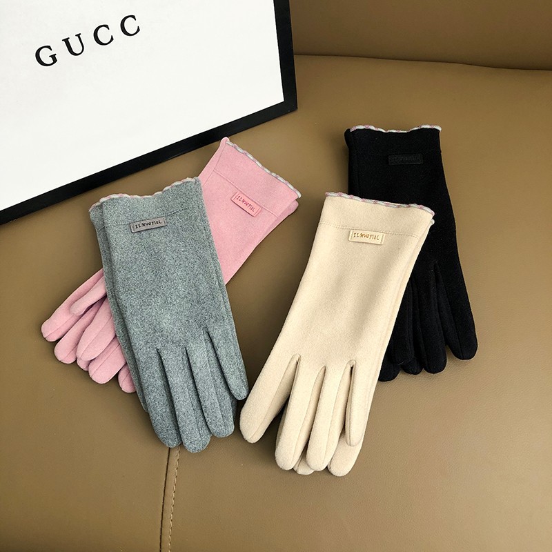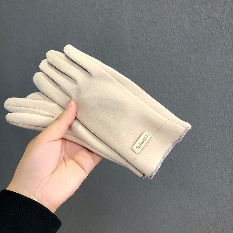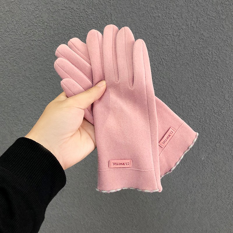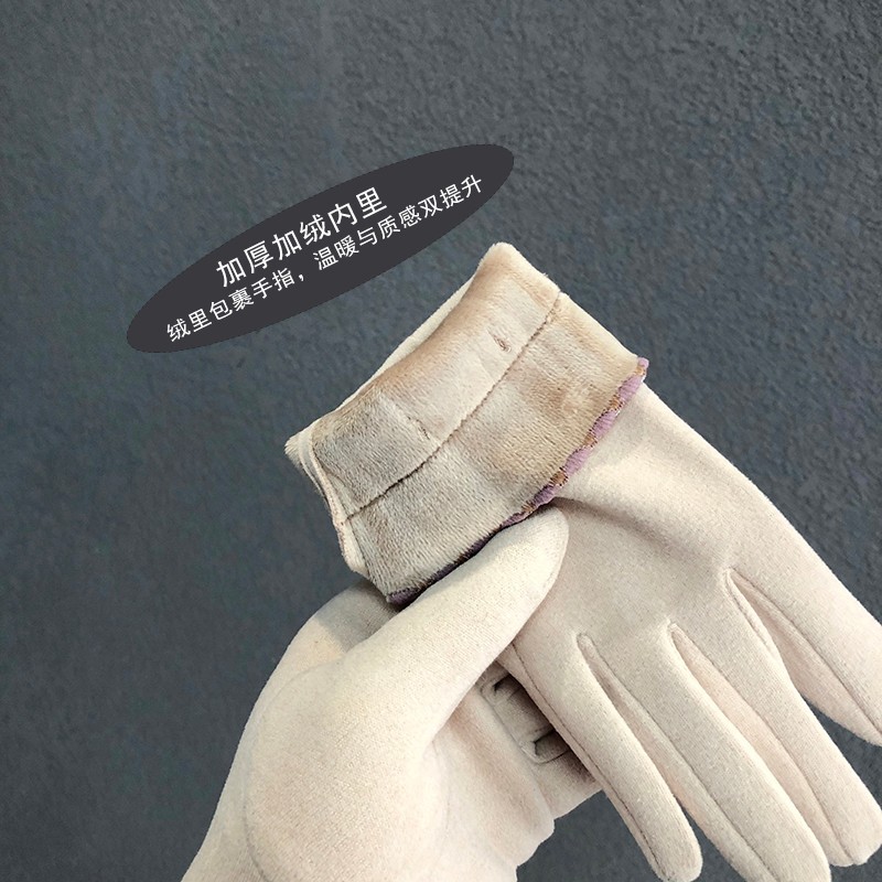 冬季女士德绒保暖手套可触屏加绒防寒户外骑行手套女