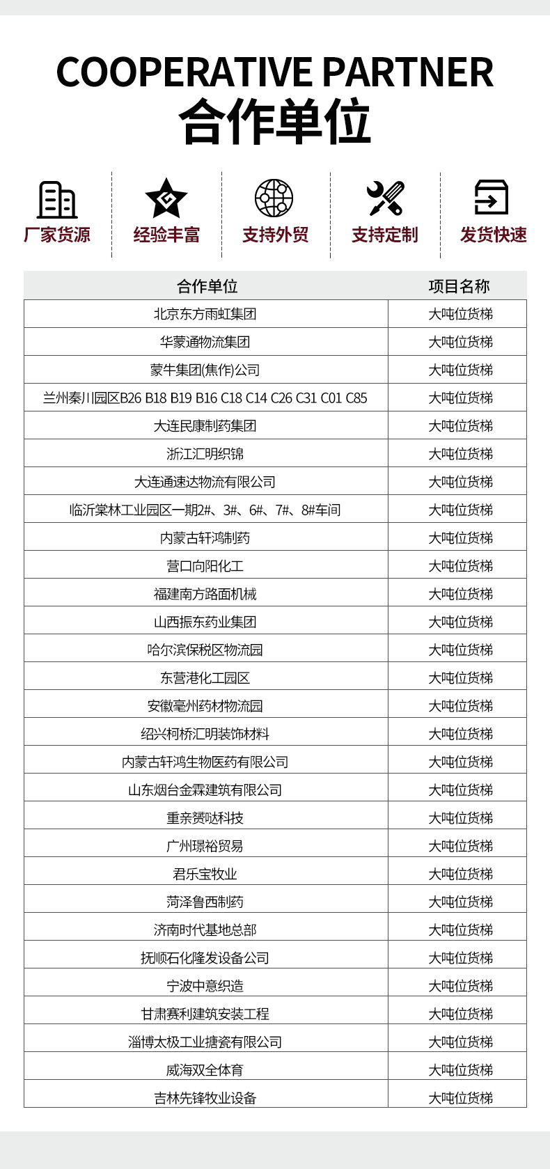 | deposit for large-tonnage freight ladder(大吨位货梯定金) | USD $0.0 | 993 piece available |