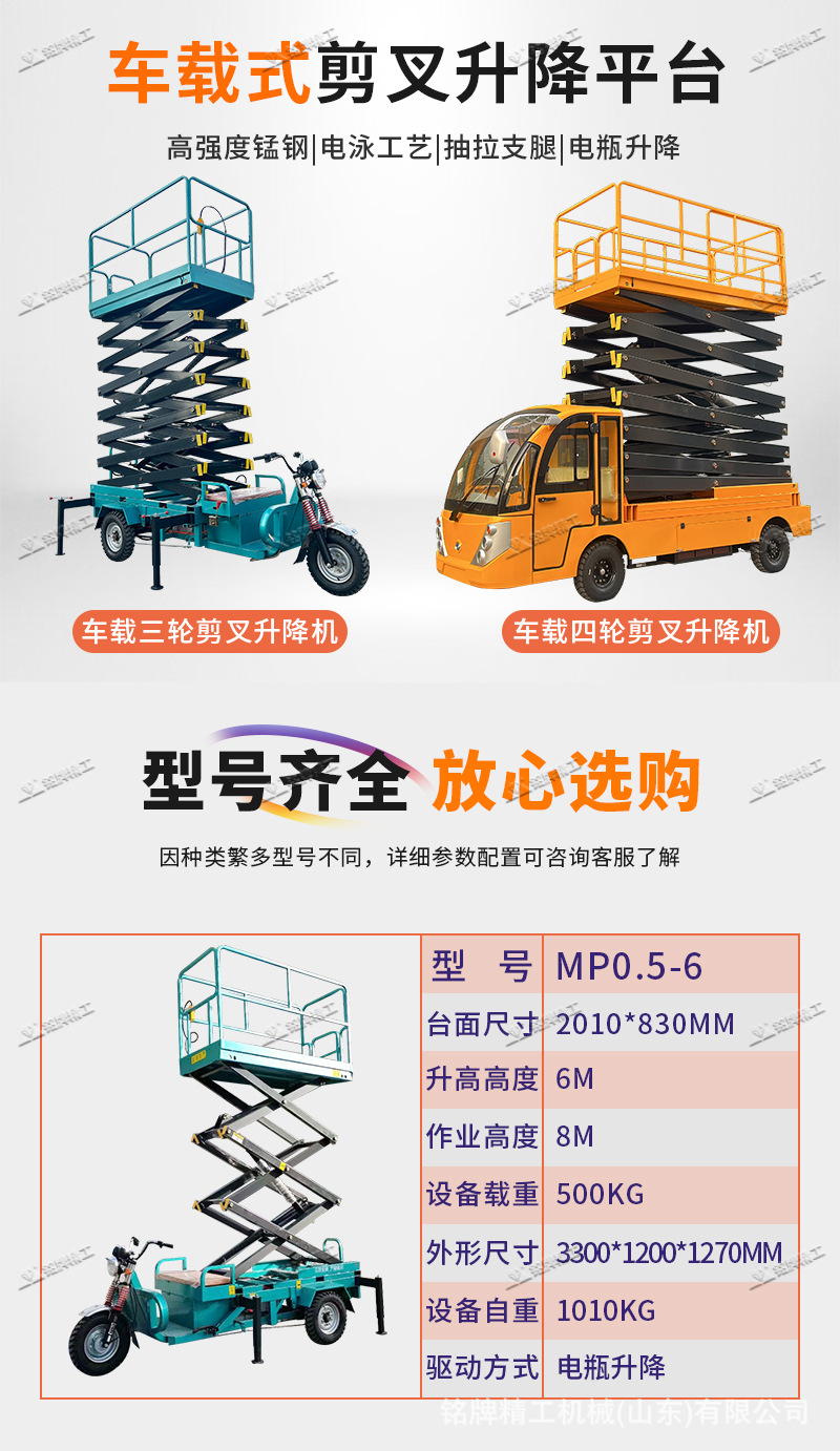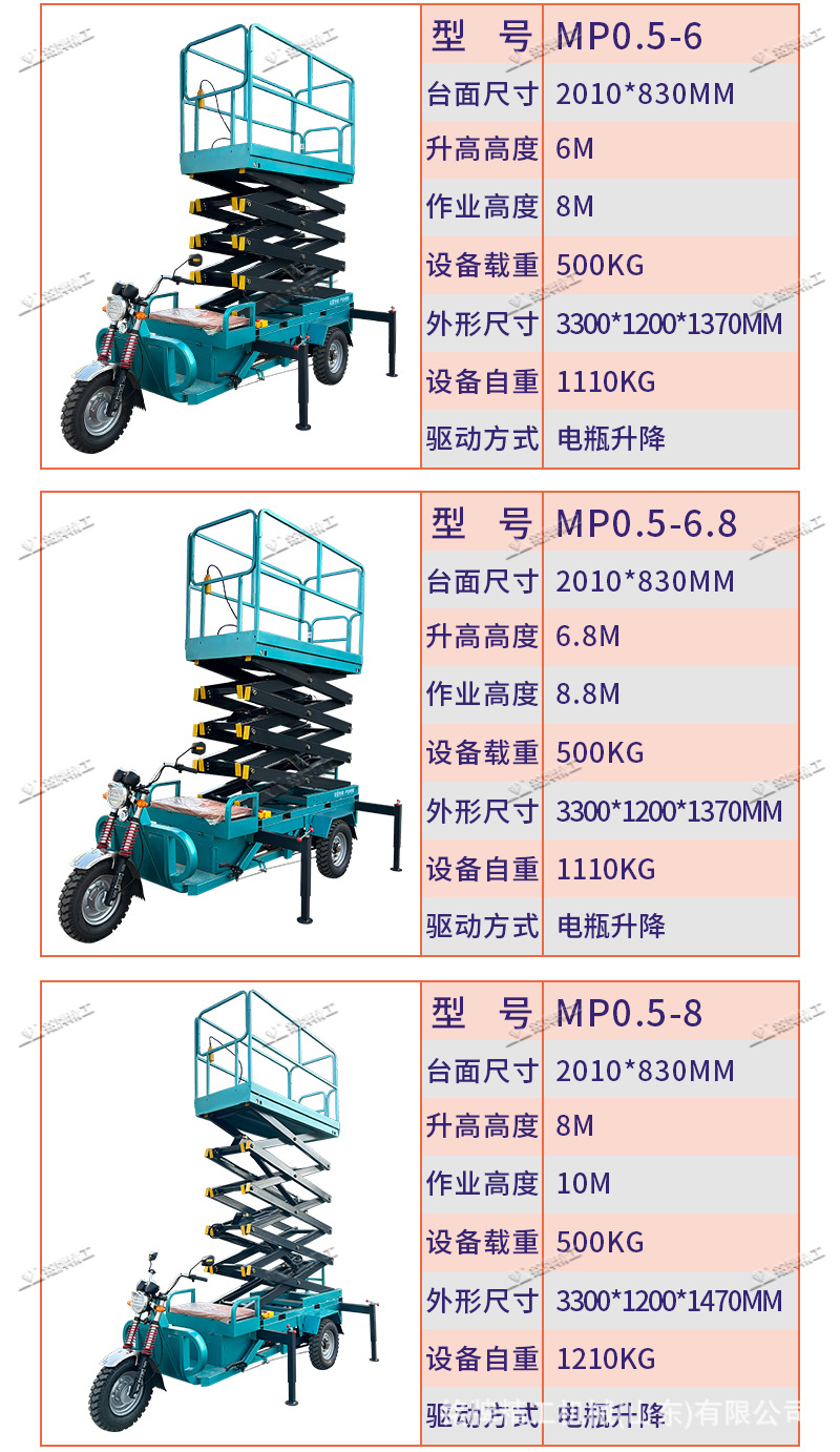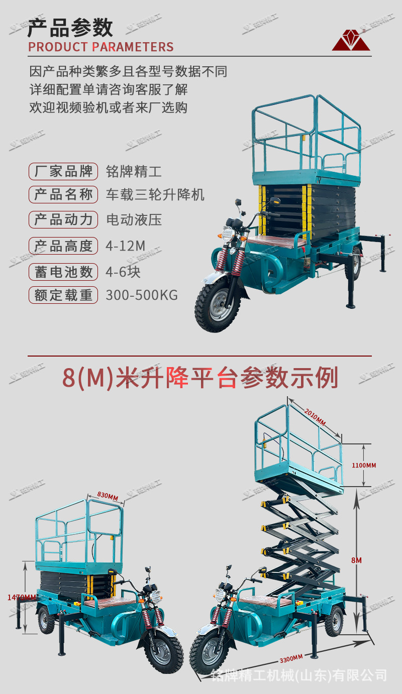 车载三轮车升降机 小型电动升高4-12米升降车 车载式剪叉升降平台