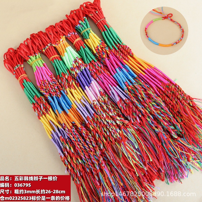 捡漏端午节五彩绳手工编织如意结七彩绳红绳手链男女儿童饰品脚链