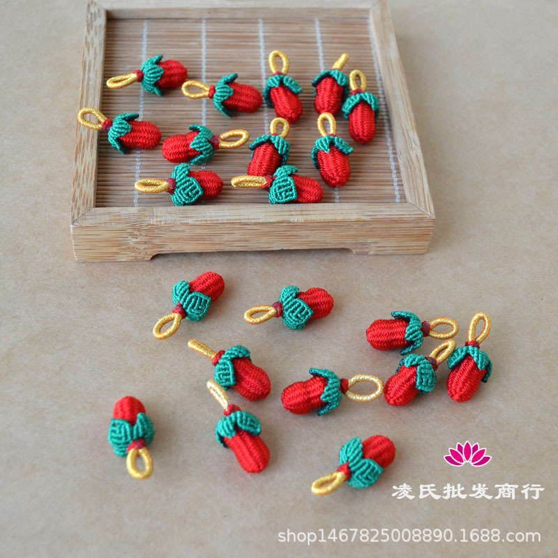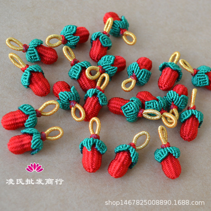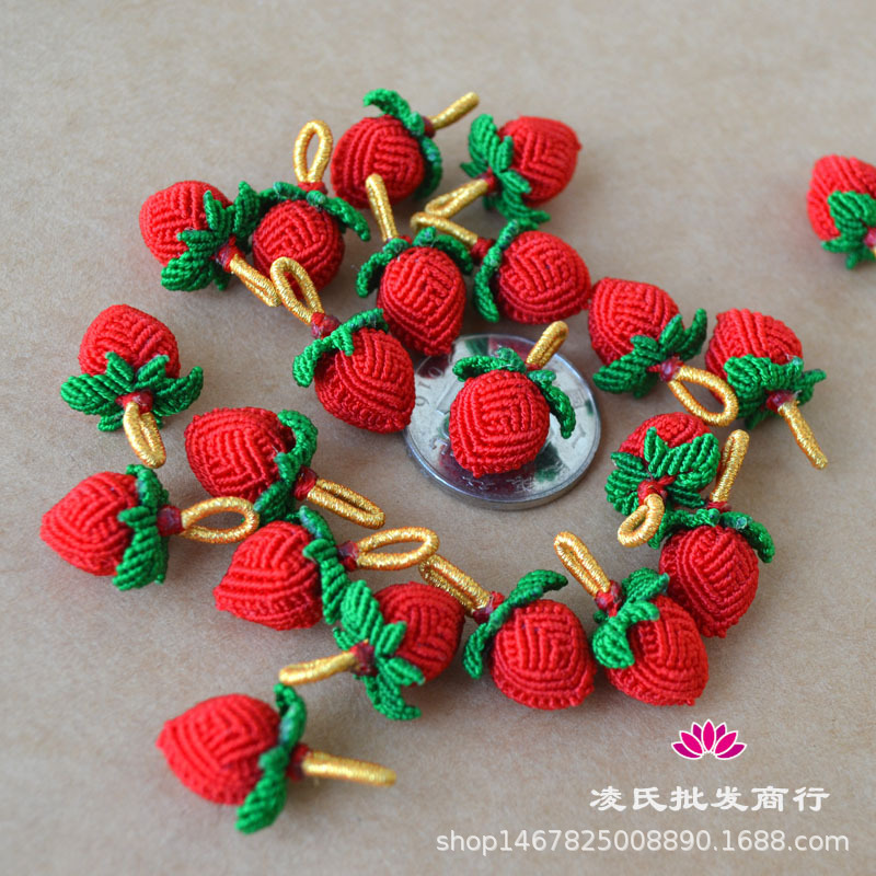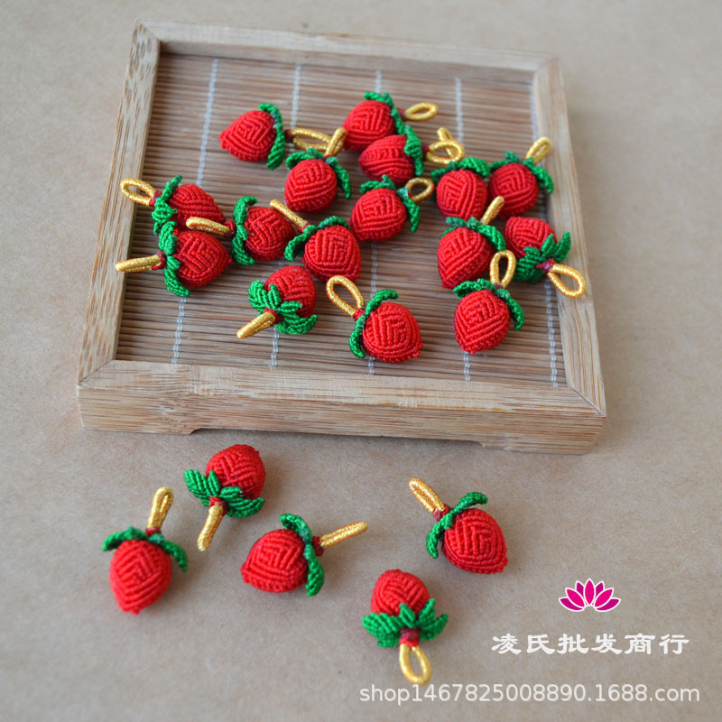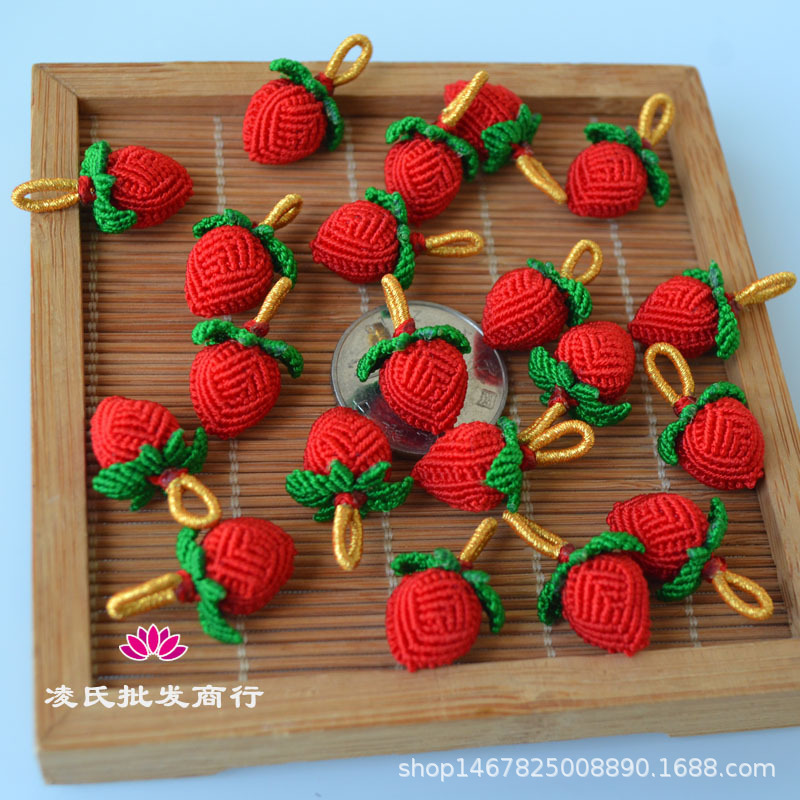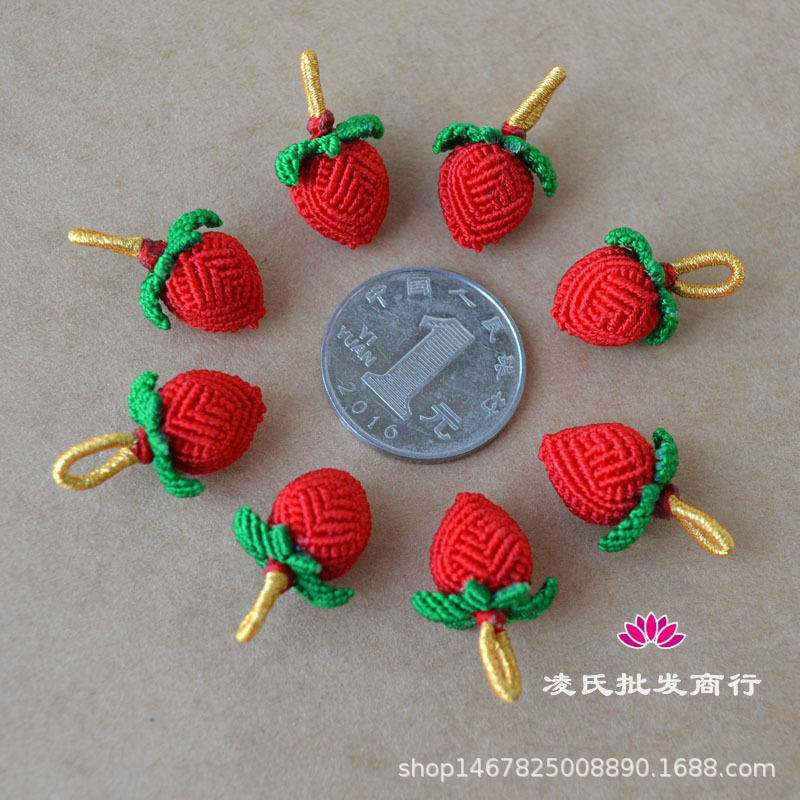 手工编织小花生五彩手链挂件端午节小小草莓红绳吊坠手编手绳配件