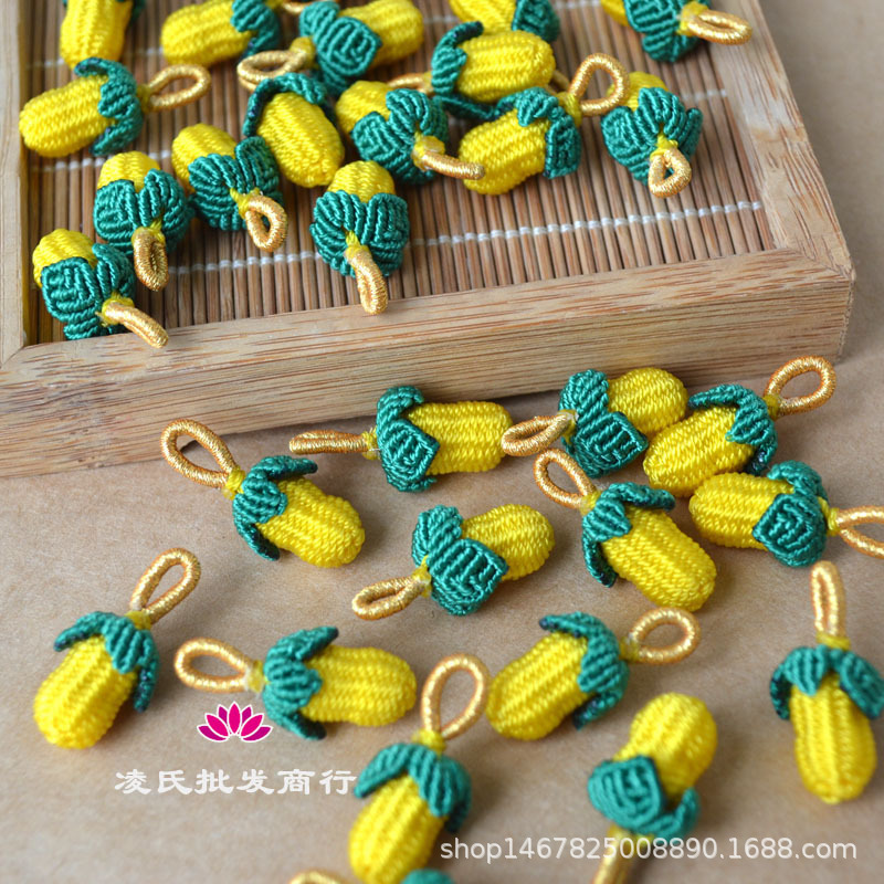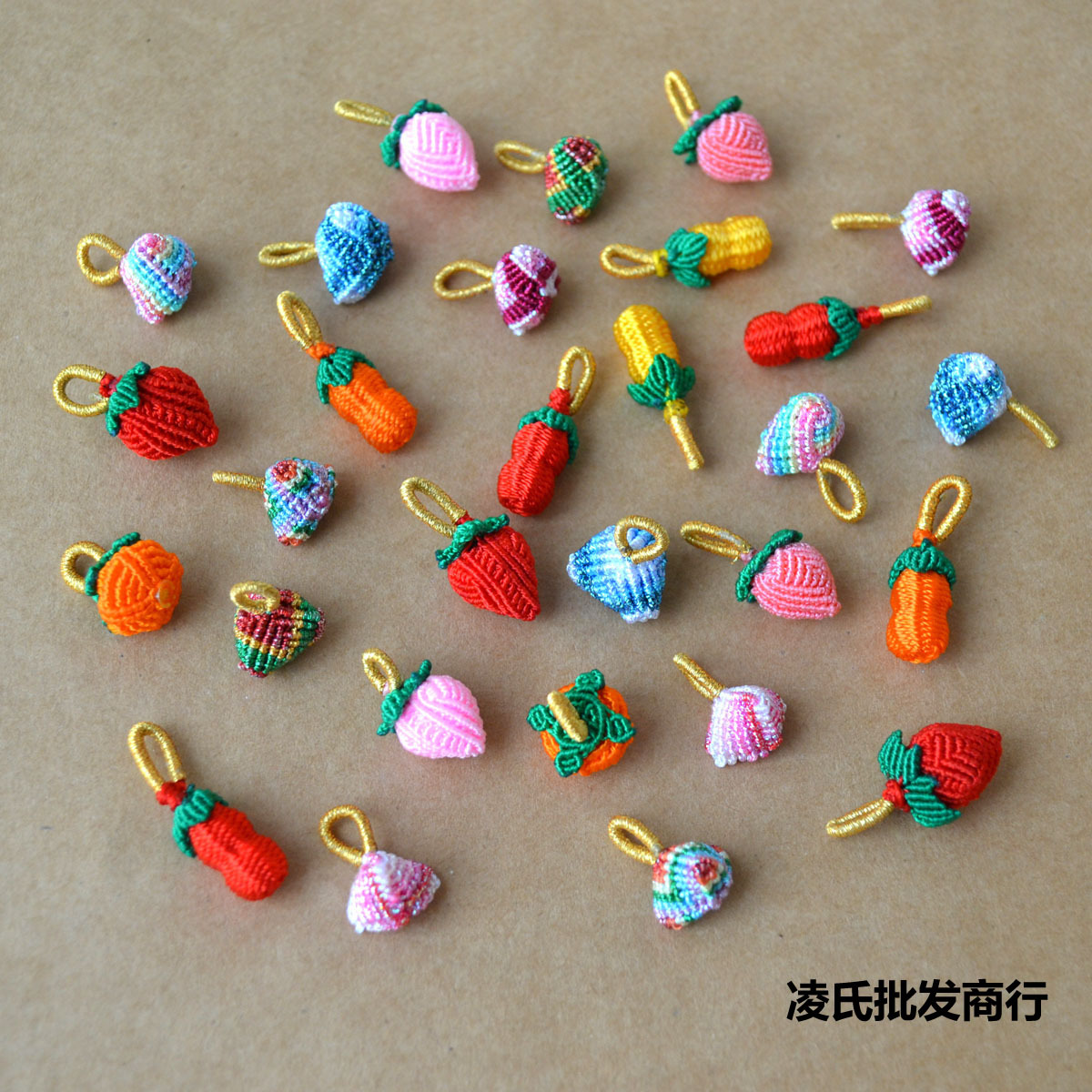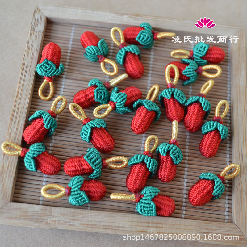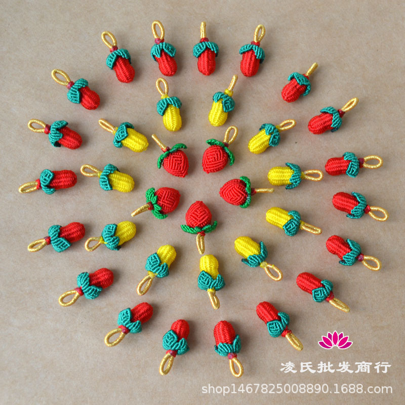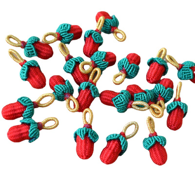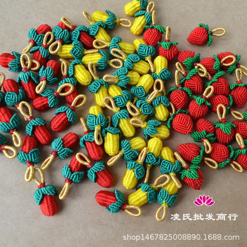 手工编织小花生五彩手链挂件端午节小小草莓红绳吊坠手编手绳配件