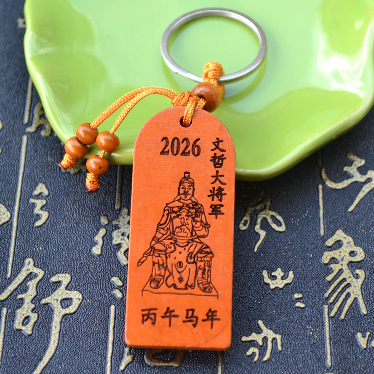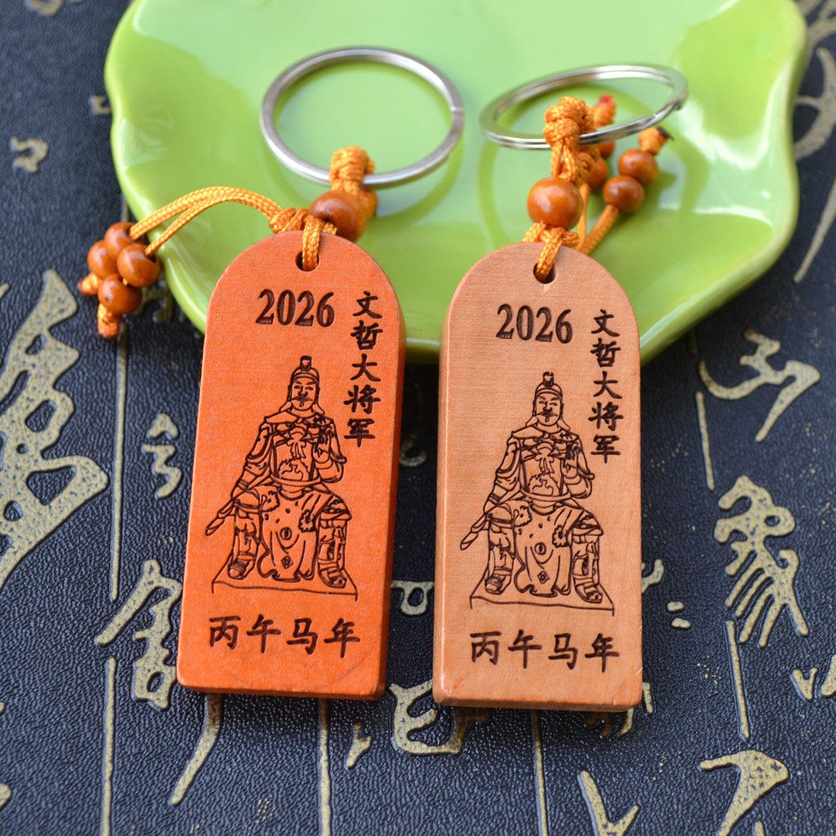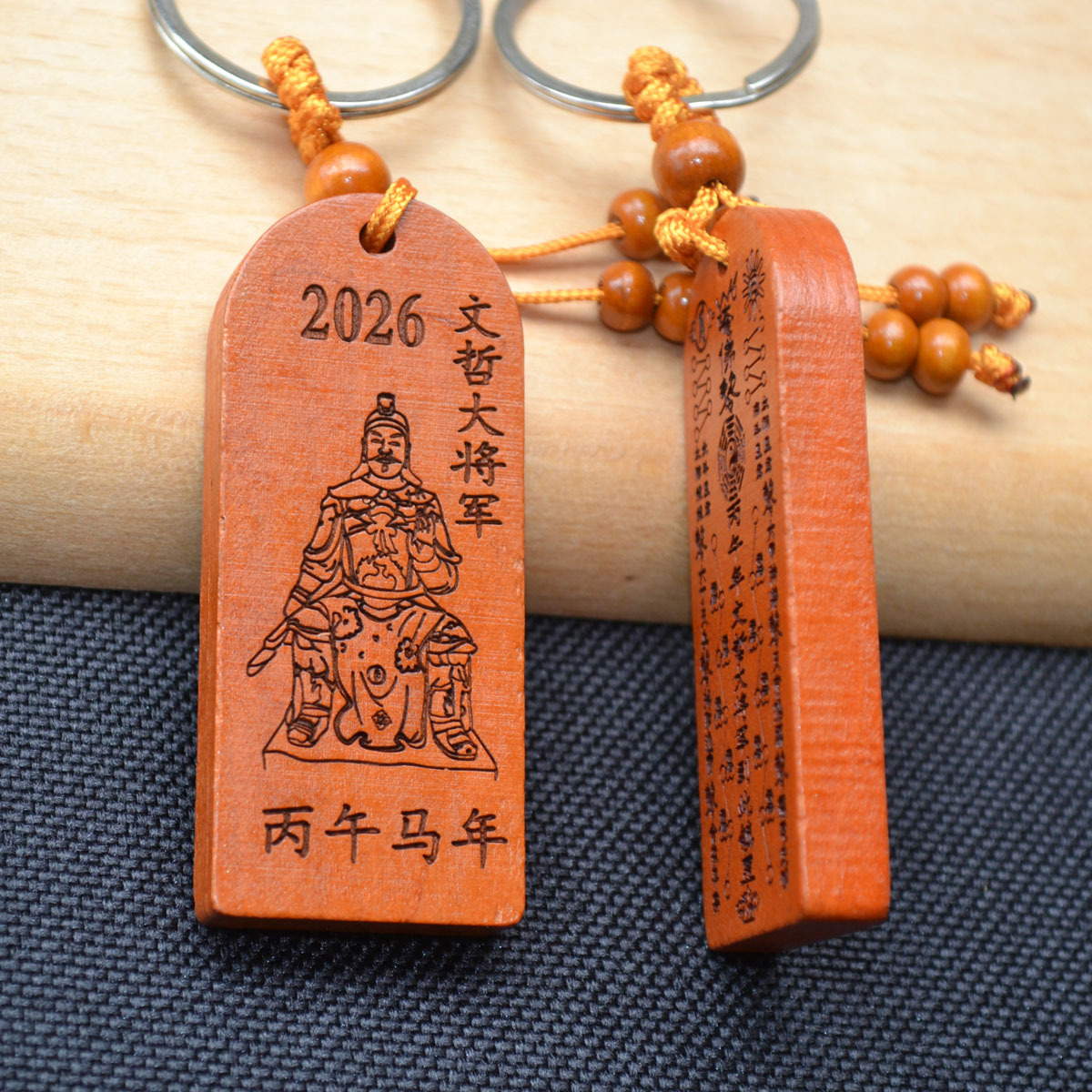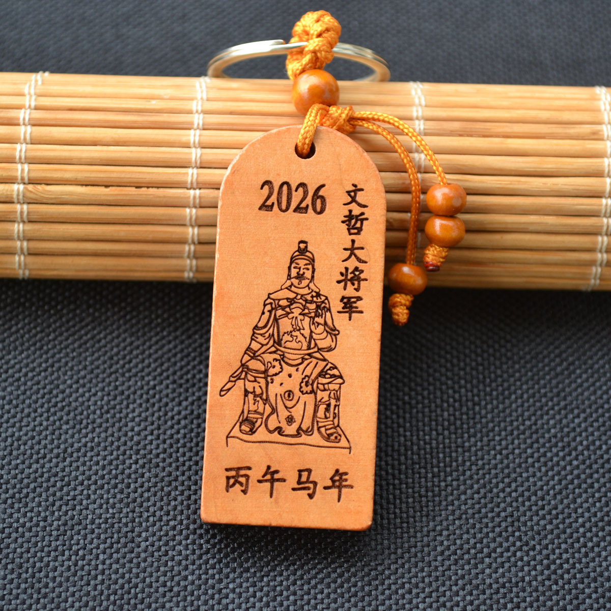 2026年新款桃木钥匙扣挂件丙午马年文哲大将军汽车钥匙链男女挂饰