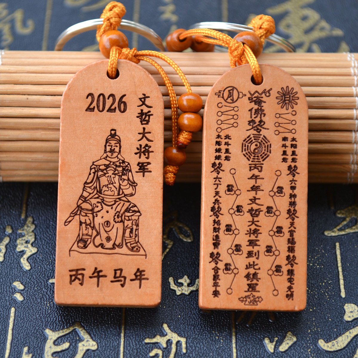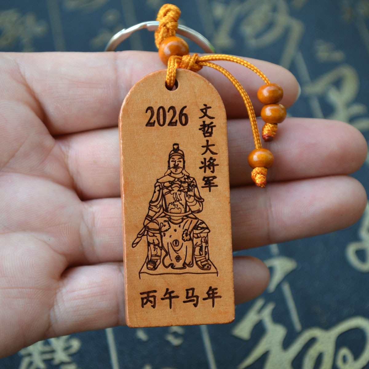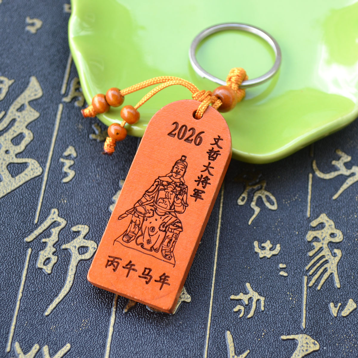 2026年新款桃木钥匙扣挂件丙午马年文哲大将军汽车钥匙链男女挂饰
