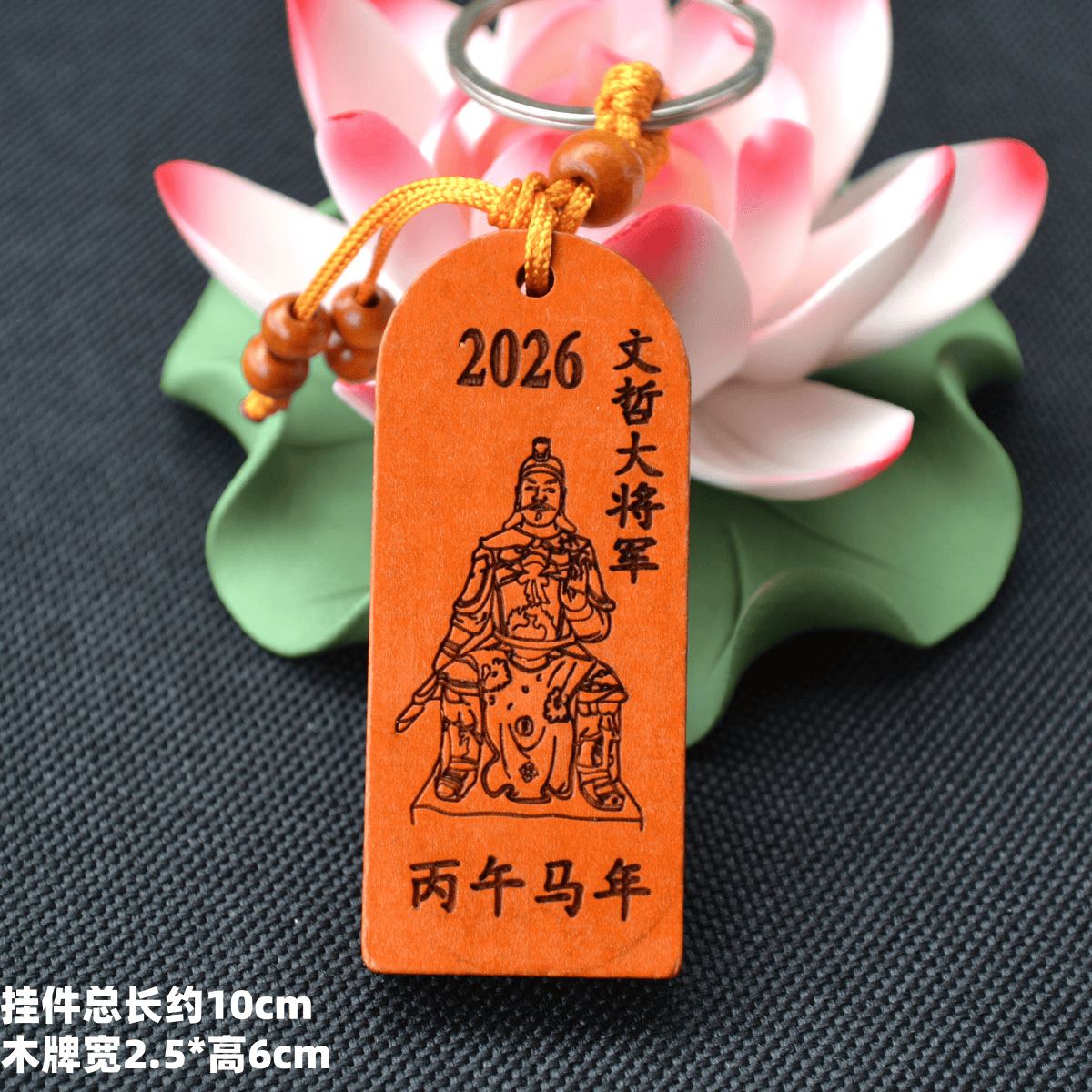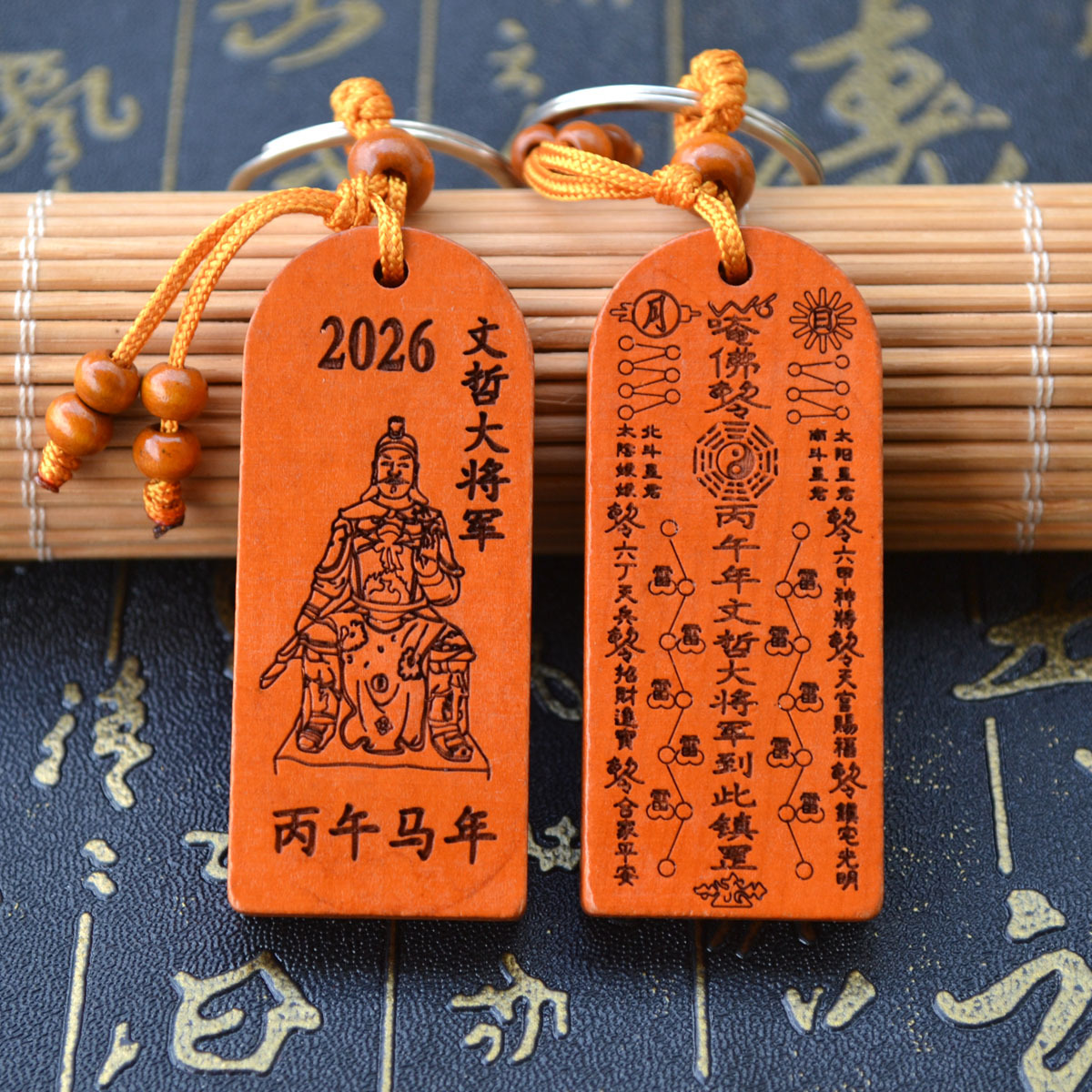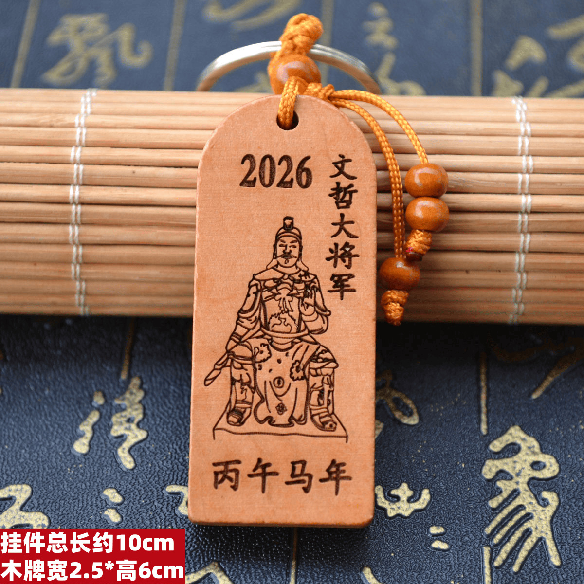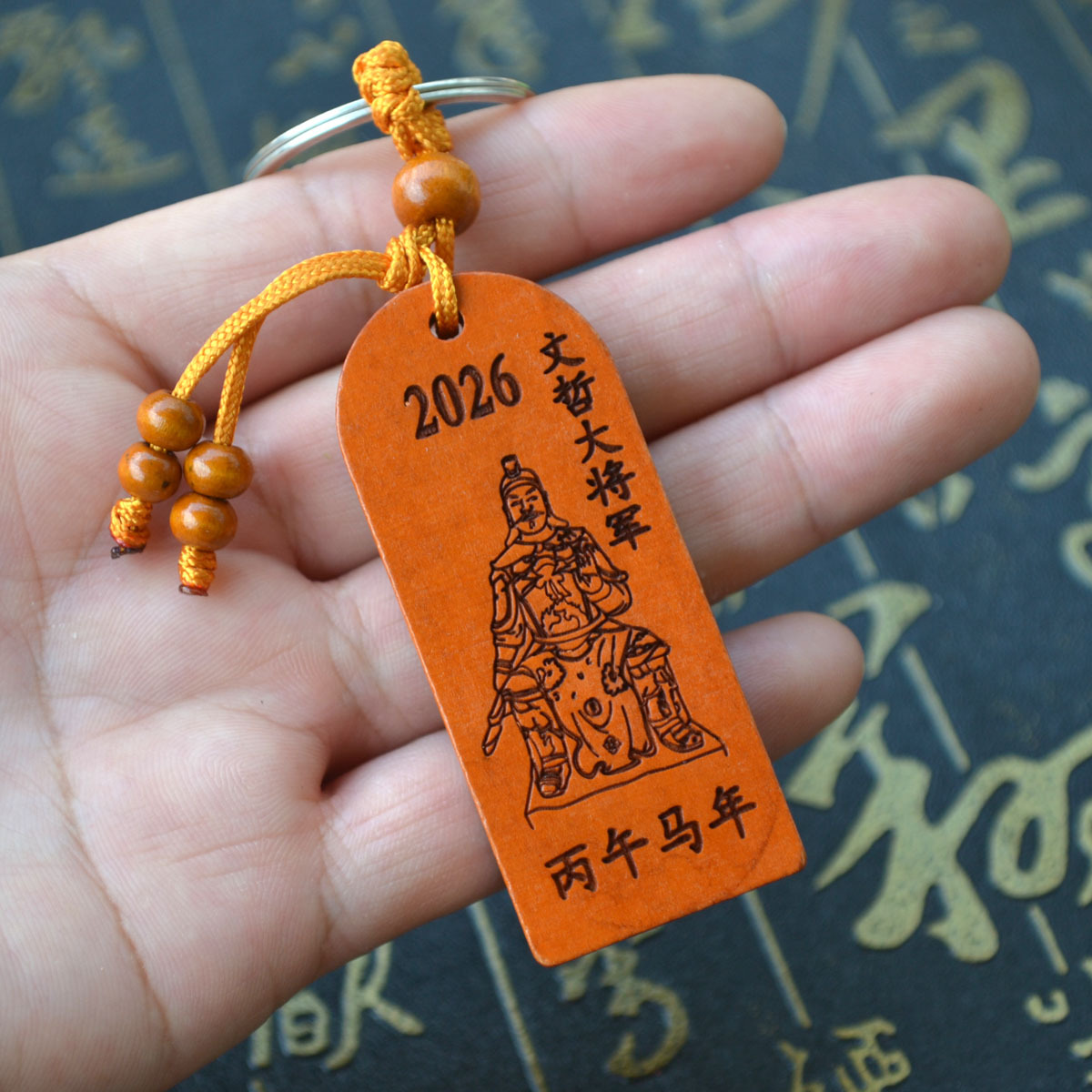2026年新款桃木钥匙扣挂件丙午马年文哲大将军汽车钥匙链男女挂饰