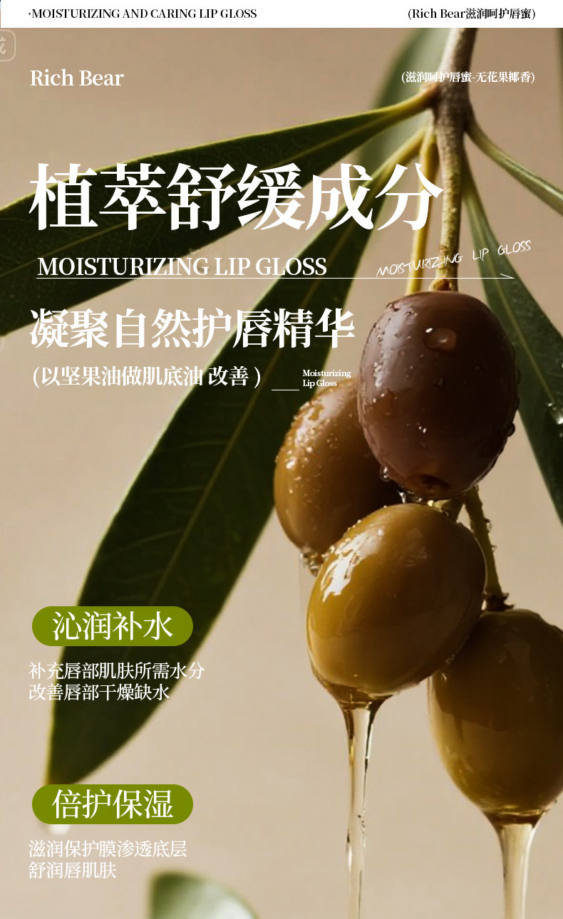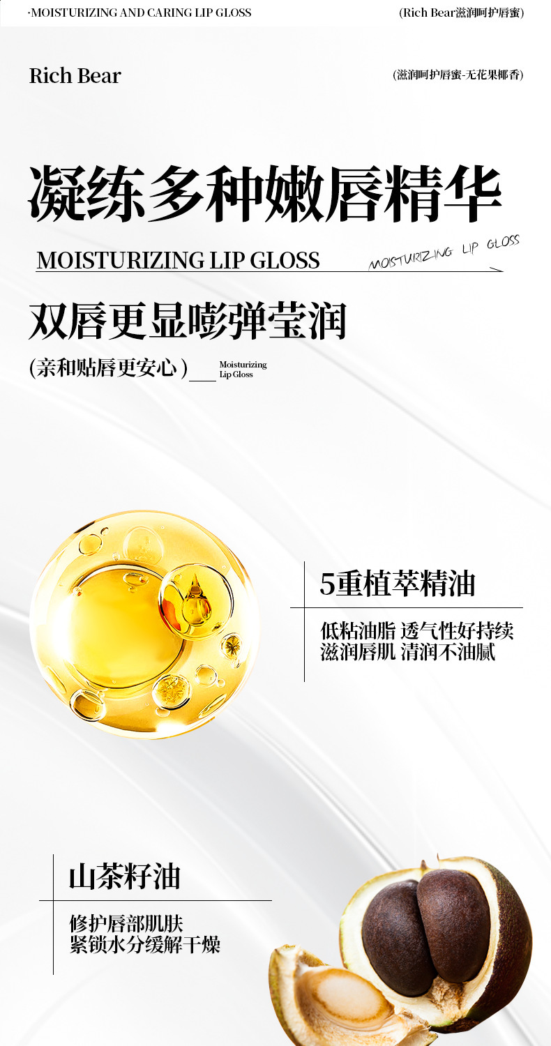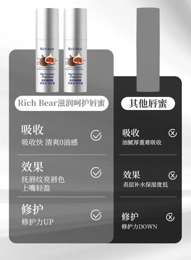 RICH BEAR无花果椰子香维生素E唇部美容液润唇膏补水保湿滋润唇油