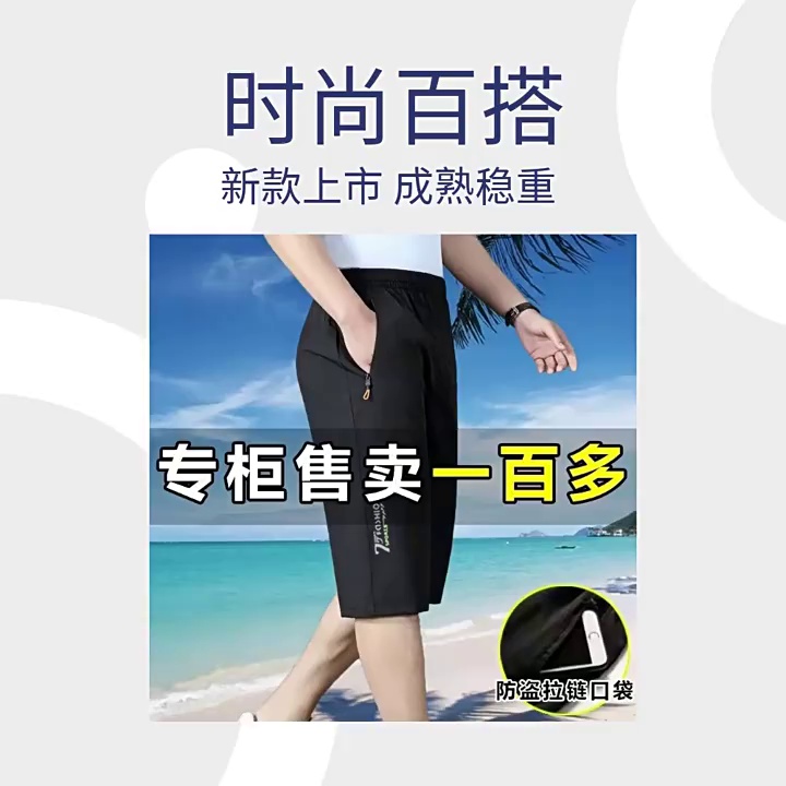 新款夏季男短裤薄款冰丝速干短裤男士运动五分短裤宽松透气沙滩裤