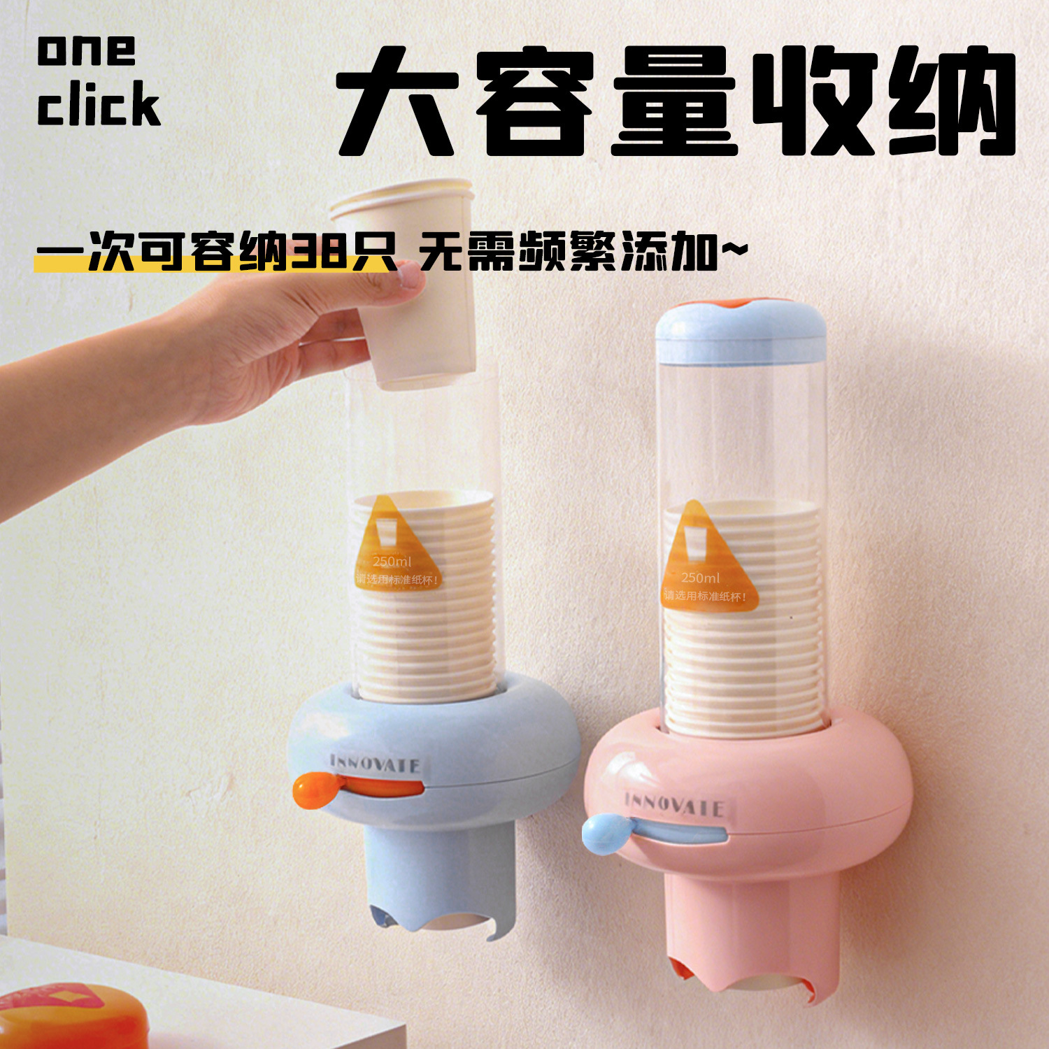 【原创】多巴胺自动取杯器一次性杯子挂架创意免打孔壁挂式杯架