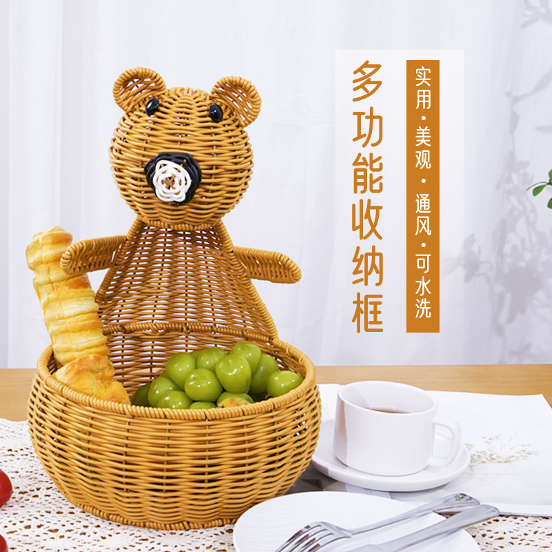 水果盘藤编收纳果盘可爱桌面编织面包篮客厅厨房置物篮零食收纳筐