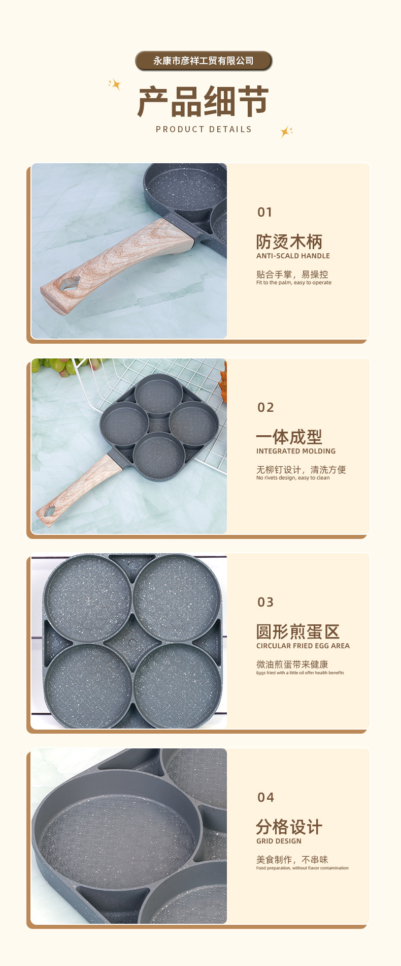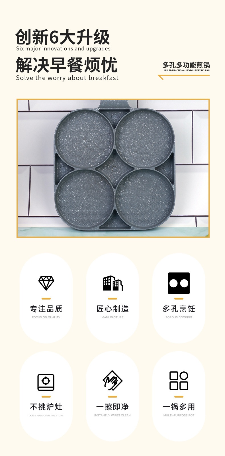 跨境早餐煎锅鸡蛋汉堡锅荷包蛋平底不粘锅家用煎饺锅四孔煎饼模具