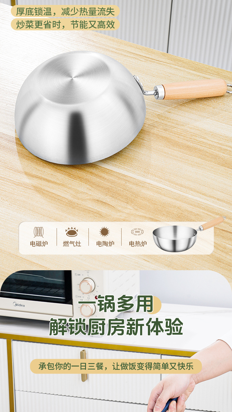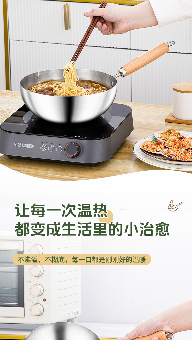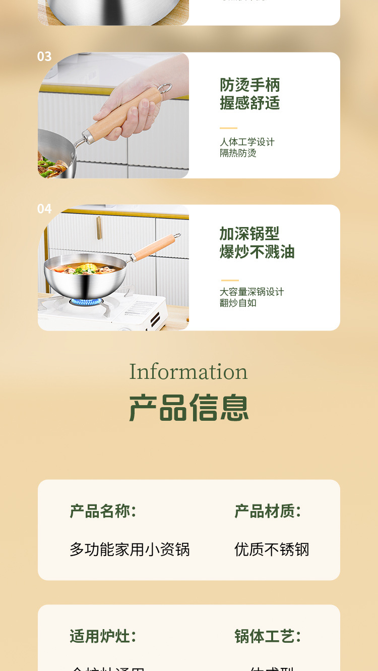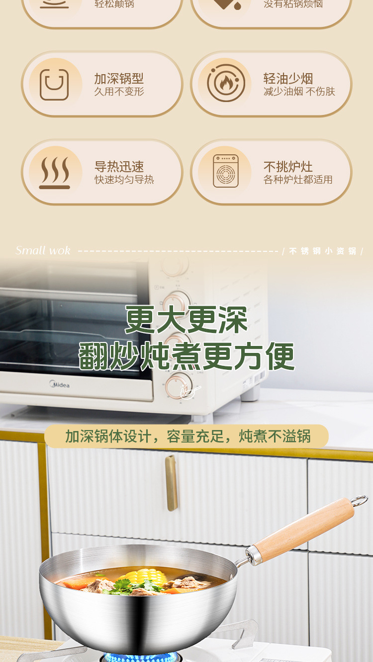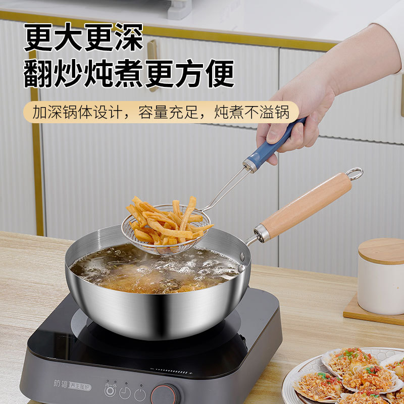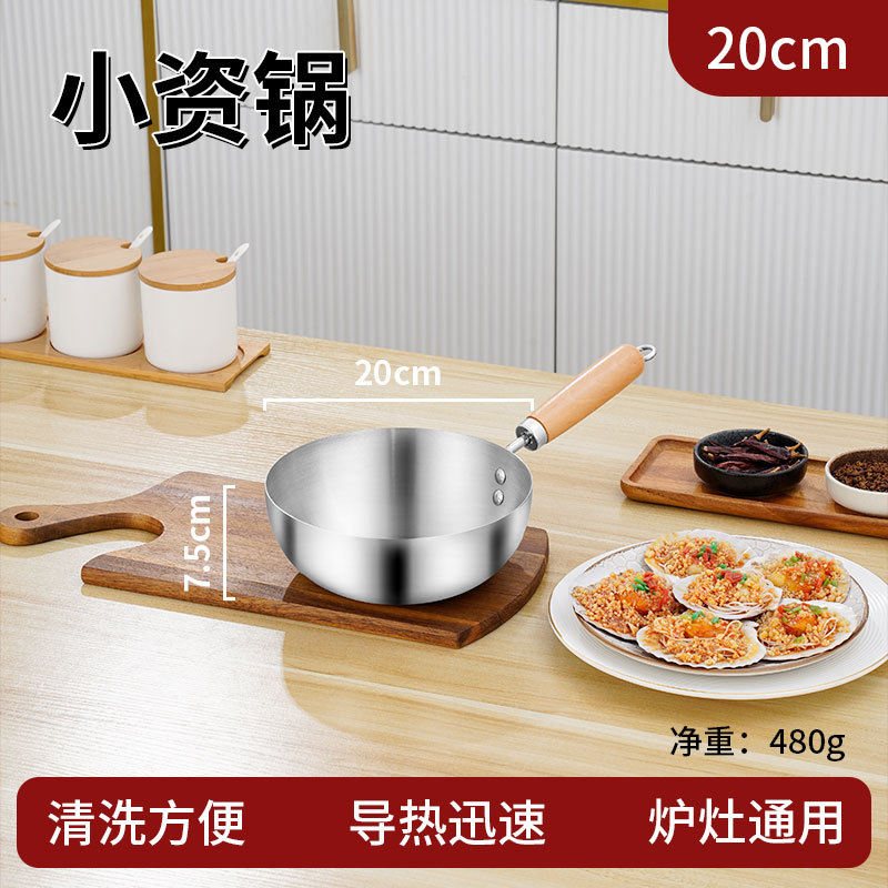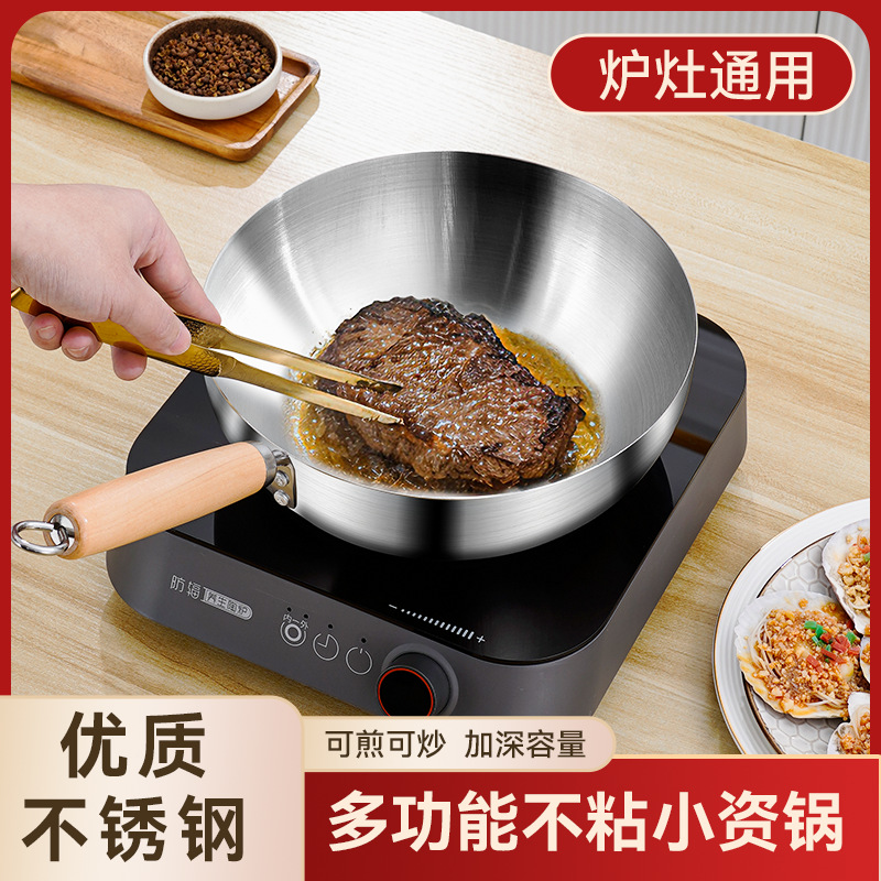 食品级不锈钢小资锅加厚小炒锅家用炒饭炒菜锅平底锅宿舍单人小锅