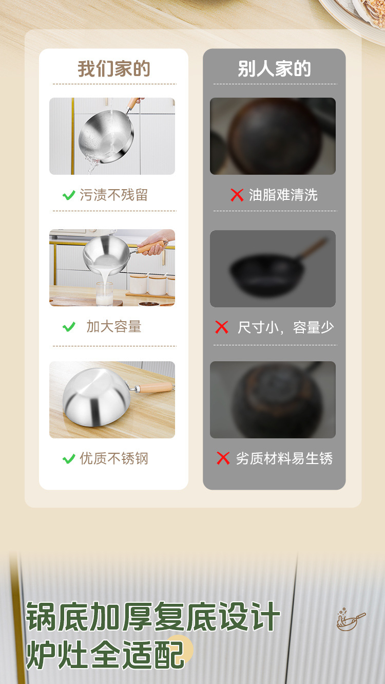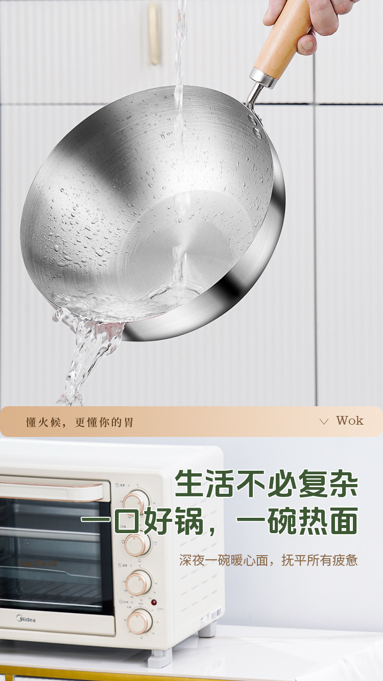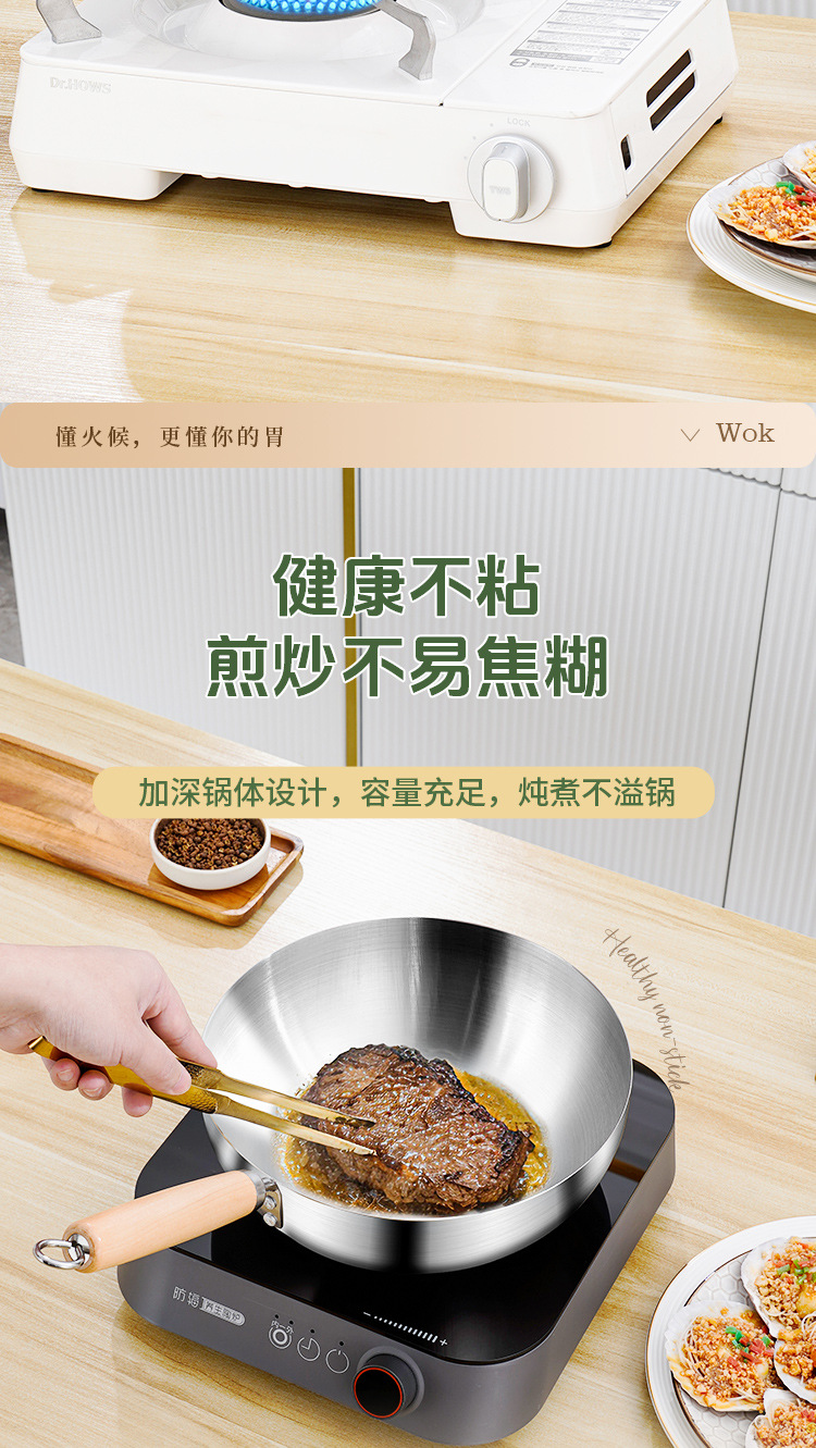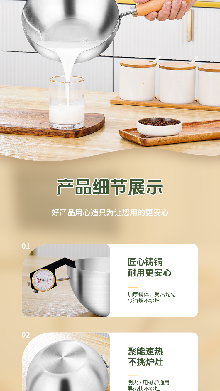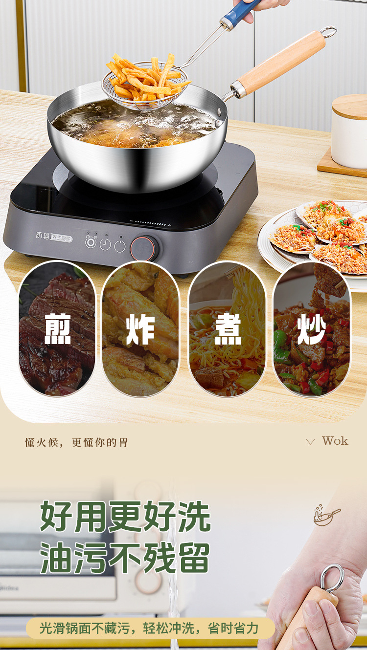 食品级不锈钢小资锅加厚小炒锅家用炒饭炒菜锅平底锅宿舍单人小锅