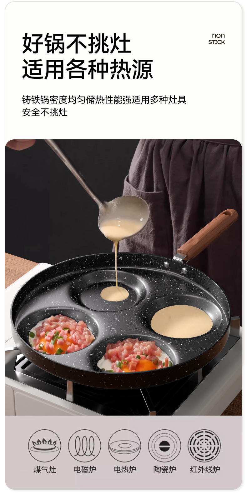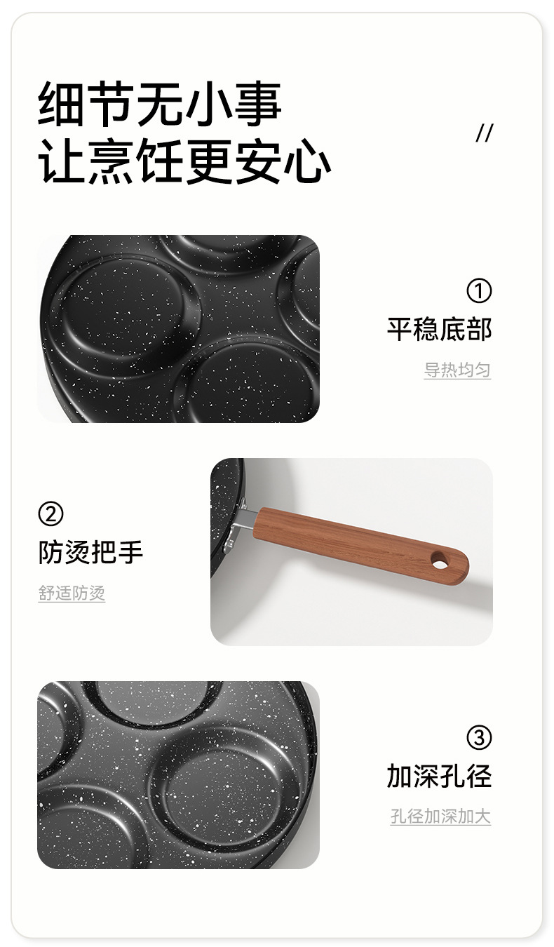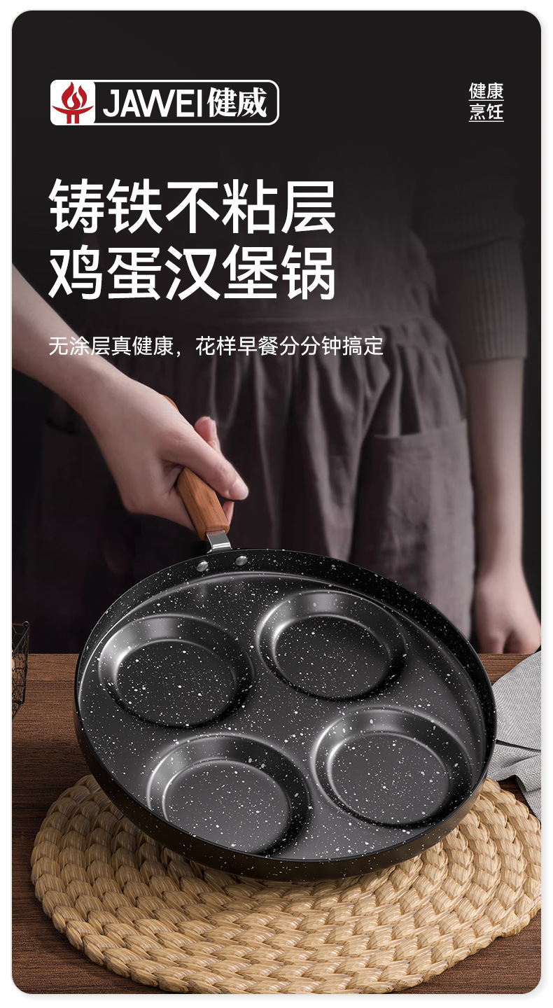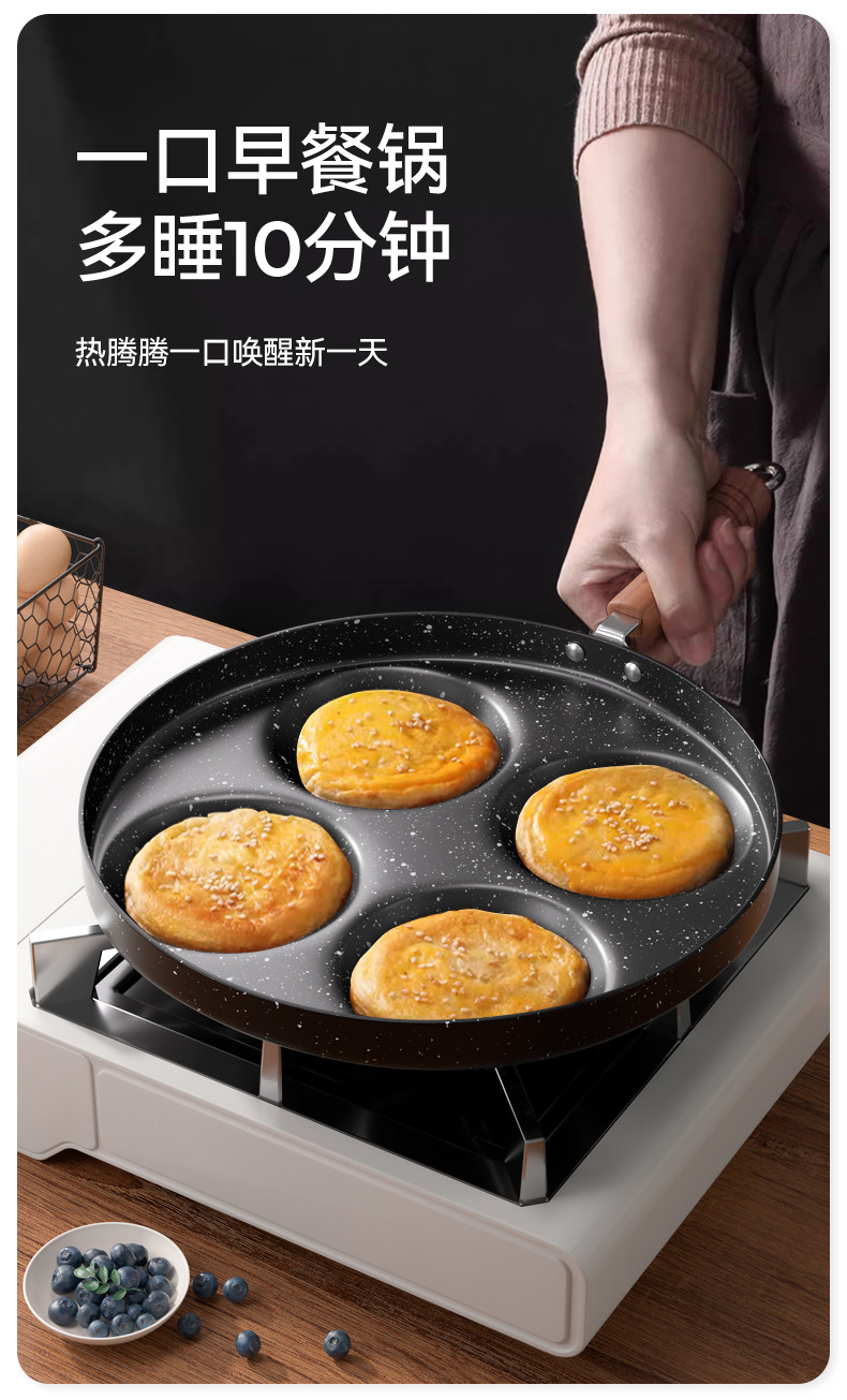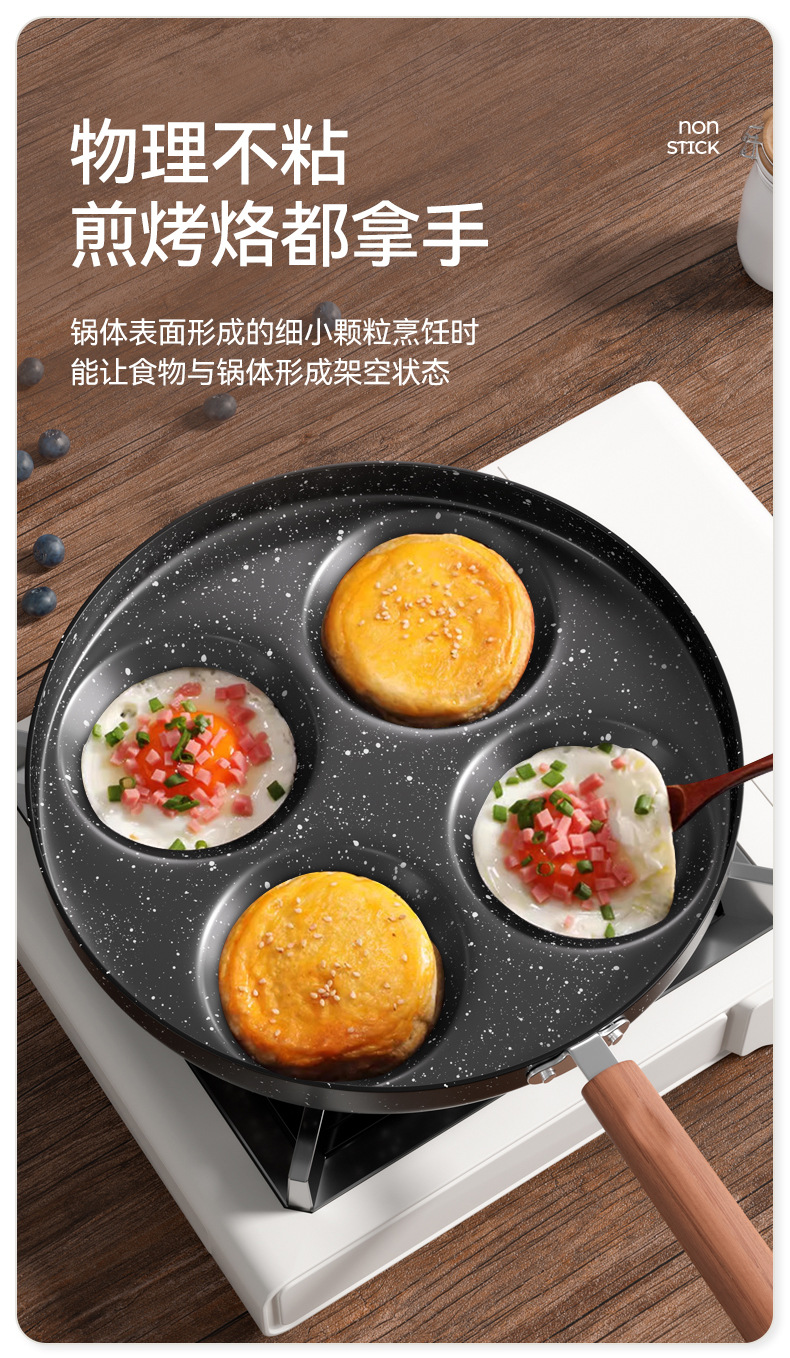 四孔煎蛋锅麦饭石涂层不粘锅家用厨房鸡蛋汉堡锅四孔早餐锅小煎锅