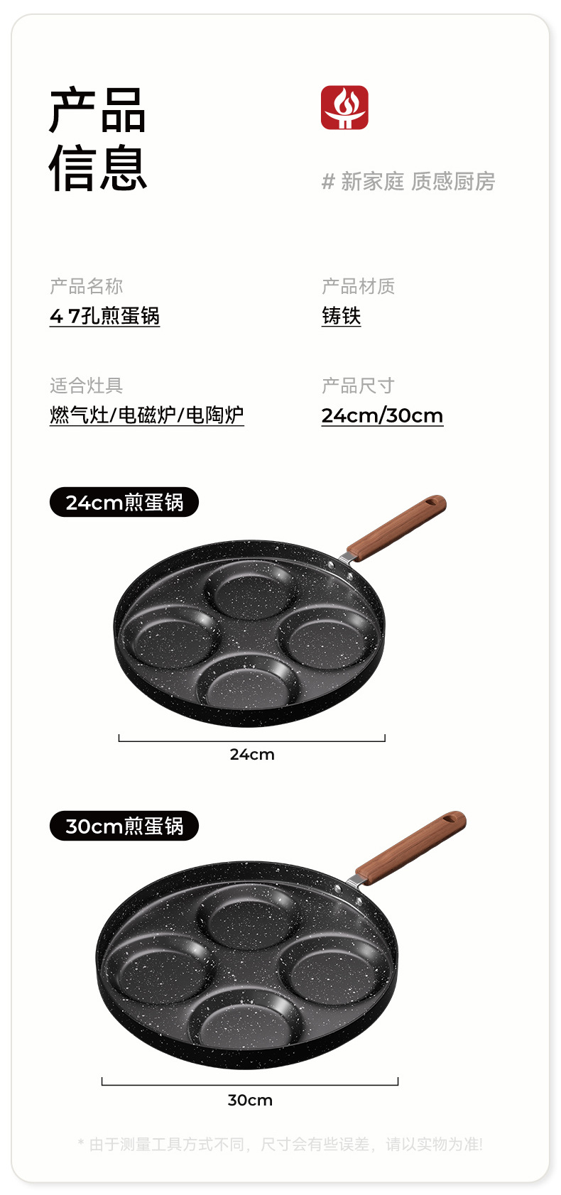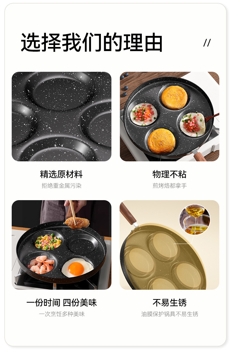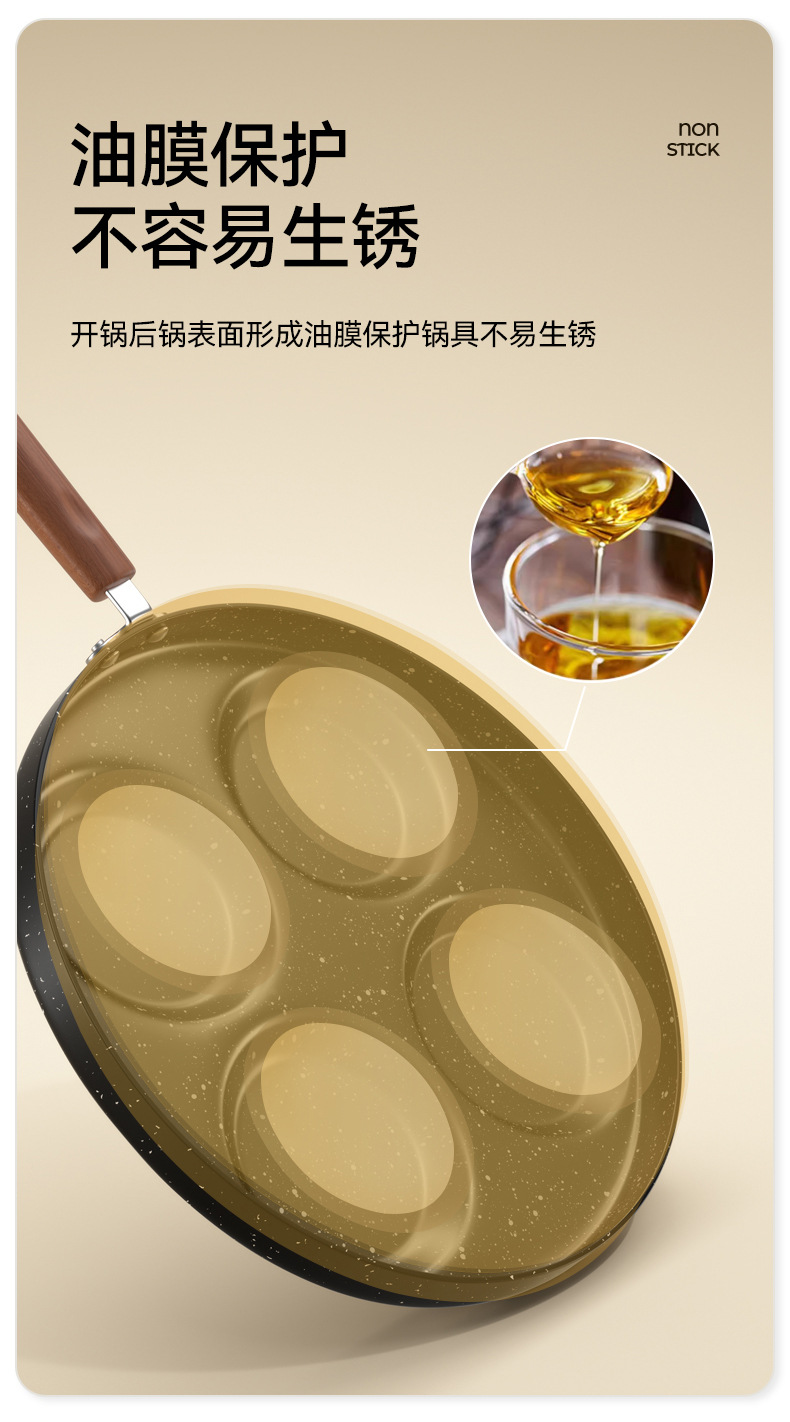 | 4孔煎蛋锅/升级木纹柄+木铲+硅胶刷+钢化盖 | USD $5.51 | 97 piece available |