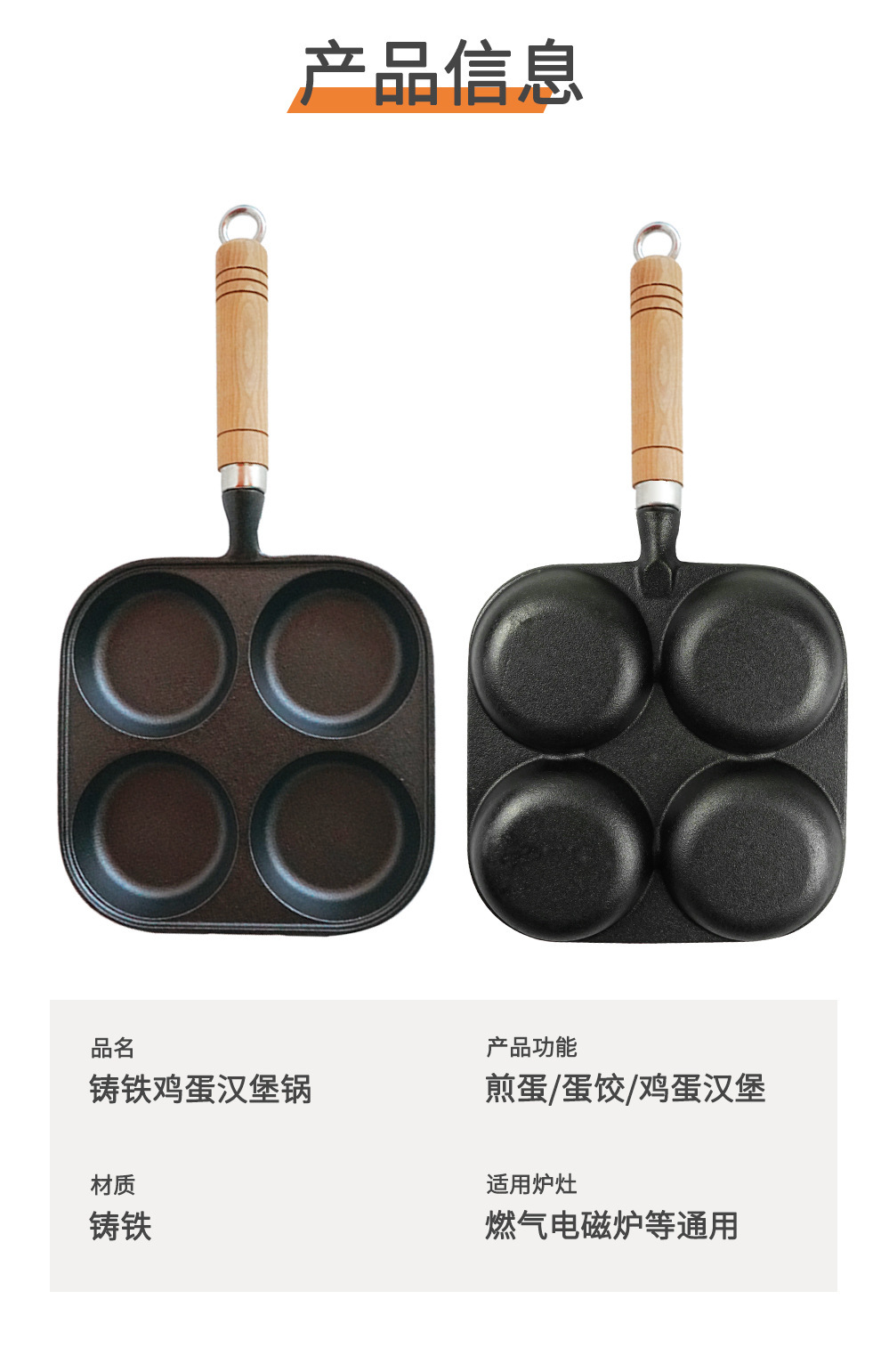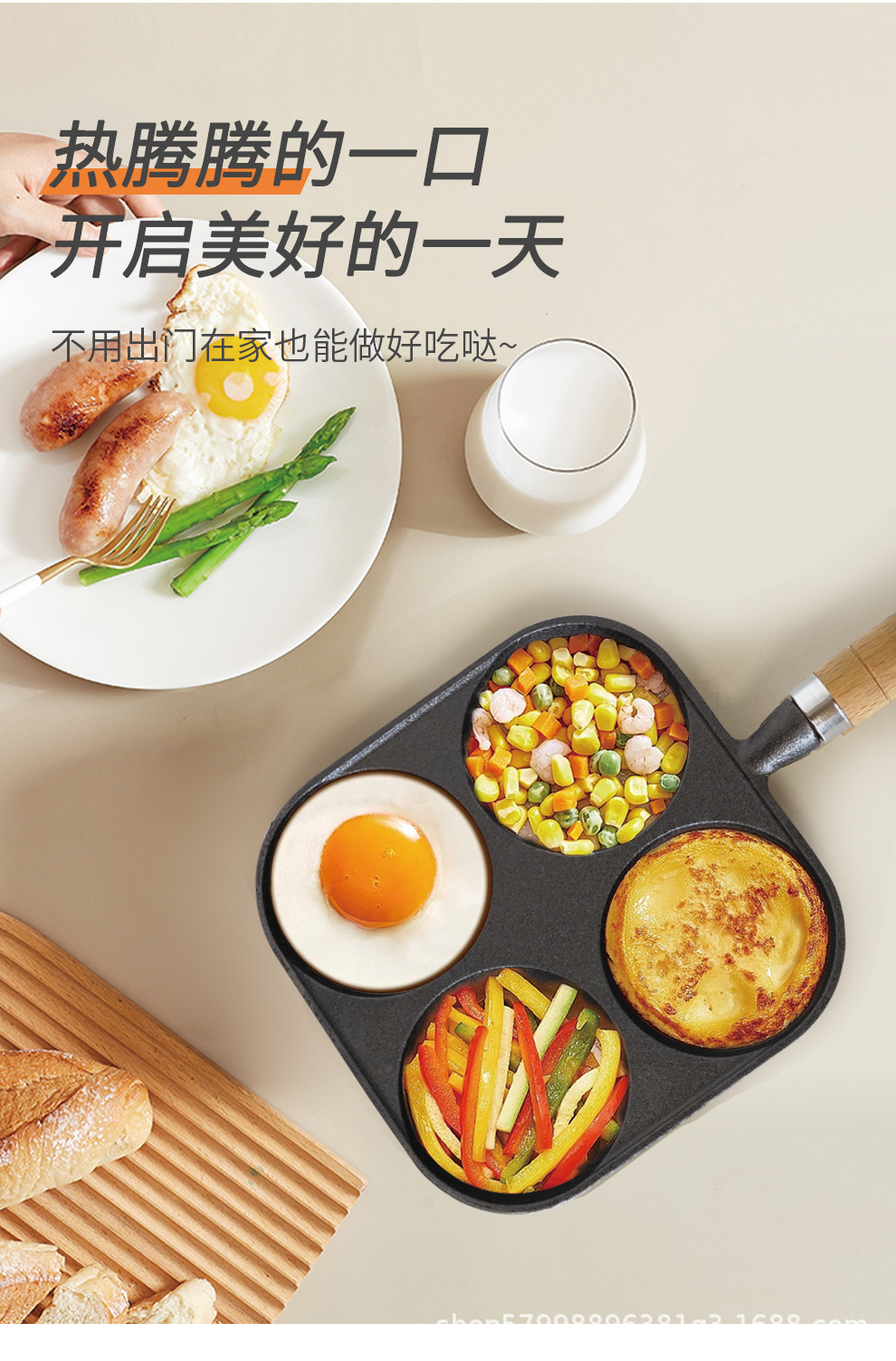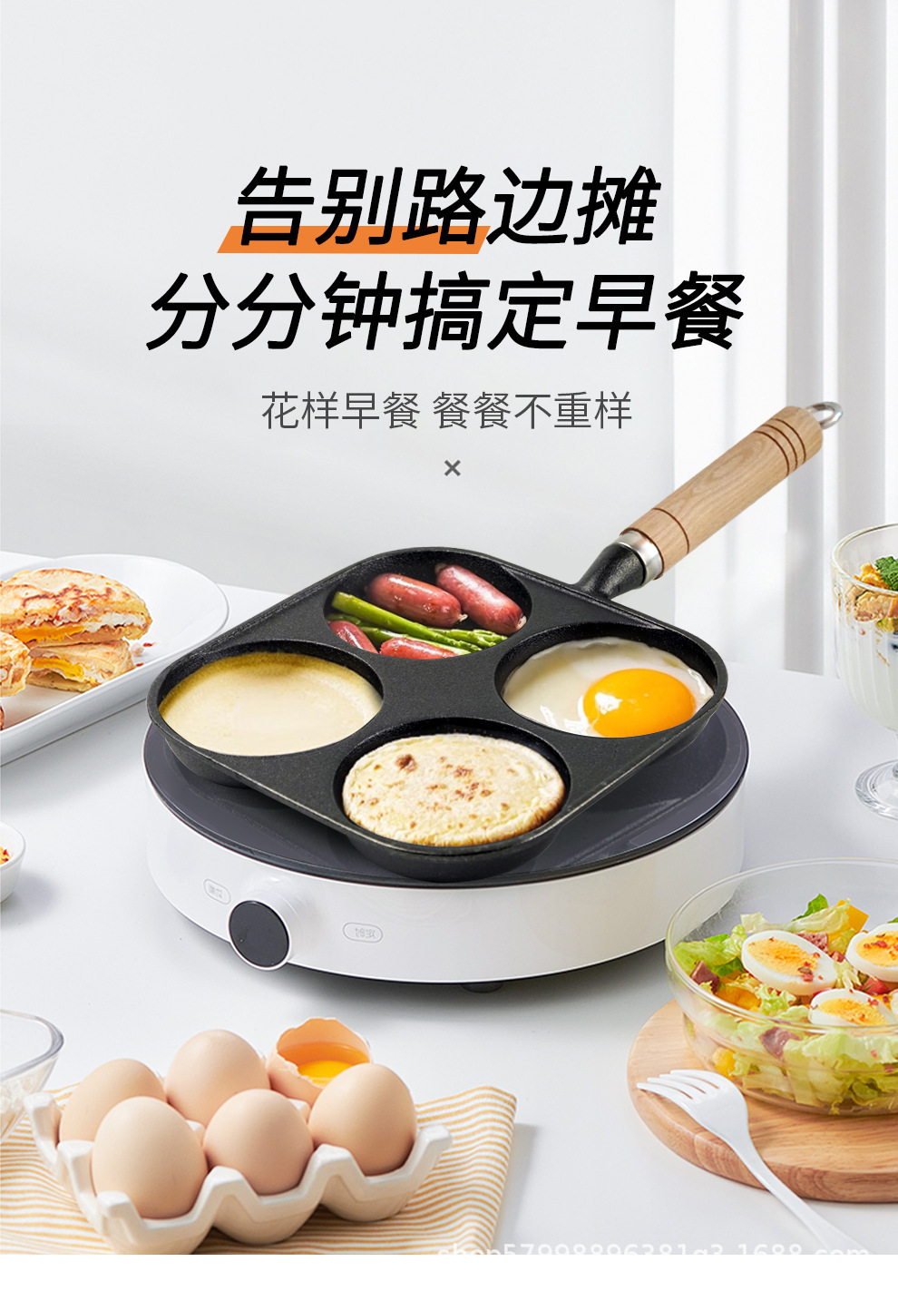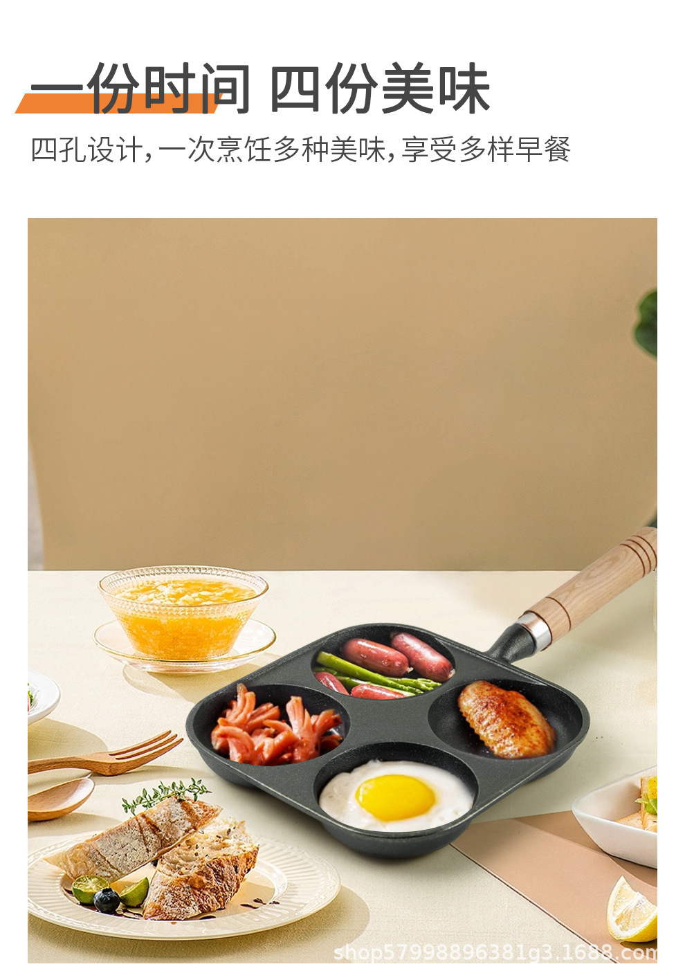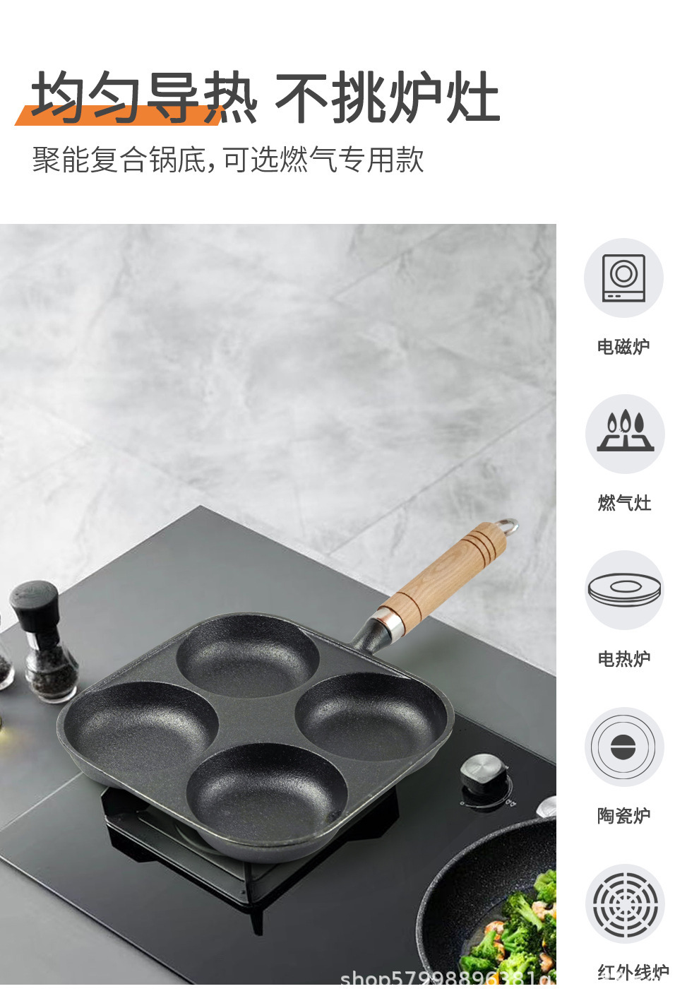 独立站煎蛋锅平底不粘汉堡家用早餐蛋饺电磁炉燃气通用四孔煎锅